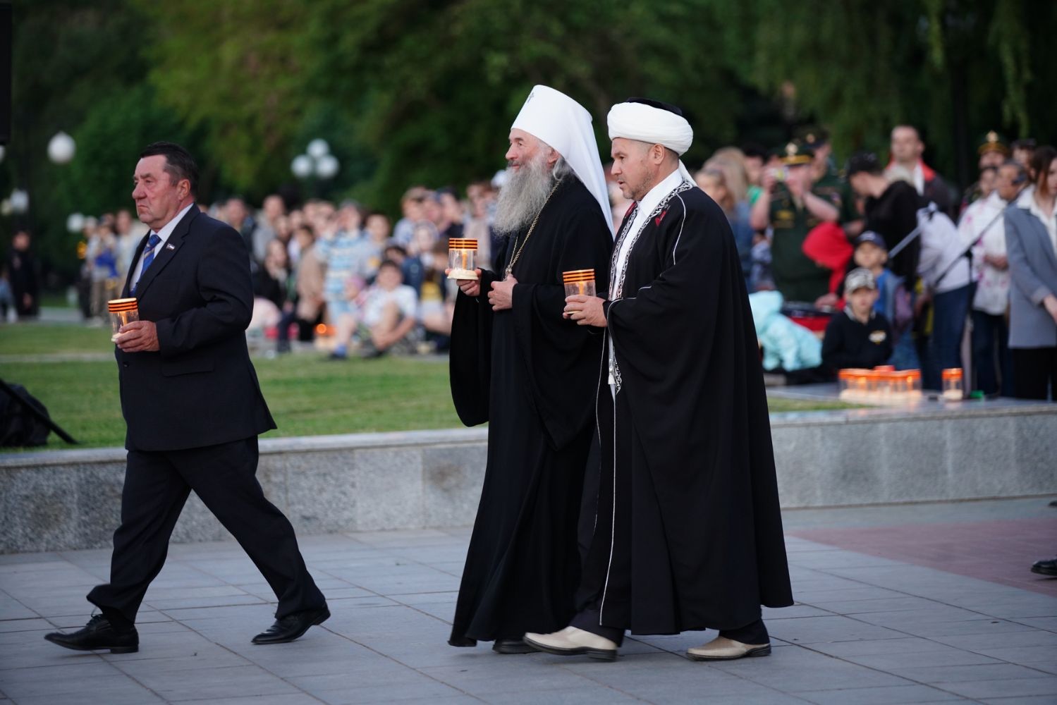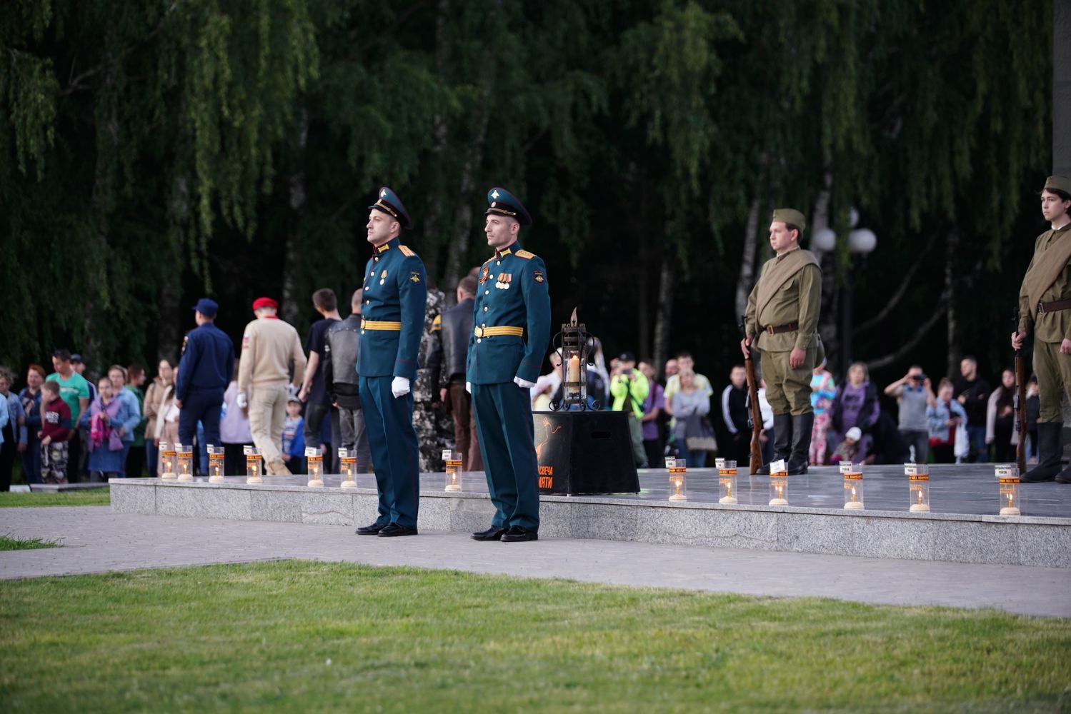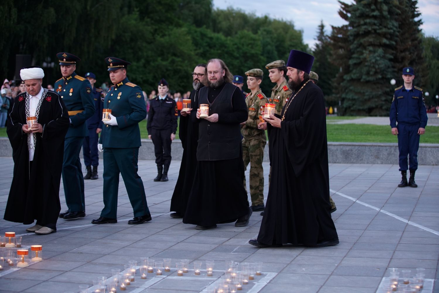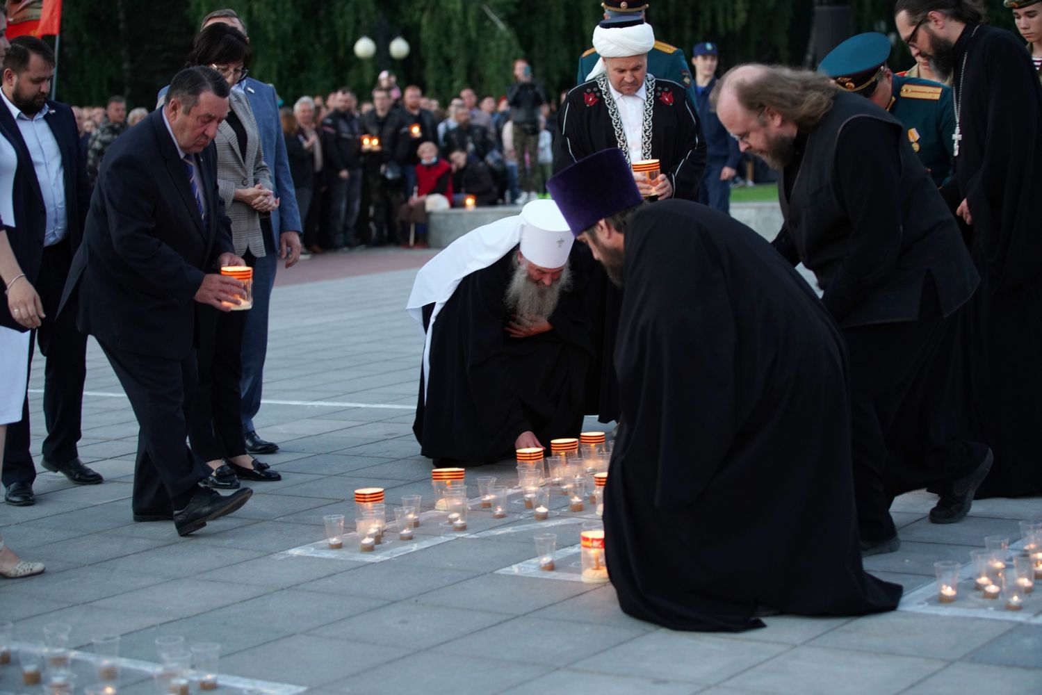К 21 часу мотопробег вернулся на территорию ансамбля Воинской Славы в Йошкар-Оле. Здесь зажгли свечи и лампады в память о всех погибших в годы войны и выложили из сотен свечей слова «Йошкар-Ола помнит». В акции приняли участие временно исполняющий обязанности Главы Марий Эл Юрий Зайцев и митрополит Йошкар-Олинский и Марийский Иоанн. Также свечи зажгли благочинный Йошкар-Олинского церковного округа протоиерей Андрей Норкин, директор Православной гимназии им. Сергия Радонежского протоиерей Евгений Сурков и ответственный за взаимодействие Церкви и общества Йошкар-Олинской епархии иерей Димитрий Дьяков.