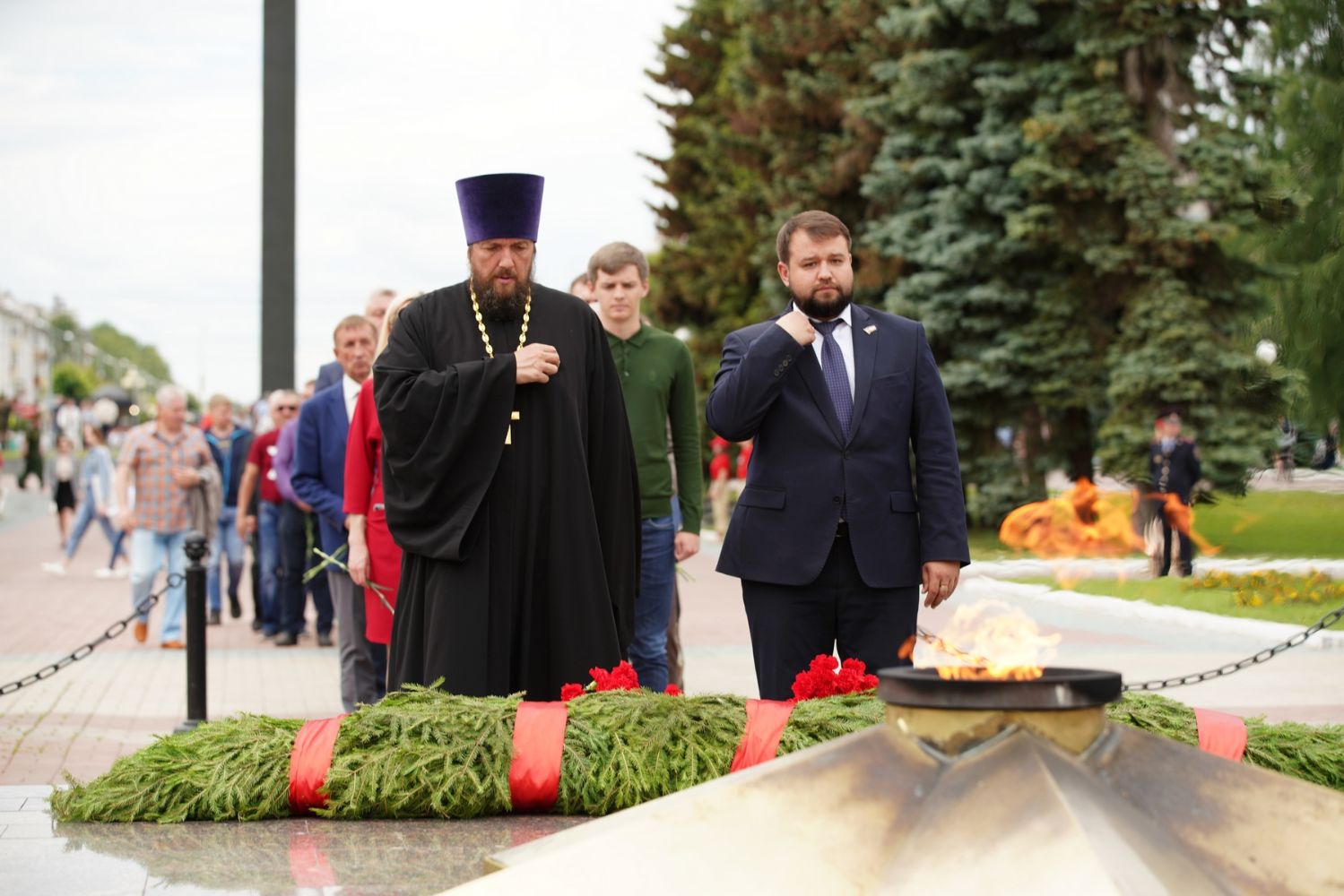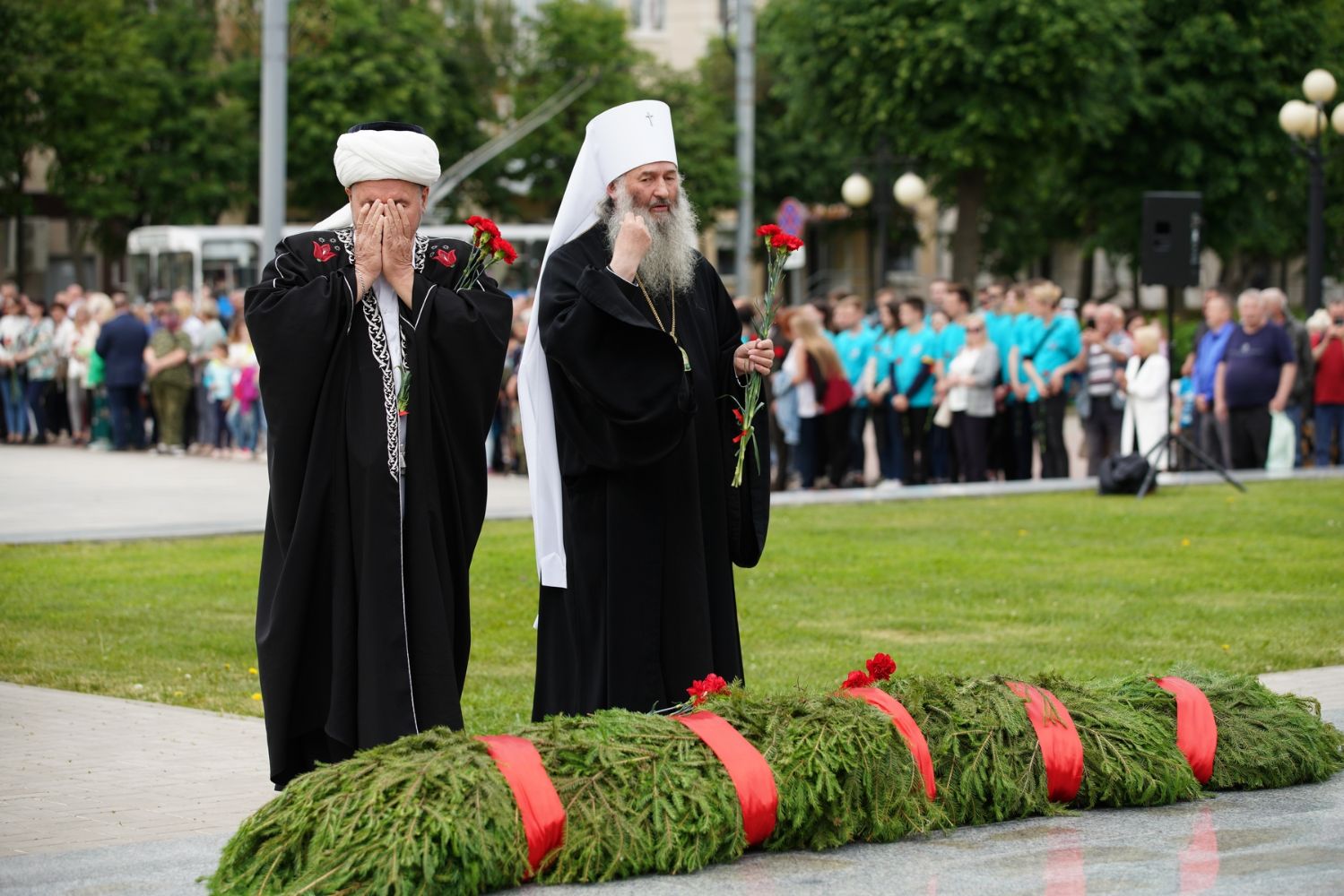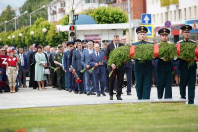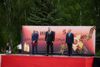 В 12 часов дня у Мемориала Воинской славы состоялся траурный митинг, а в 12:15 по всей стране прошла минута молчания в память о тех, кто отдал свою жизнь в борьбе с фашизмом. После этого собравшиеся возложили венки и цветы к подножию мемориала. В торжественной церемонии приняли участие временно исполняющий обязанности Главы Марий Эл Юрий Зайцев, представители правительства и общественных организаций, образовательных учреждений, религиозных конфессий республики. Йошкар-Олинскую епархию представляли митрополит Йошкар-Олинский и Марийский Иоанн, благочинный Йошкар-Олинского церковного округа протоиерей Андрей Норкин, директор Православной гимназии им. Сергия Радонежского протоиерей Евгений Сурков.