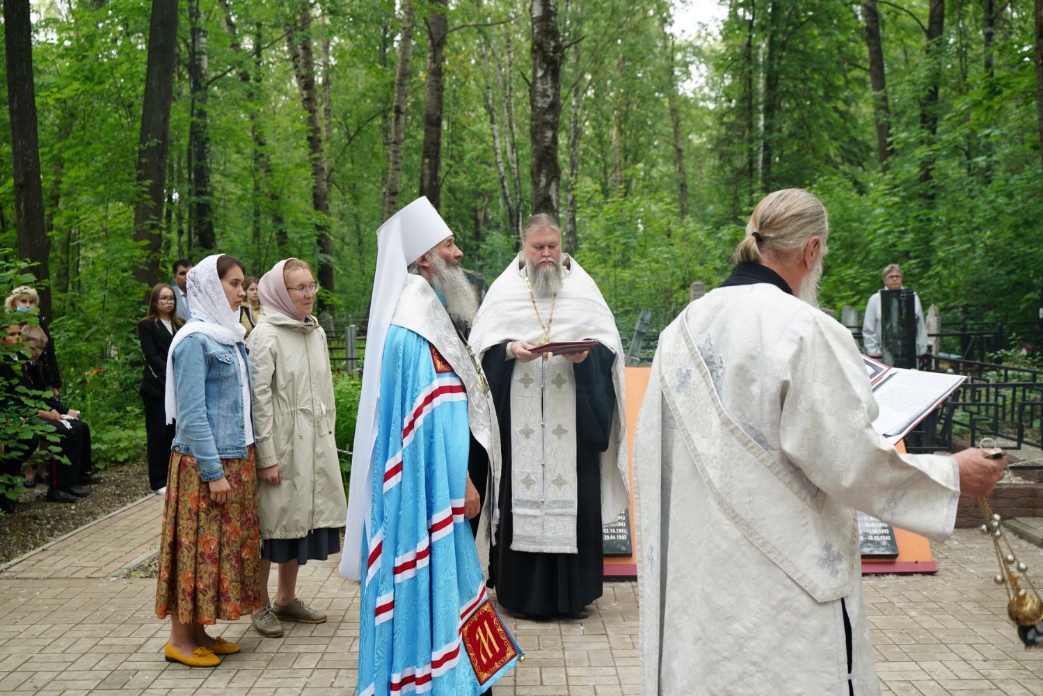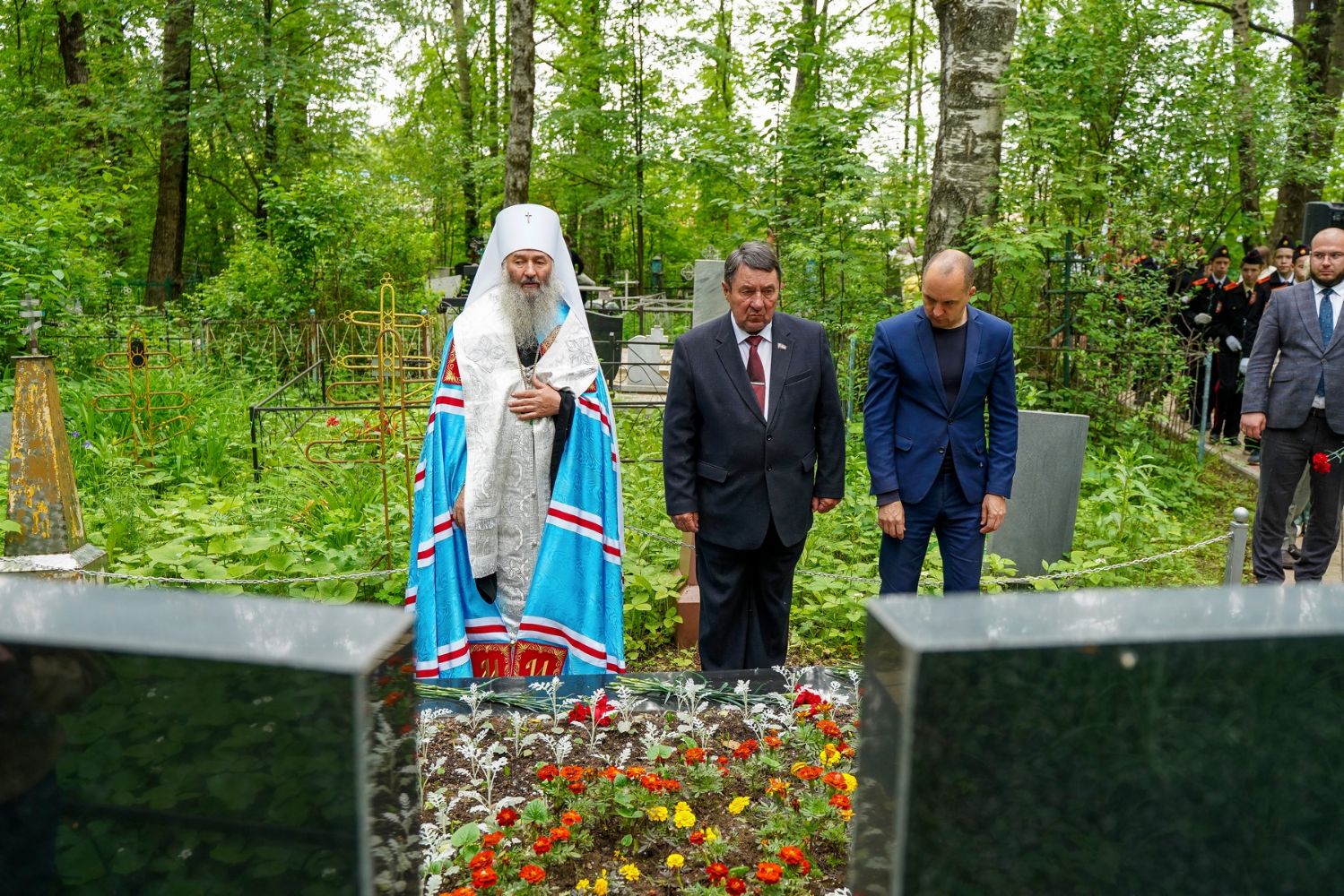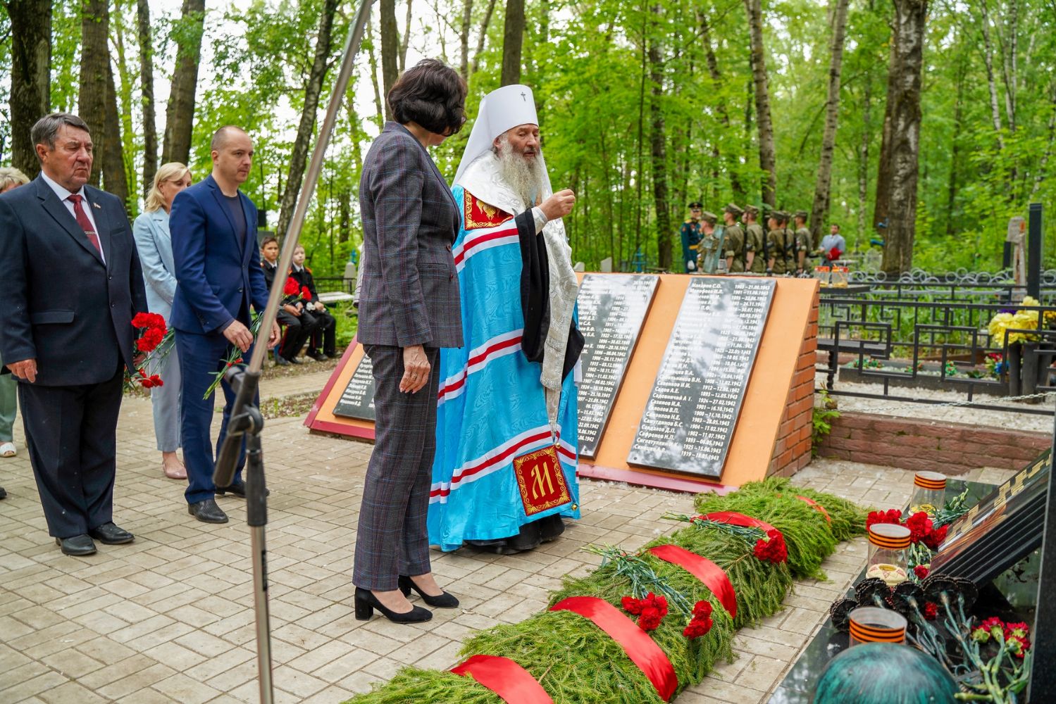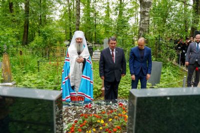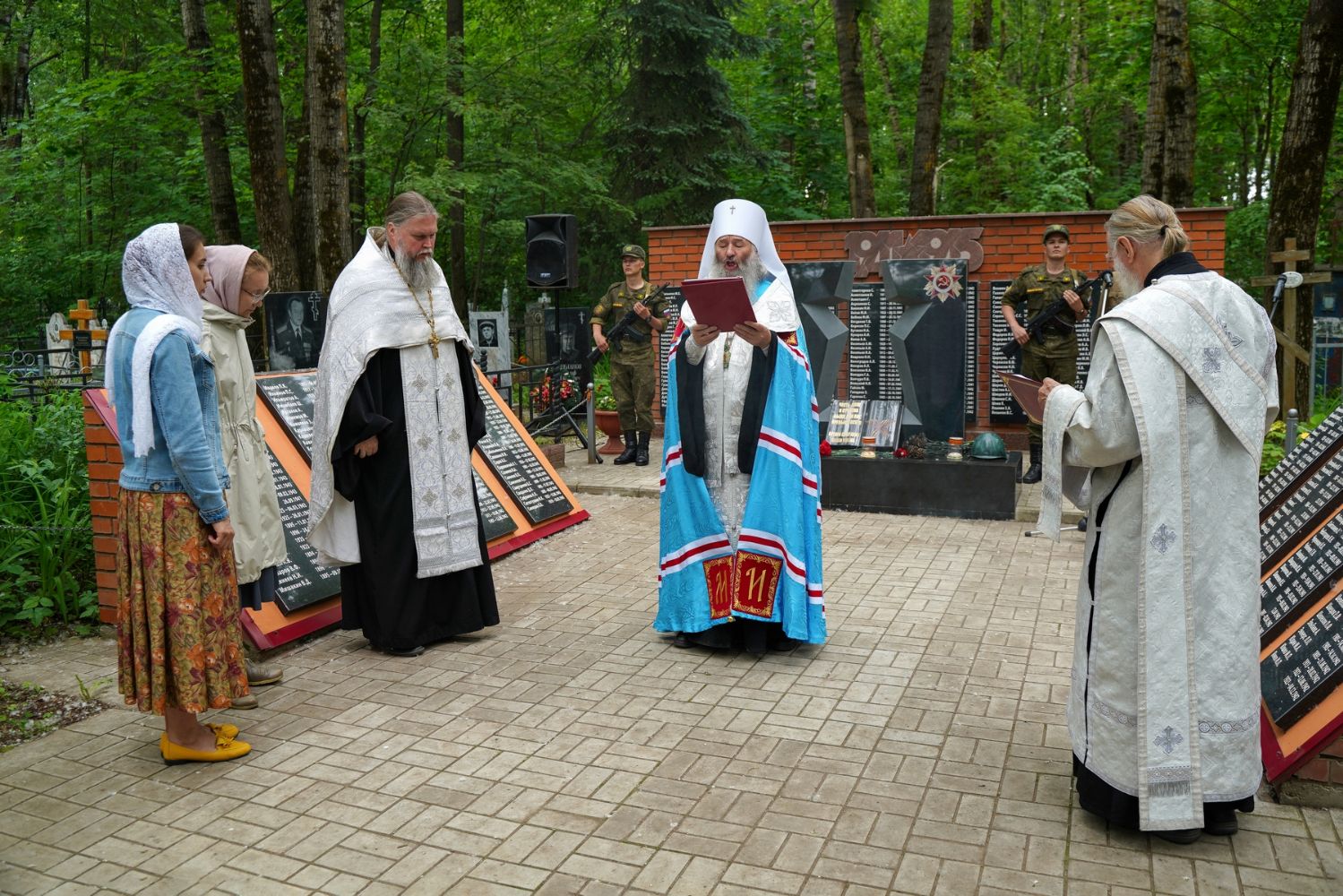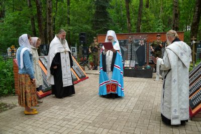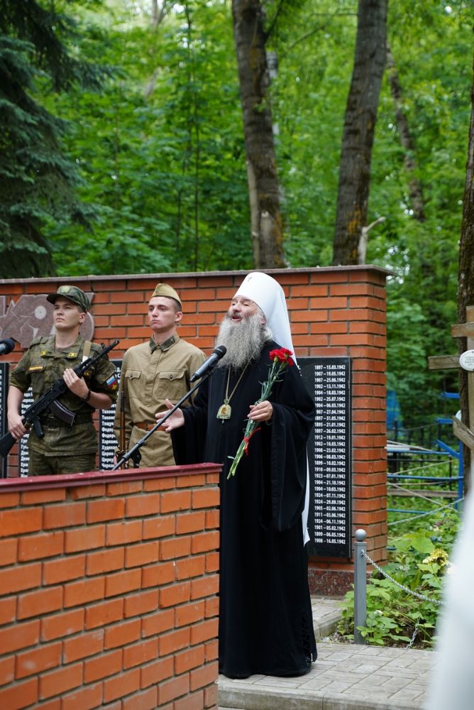 День памяти и скорби продолжился на Марковском кладбище Йошкар-Олы – у мемориала на братском захоронении павших воинов была отслужена заупокойная лития. Возглавил богослужение митрополит Йошкар-Олинский и марийский Иоанн, владыке сослужили руководитель епархиального отдела по взаимодействию с правоохранительными органами и вооруженными силами протоиерей Александр Бачурин и протодиакон Михаил Козловский.