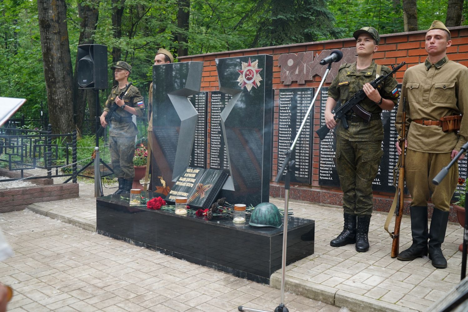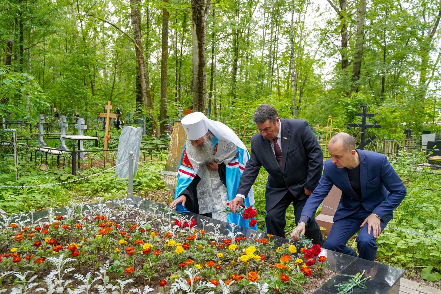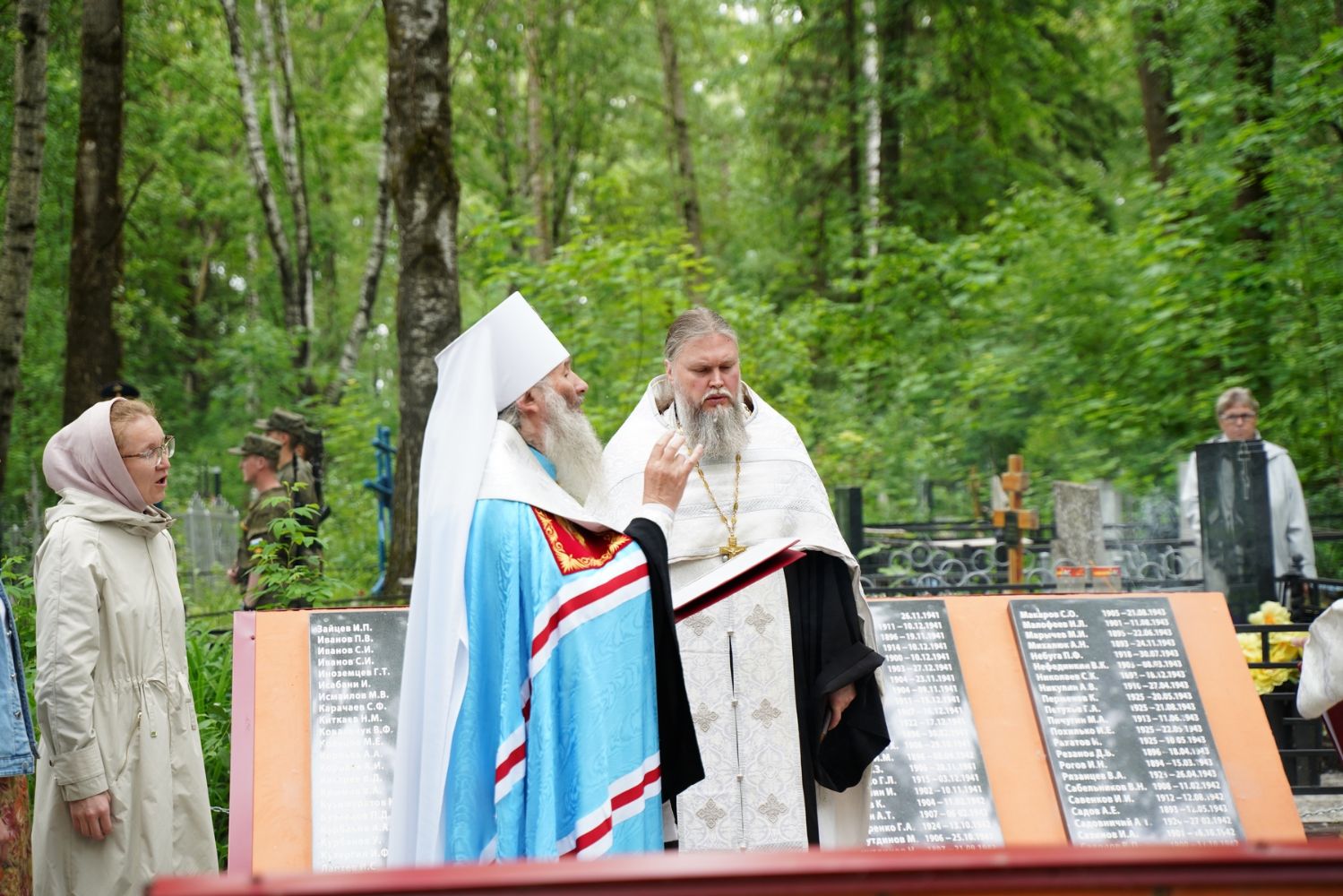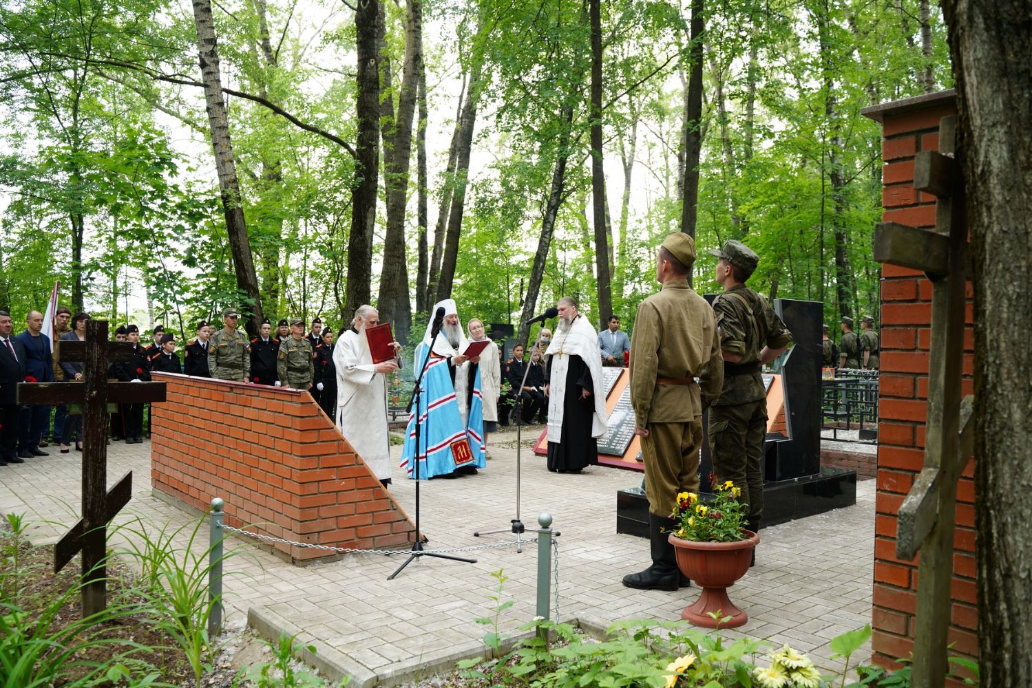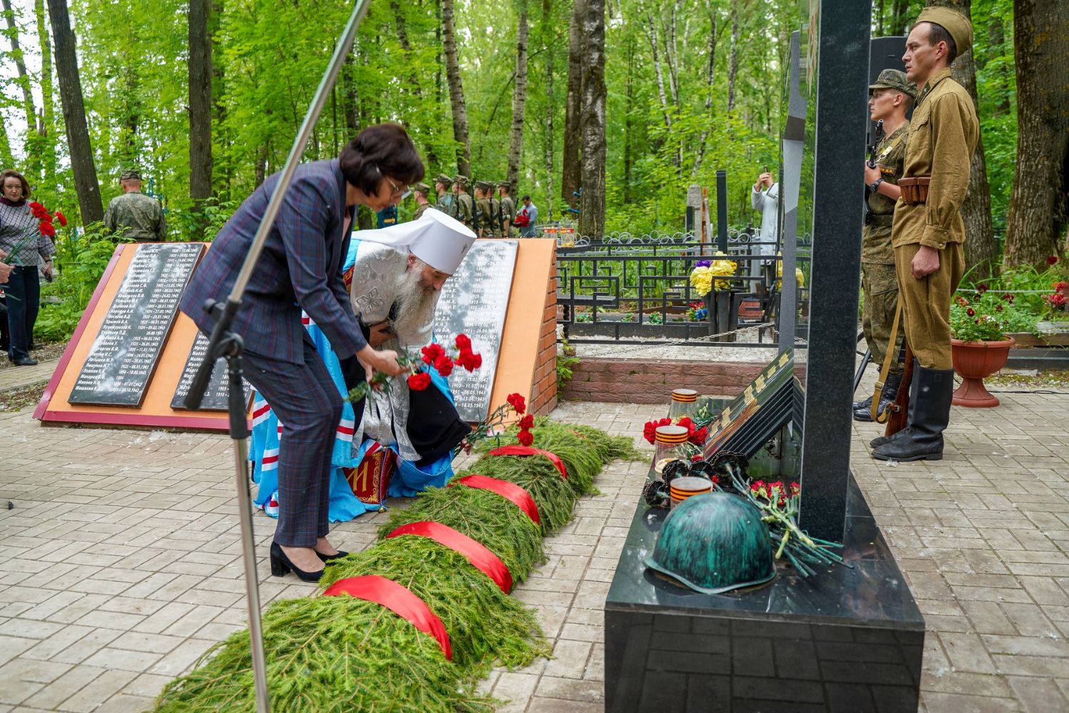 День памяти и скорби продолжился на Марковском кладбище Йошкар-Олы – у мемориала на братском захоронении павших воинов была отслужена заупокойная лития. Возглавил богослужение митрополит Йошкар-Олинский и марийский Иоанн, владыке сослужили руководитель епархиального отдела по взаимодействию с правоохранительными органами и вооруженными силами протоиерей Александр Бачурин и протодиакон Михаил Козловский.
