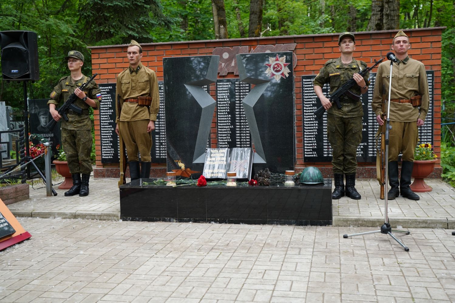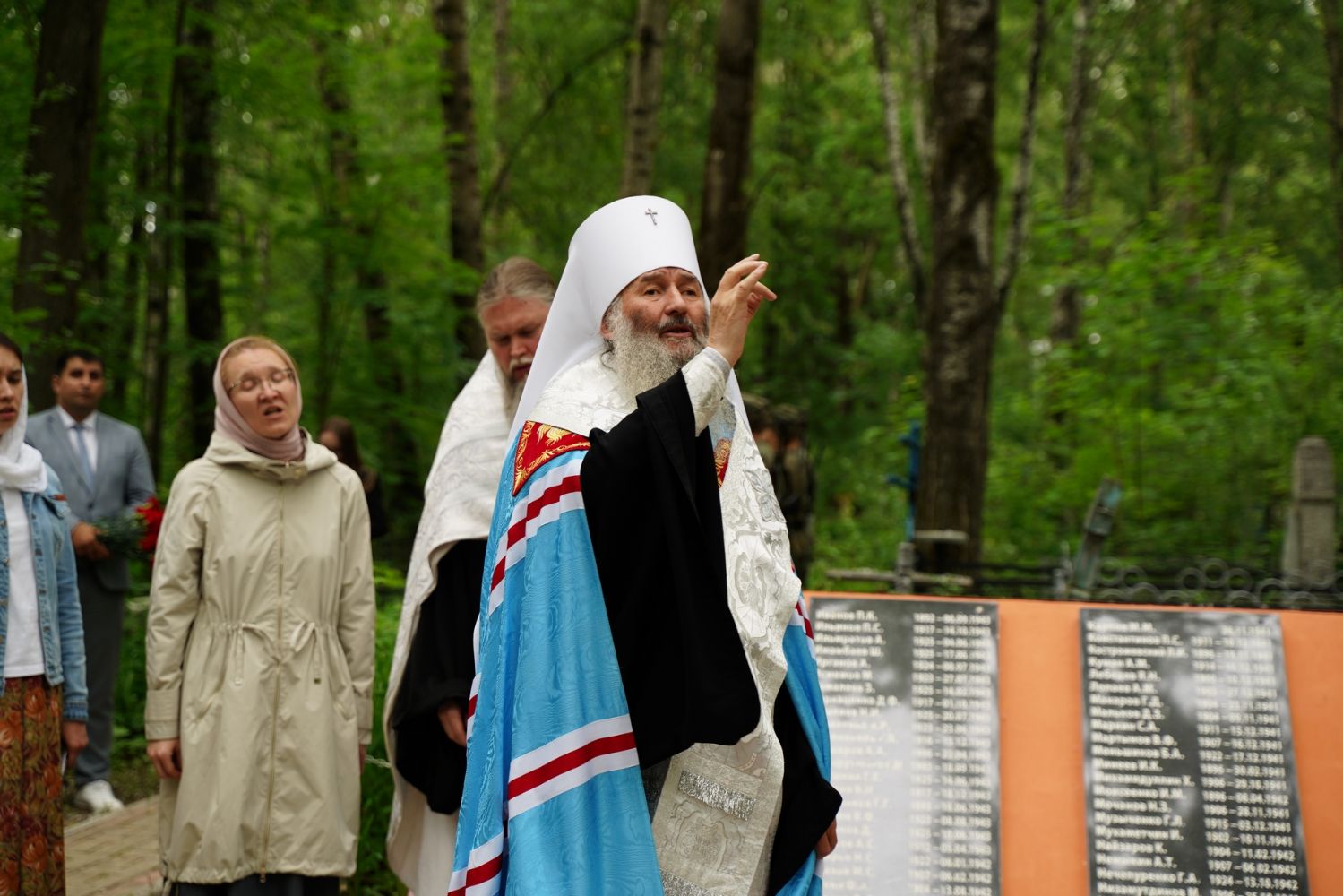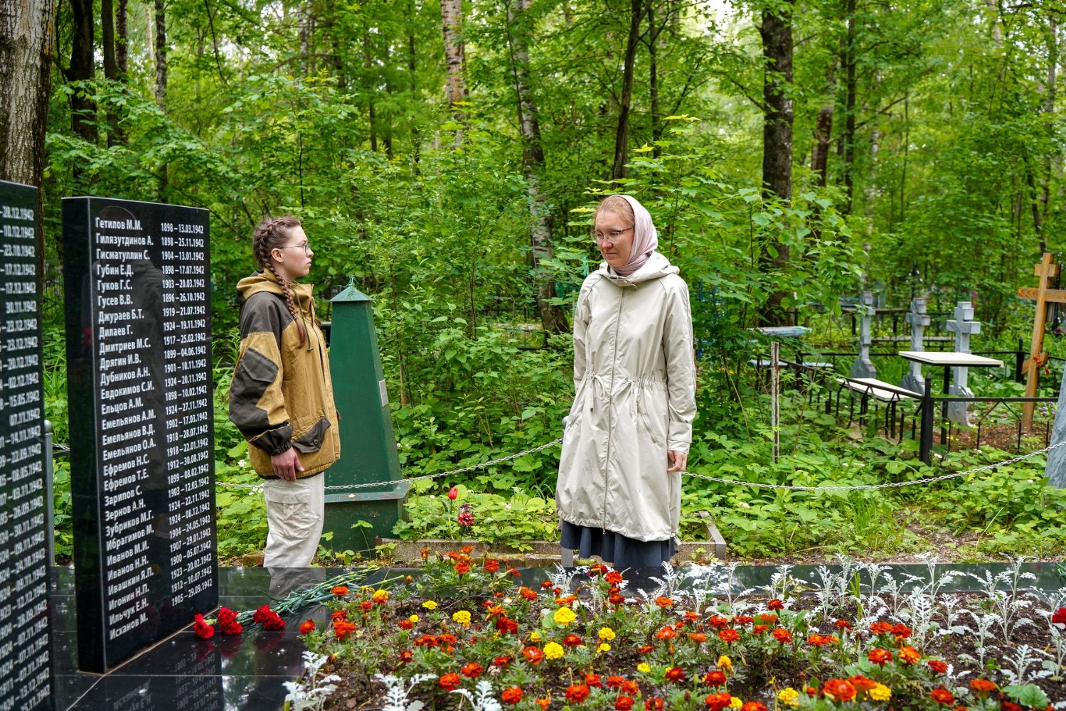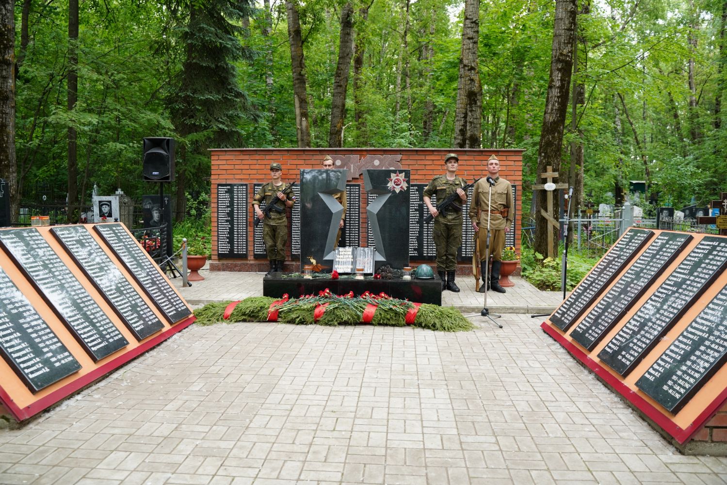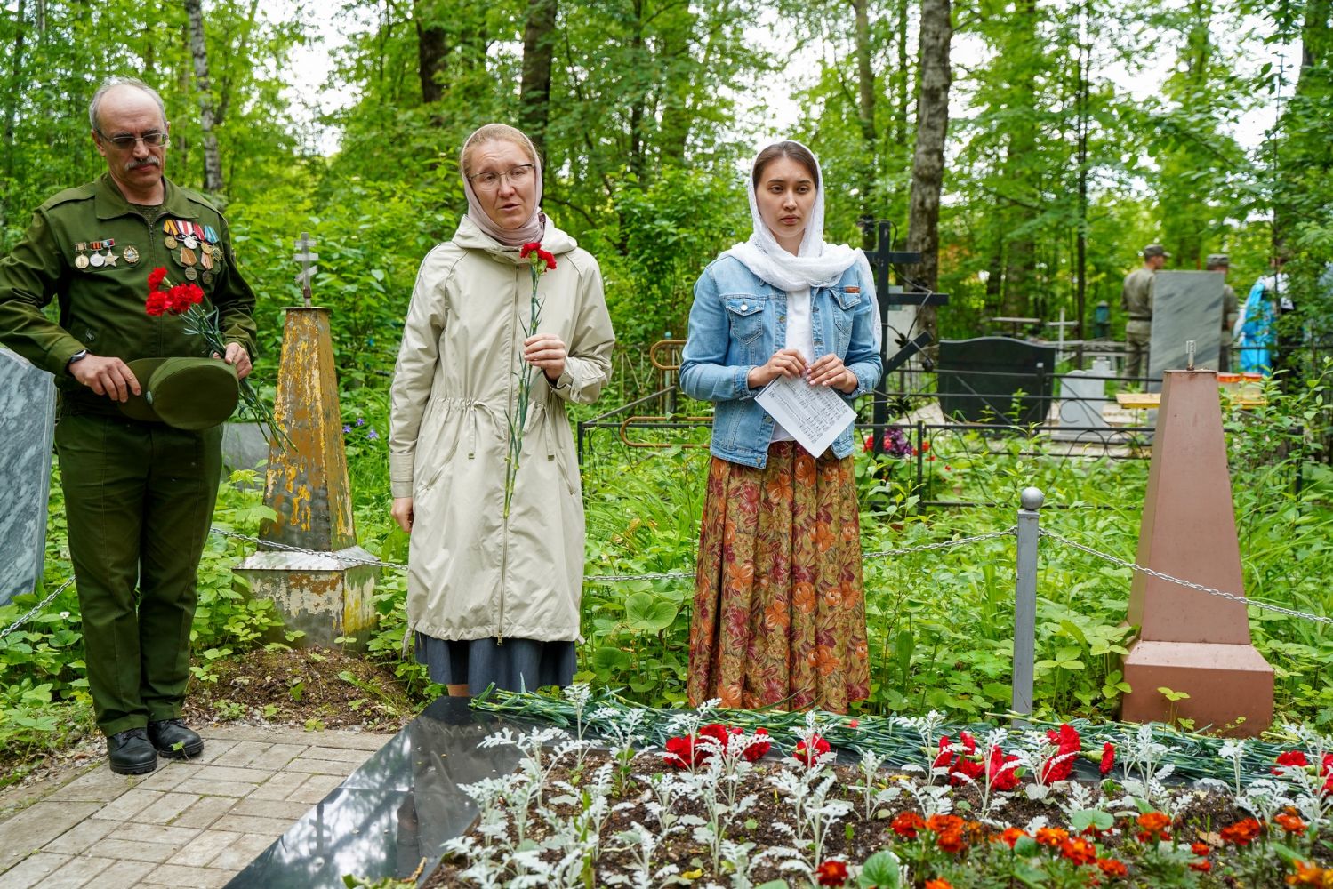 День памяти и скорби продолжился на Марковском кладбище Йошкар-Олы – у мемориала на братском захоронении павших воинов была отслужена заупокойная лития. Возглавил богослужение митрополит Йошкар-Олинский и марийский Иоанн, владыке сослужили руководитель епархиального отдела по взаимодействию с правоохранительными органами и вооруженными силами протоиерей Александр Бачурин и протодиакон Михаил Козловский.