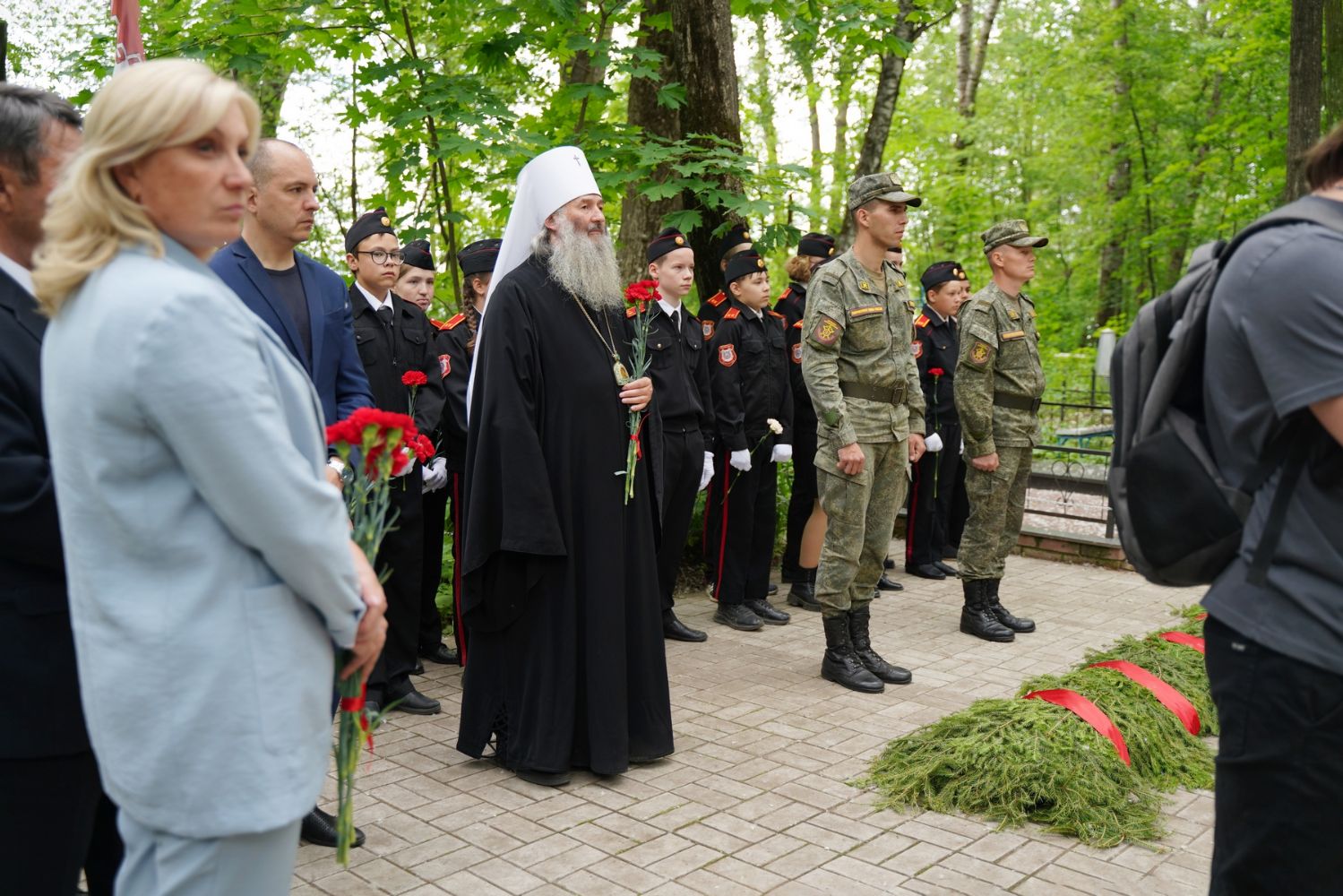 После богослужения митрополит Иоанн напомнил, что 22 июня 1941-го года Церковь праздновала память Всех святых, в земле Российской просиявших. И Святейший Патриарх (тогда еще митрополит) Сергий (Старогородский) после Божественной литургии в тот воскресный день воскликнул: «Да, велик враг, облеченный злобой демонской, пришел на святую Русь. Но те сонмы святых земли русской, память которых мы празднуем, сегодня вместе с нами обращают свой молитвенный взор ко Господу и просят, чтобы Господь не прогневался на нас, но явил свою милость нашей стране».