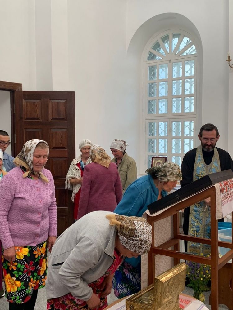 Молебен совершил настоятель храма иерей Алексий Тарасов. Верующие радостно собрались на богослужение, пели акафист всем приходом и долго не хотели расходиться – прикладывались к святыне, беседовали с батюшкой.