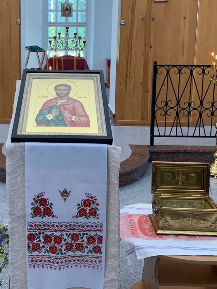В храм были принесены икона мученика Вонифатия и частица его святых мощей. Мученику традиционно молятся об избавлении от недуга пьянства и других пагубных привычек.
