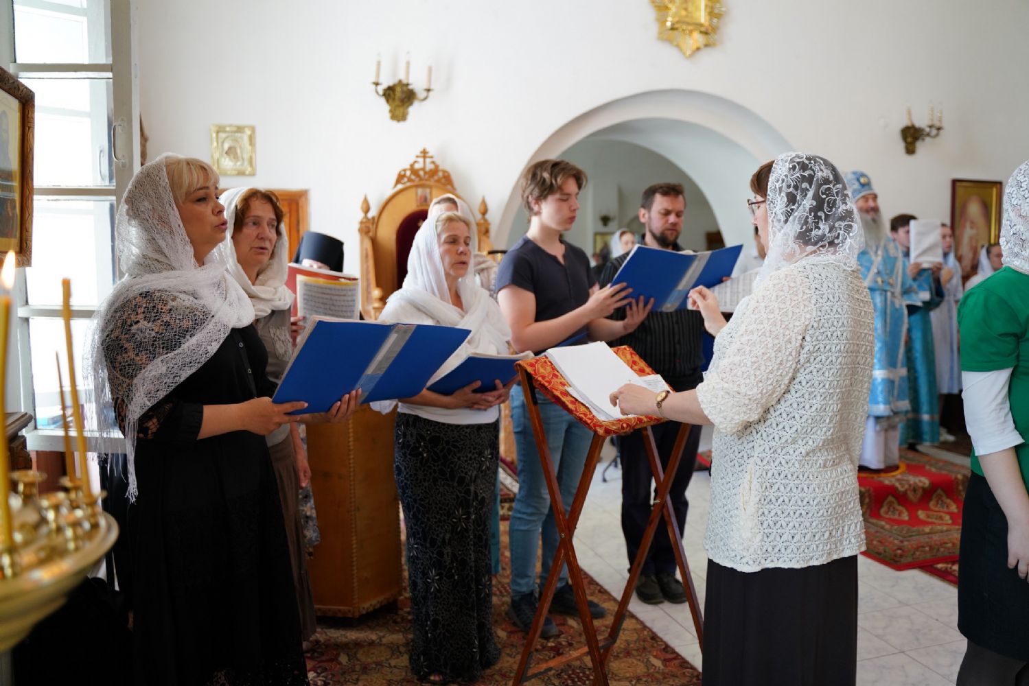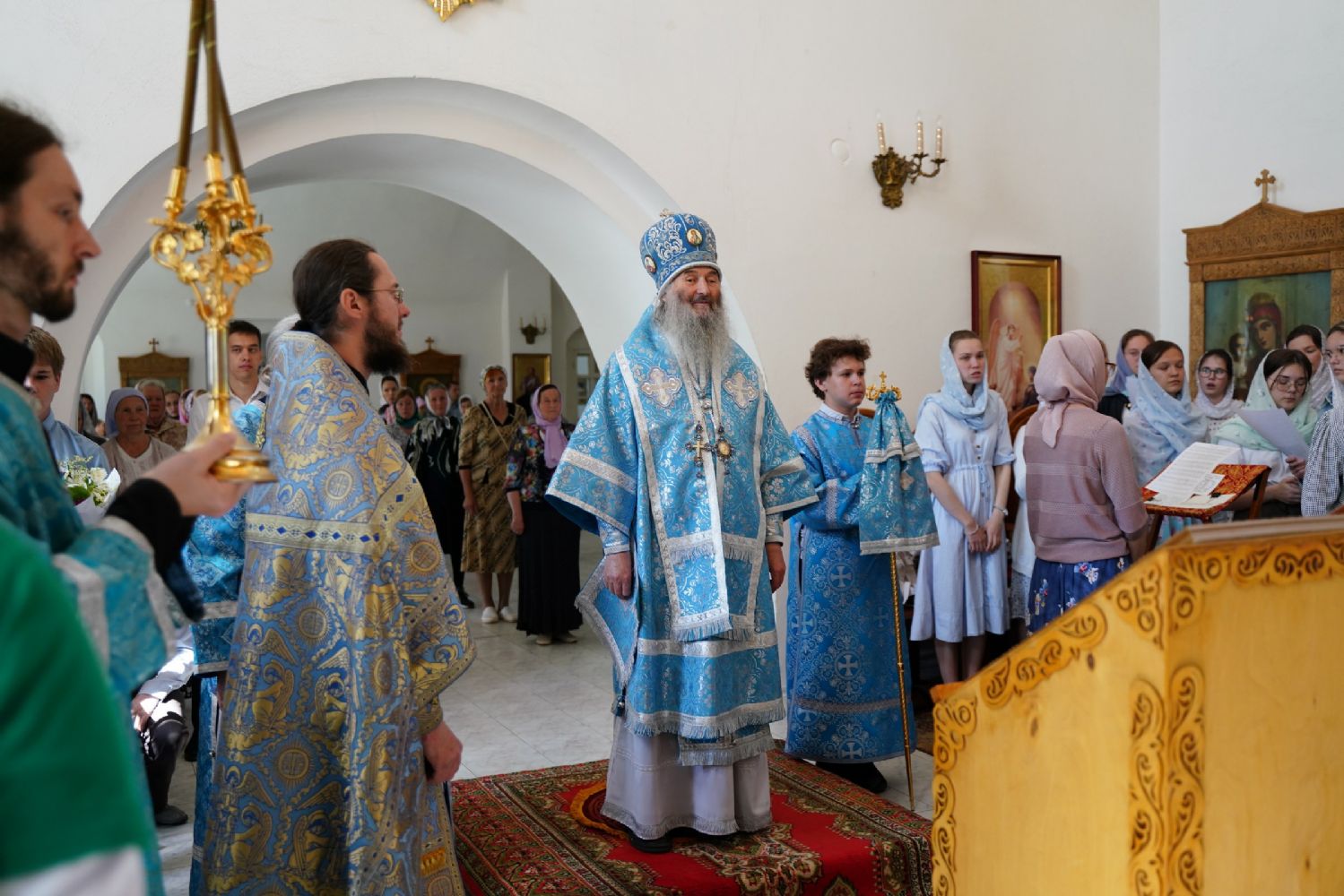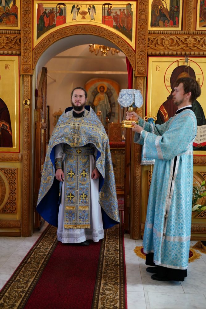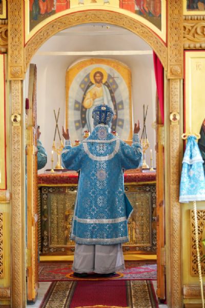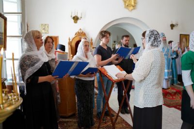 Владыке сослужили клирик Вознесенского собора иерей Димитрий Копылов, протодиакон Михаил Козловский и диакон Владимир Лихачев. Песнопения исполняли два хора: детско-юношеский хор «Благовест» под управлением регента Татьяны Черновой и хор Троицкого храма г. Йошкар-Олы под управлением Анны Ярошевич.