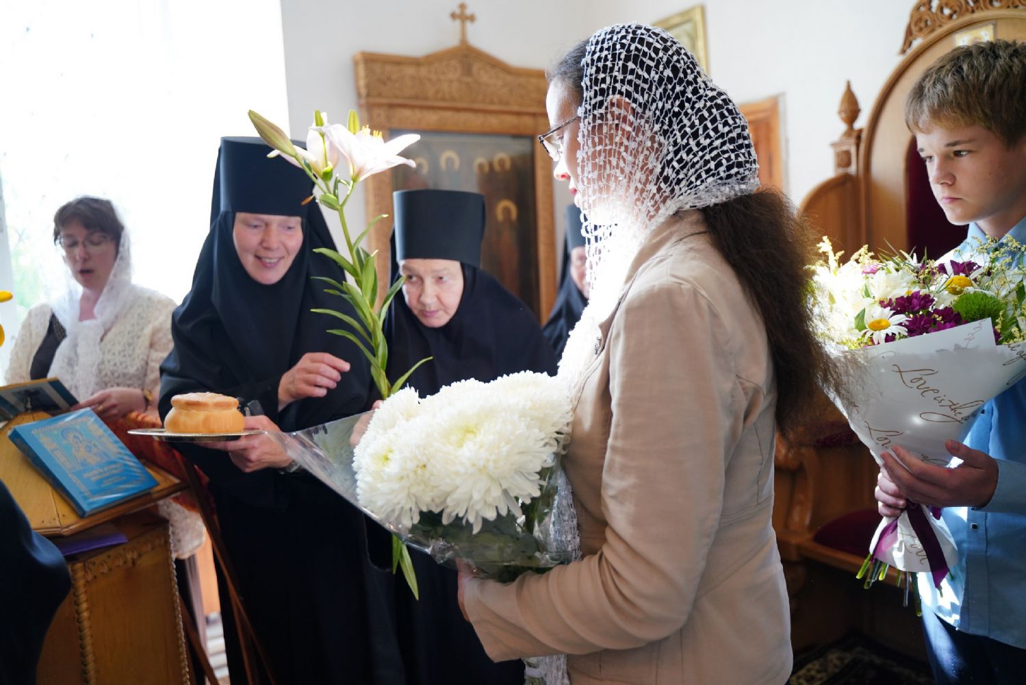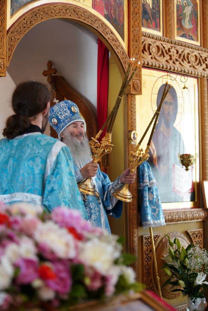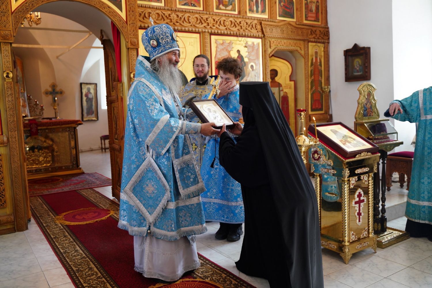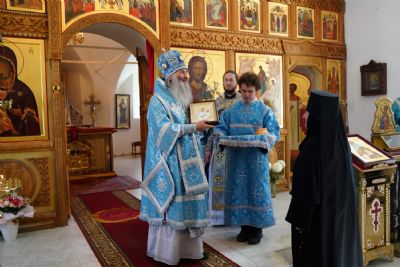 В благословение владыка вручил матушке Варнаве икону Тихвинской Божией Матери и богородичную просфору.
