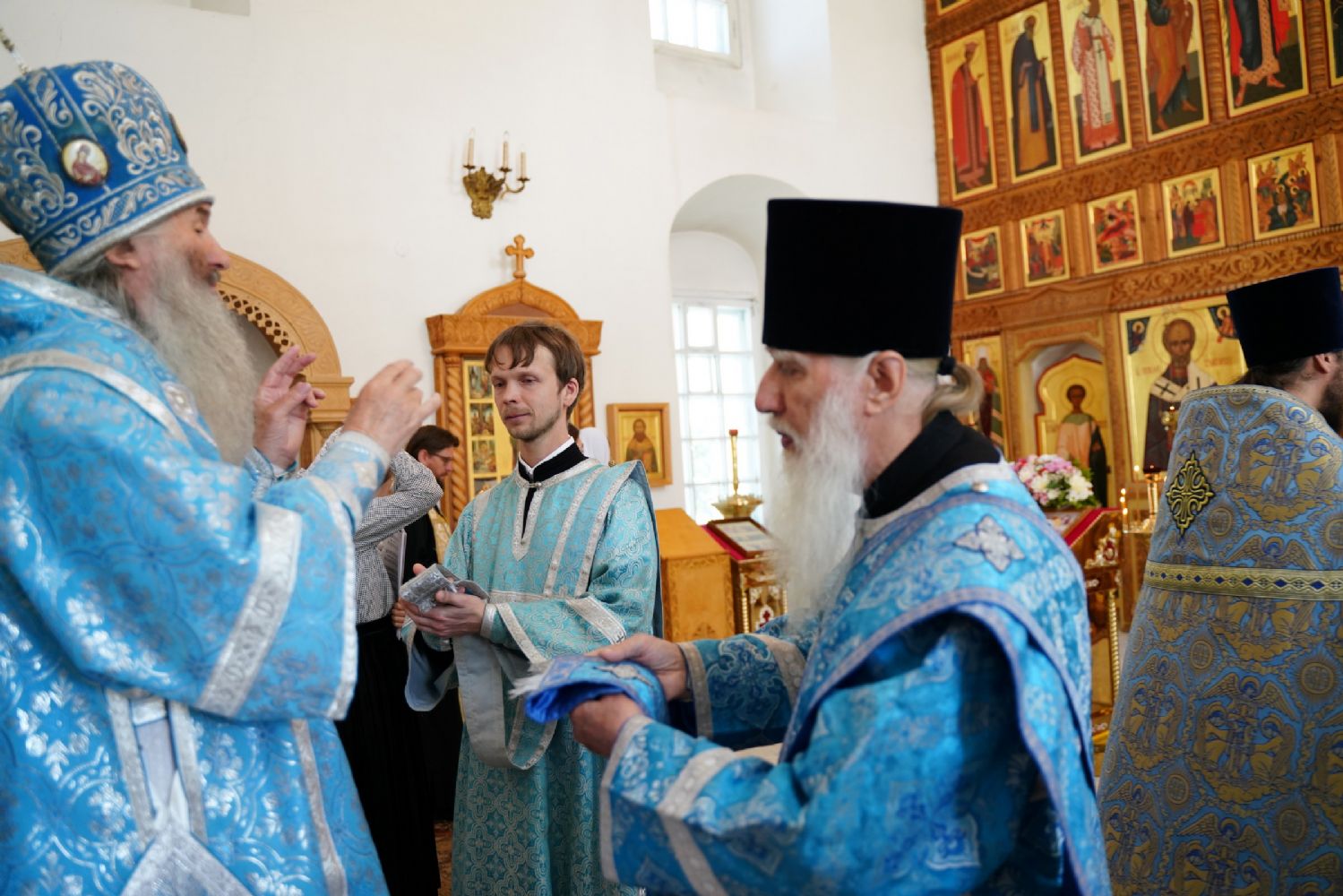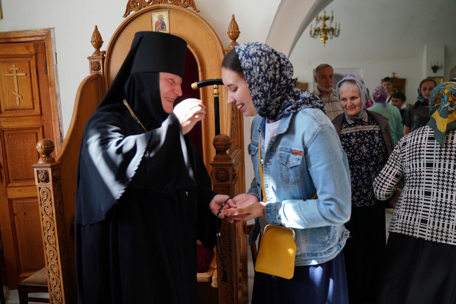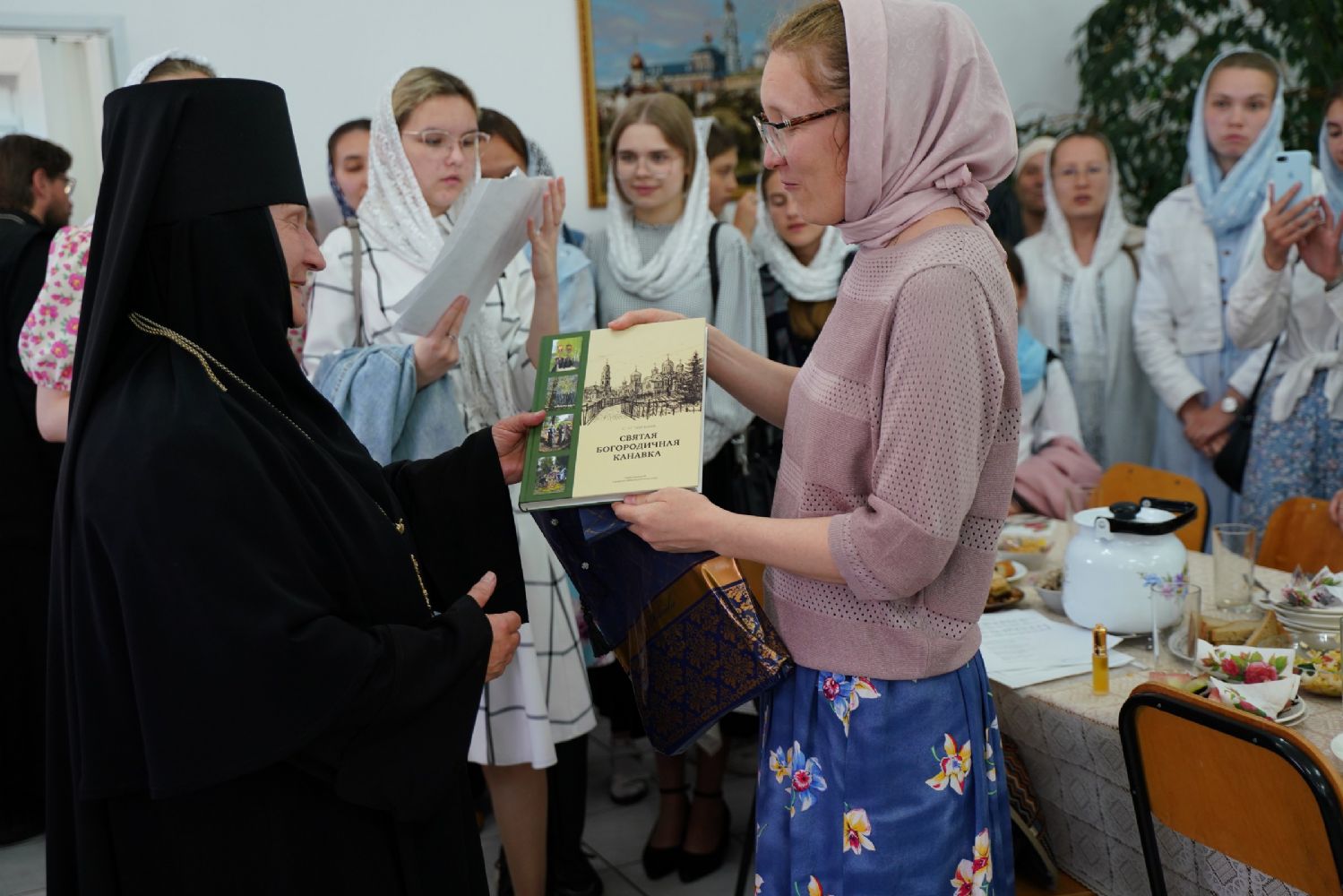 В благословение владыка вручил матушке Варнаве икону Тихвинской Божией Матери и богородичную просфору.
