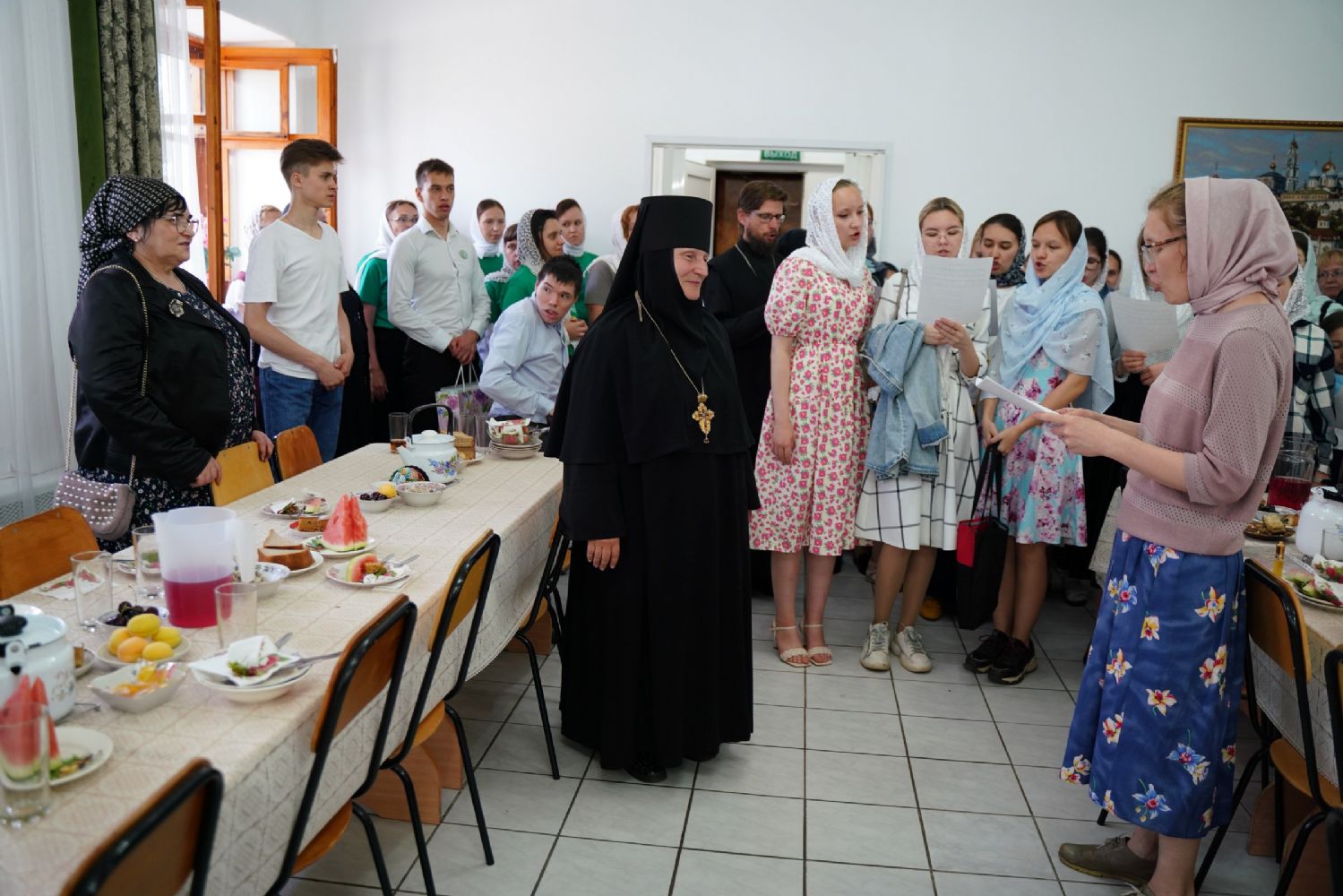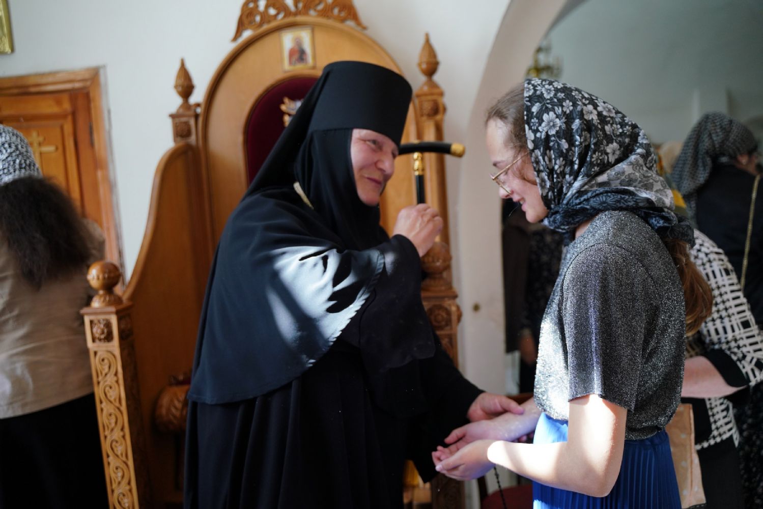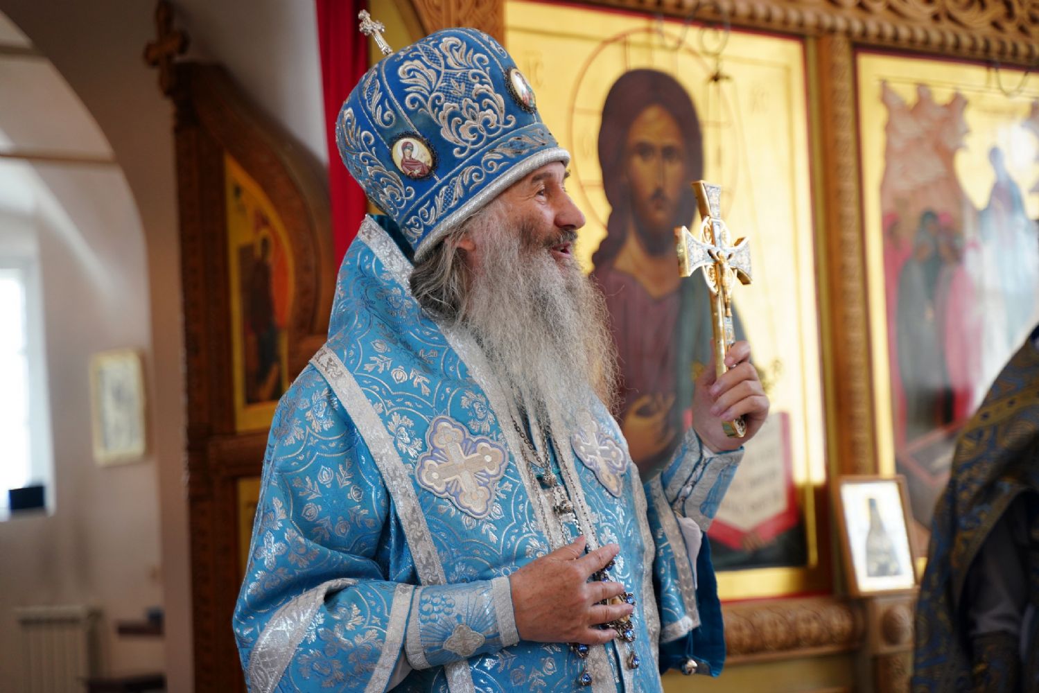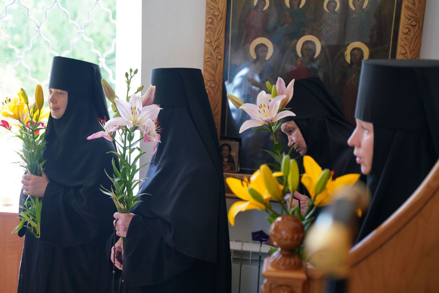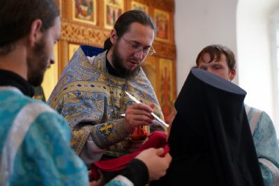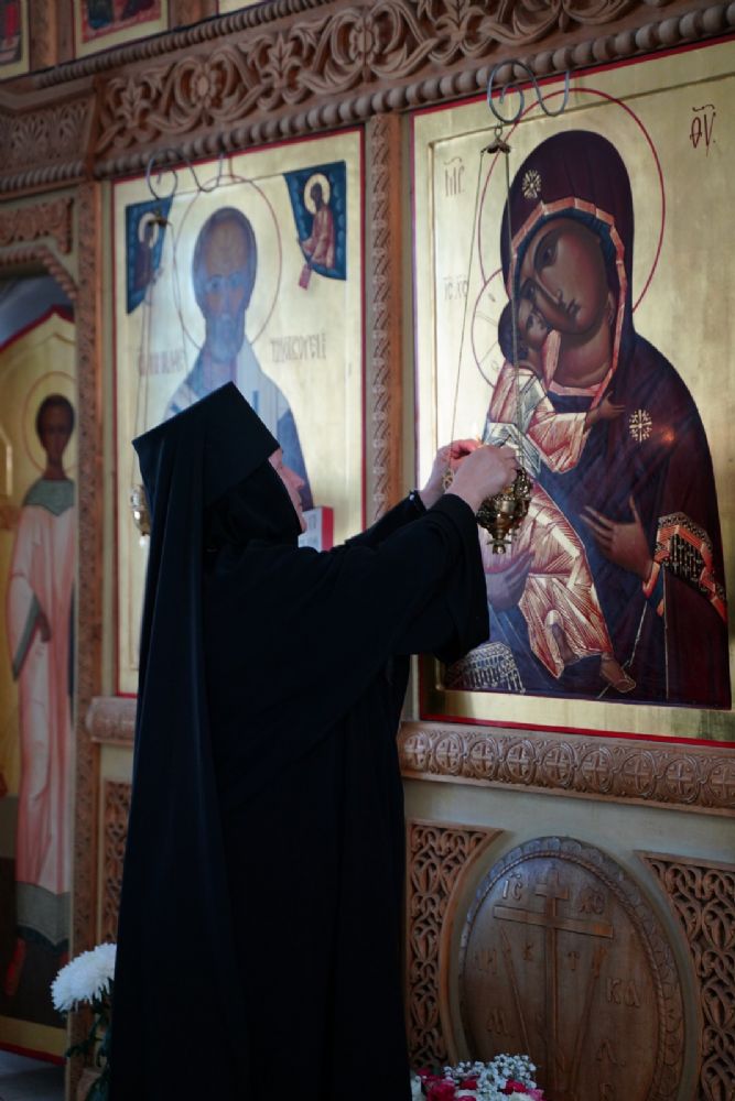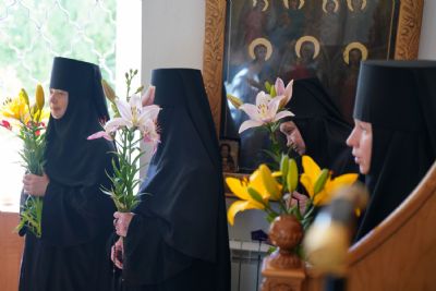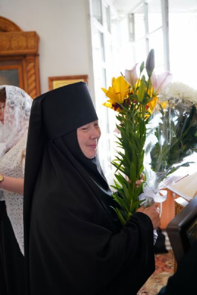 «Ваше высокопреподобие, дорогая матушка, милостью Божией Господь вновь сподобил нас отмерить еще один день и один год нашей жизни в вечность. Путь, который ты избрала, наполнен, как мы читали и слышали в монашеском постриге, многих скорбей, болезни, крестоношения. И одновременно каждому из монашествующих Сам Господь говорит, какое утешение испытывают те, которые всецело отдают себя в руки Божии и живут под руководством Его Пречистой Матери. Пресвятая Богородица особенно возлюбила тех, которые, подобной Ей, в своей жизни отдают себя всецело Богу. Она первая, сохранив девство, прошла по этому пути монашескому, скорбному крестоношению, но Господь Ей первой явился после Воскресения. И открыл для Нее ту радость, к которой каждый из нас стремится – жить с Воскресшим Христом.