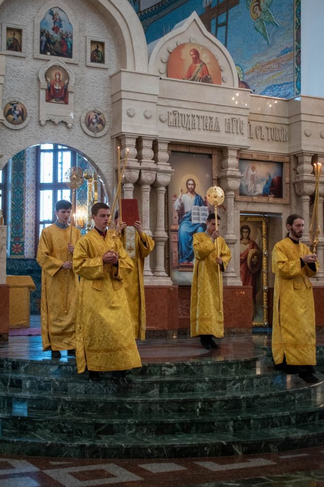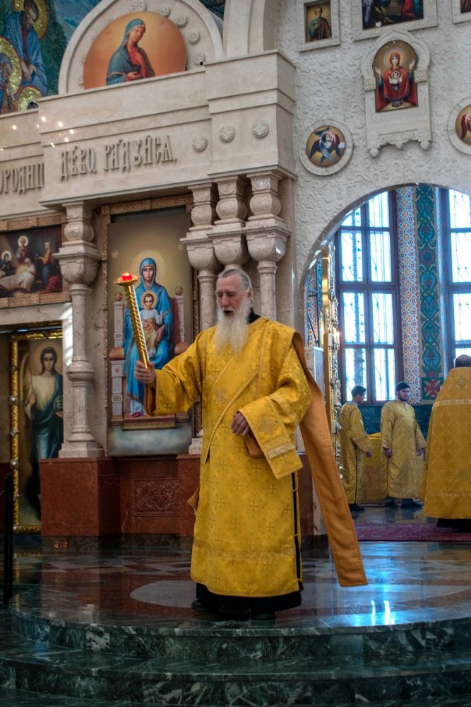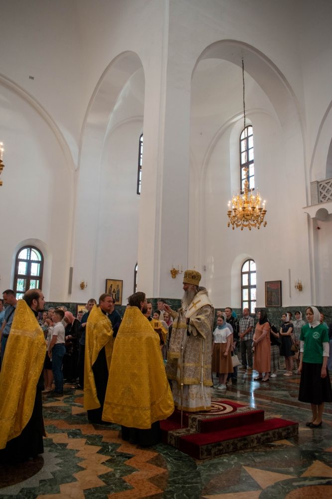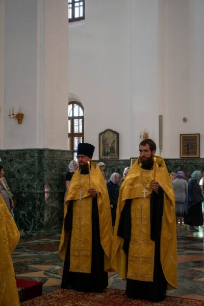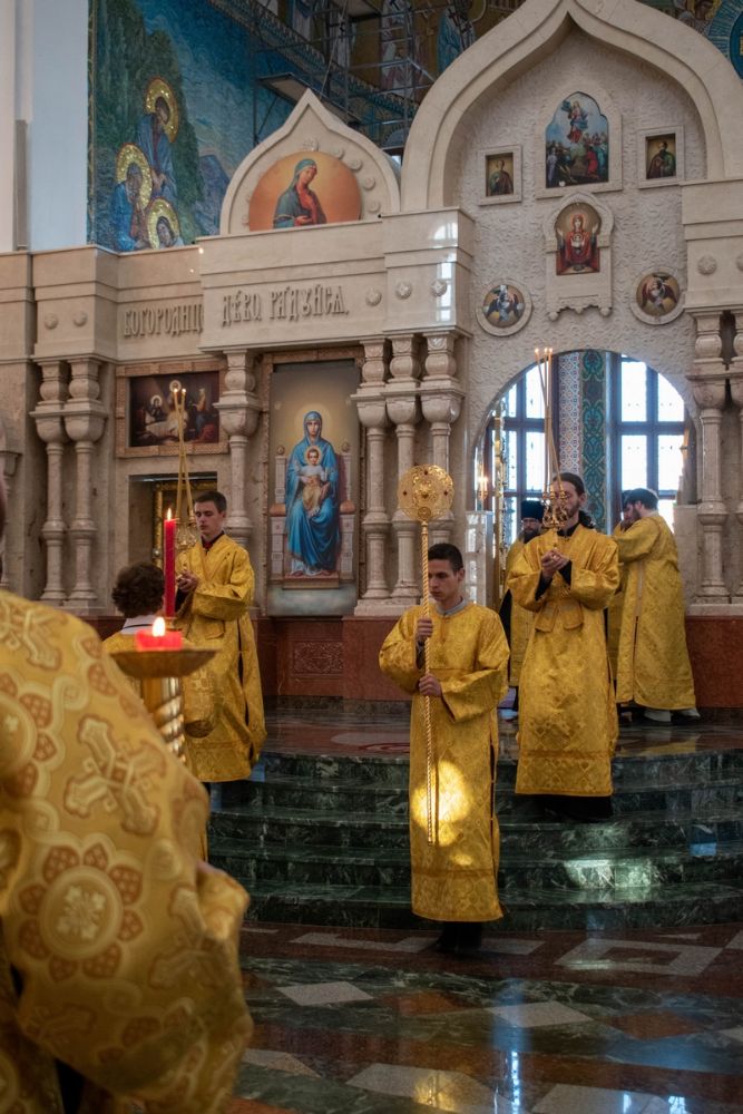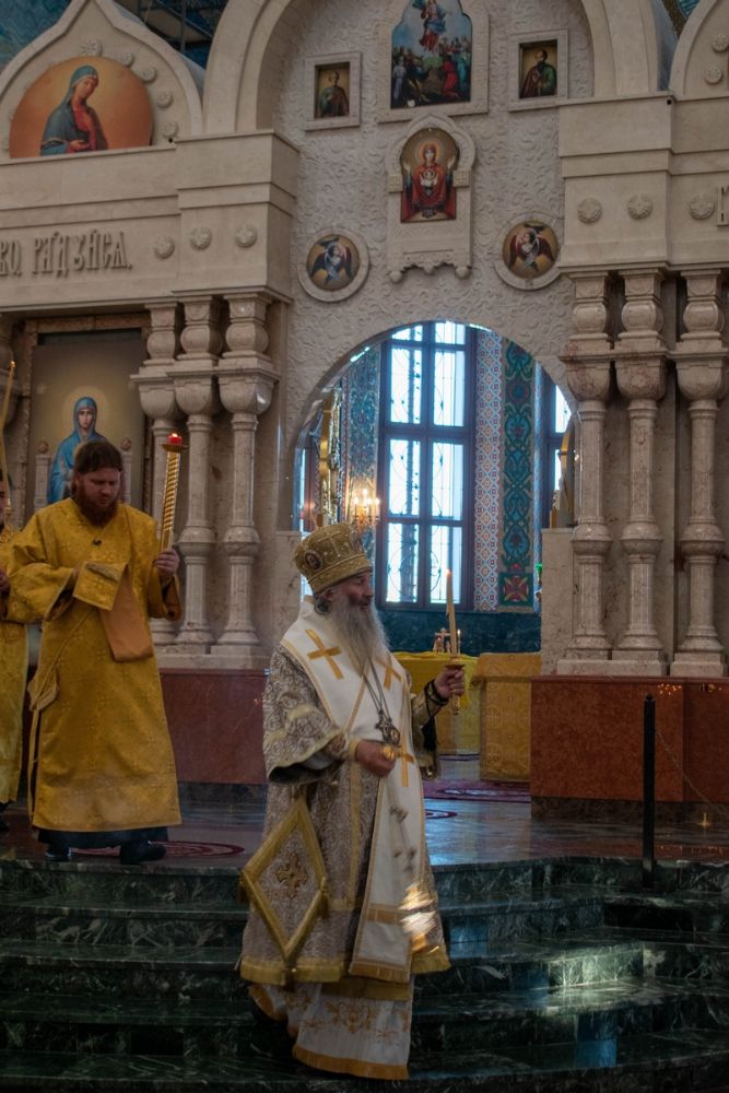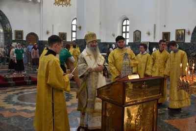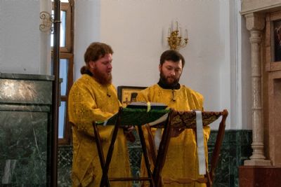 Владыке сослужили ключарь кафедрального собора протоиерей Сергий Поглазов, клирики собора и протодиакон Михаил Козловский. Песнопения исполнял хор «Благовест» под управлением регента Татьяны Черновой.