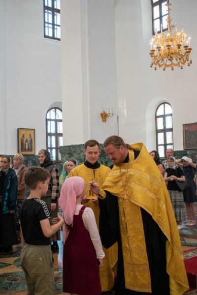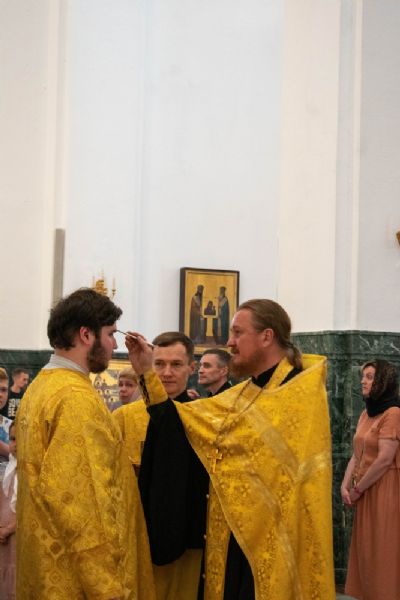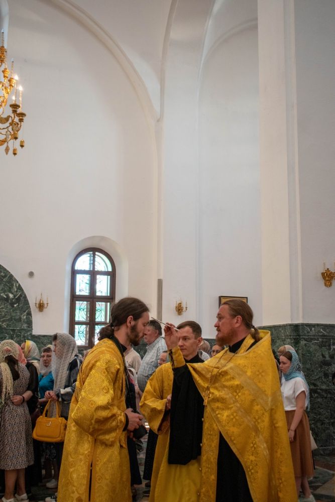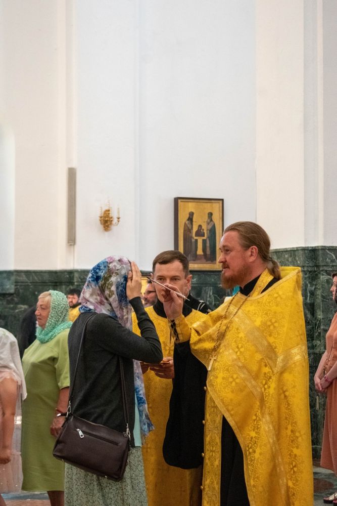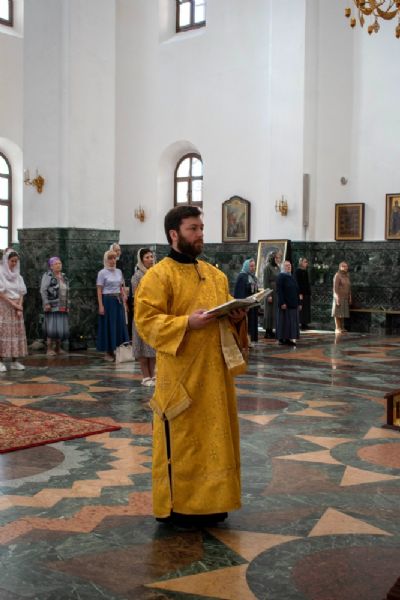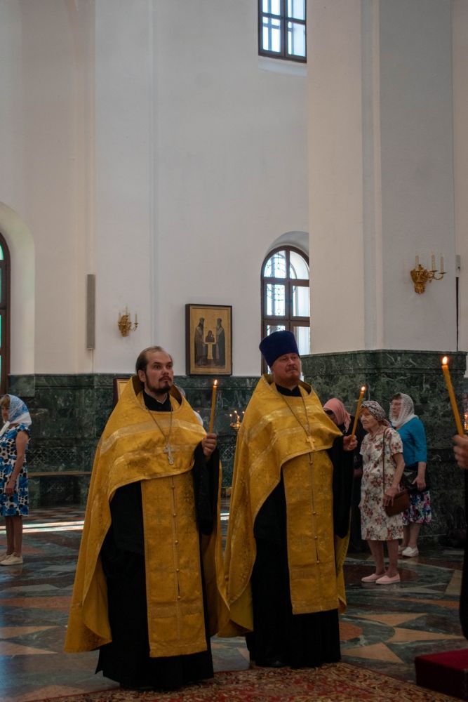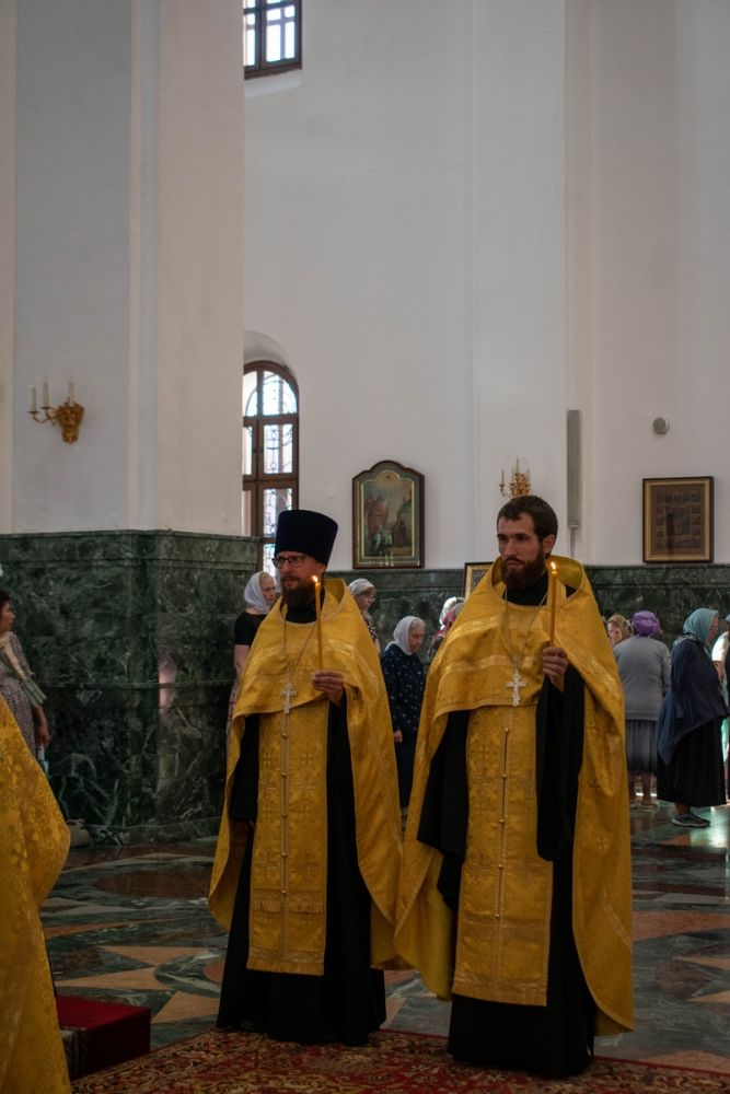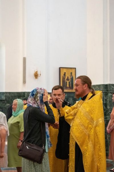 Владыке сослужили ключарь кафедрального собора протоиерей Сергий Поглазов, клирики собора и протодиакон Михаил Козловский. Песнопения исполнял хор «Благовест» под управлением регента Татьяны Черновой.