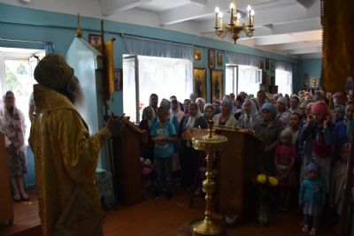 Отметить престольный праздник собралось множество верующих не только из п. Советский, но и из окрестных селений, и из города. Многие причастились Святых Христовых Таин. После Литургии прошел крестный ход вокруг храма со чтением Евангелия и кроплением святой водой.
