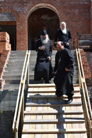В завершение митрополит Иоанн посетил стройплощадку нового каменного храма в п. Советский, где ознакомился с ходом работ.