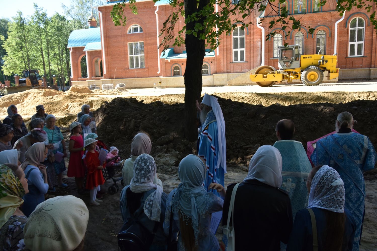 Перед богослужением митрополит Иоанн с отцом Алексием обошли всю территорию стройки, владыка осмотрел храм снаружи и внутри. Строительные работы, милостию Божией, продвигаются быстро – не за горами освящение храма!