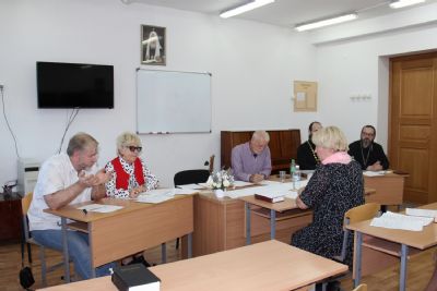 Принимала экзамен комиссия из шести преподавателей: иерей Иоанн Кристев, иерей Димитрий Дьяков, иерей Вячеслав Булычев, кандидат исторических наук Левенштейн Олег Генрихович, кандидат богословия Крикунов Василий Викторович и завуч Курсов, член-корреспондент Международной академии наук педагогического образования Сарынина Виктория Яковлевна.
