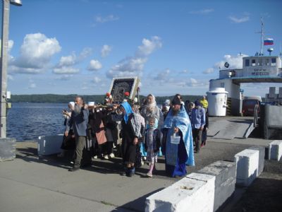 По традиции прихожане храма Архангела Михаила во главе с настоятелем храма протоиереем Николаем Барсуковым и жители п. Юрино встречали Пречистую Богородицу на берегу Волги. Икона прибыла из с. Сумки, в сопровождении настоятеля храма Владимирской иконы Божией Матери с. Владимирское иерея Алексия Васюткина, настоятеля храма Рождества Христова с. Пайгусово иерея Сергия Князева и паломников, участвующих в крестном ходе. Паром шел через Волгу с пением молитв Пресвятой Богородице.