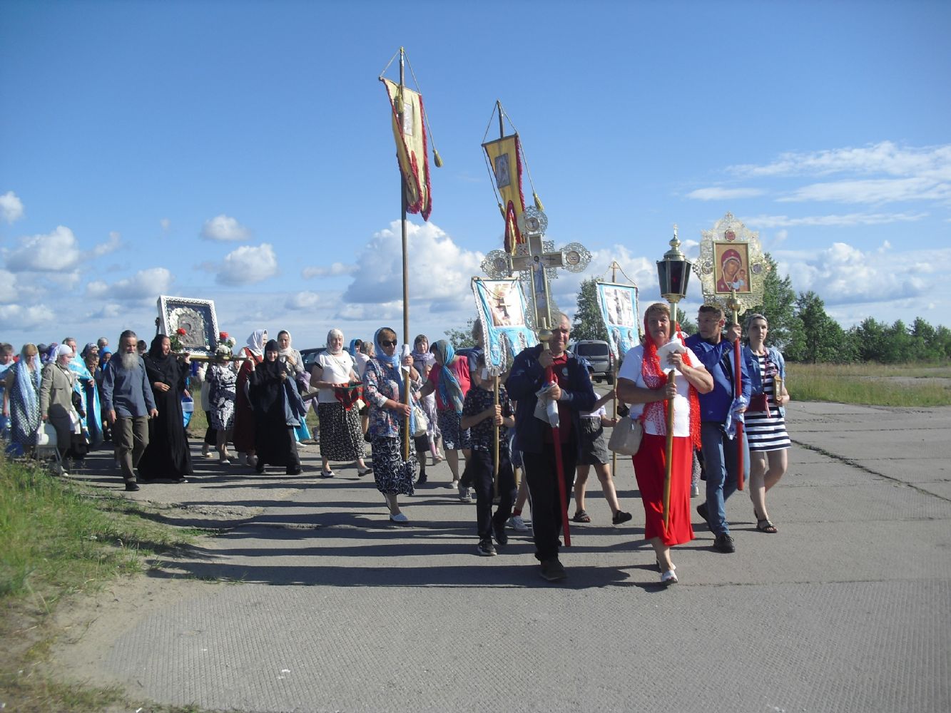 25 и 26 июня в Михайло-Архангельском храме совершалось праздничное богослужение – всенощное бдение и Божественная литургия Недели Всех святых, в земле Русской просиявших. И крестный ход с Владимирской иконой Божией Матери двинулся дальше – в село Юксары Килемарского района в сопровождении иерея Алексия Васюткина, окормляющего молитвенное шествие, и настоятеля Казанского храма с. Юксары иерея Игоря Лебедева.