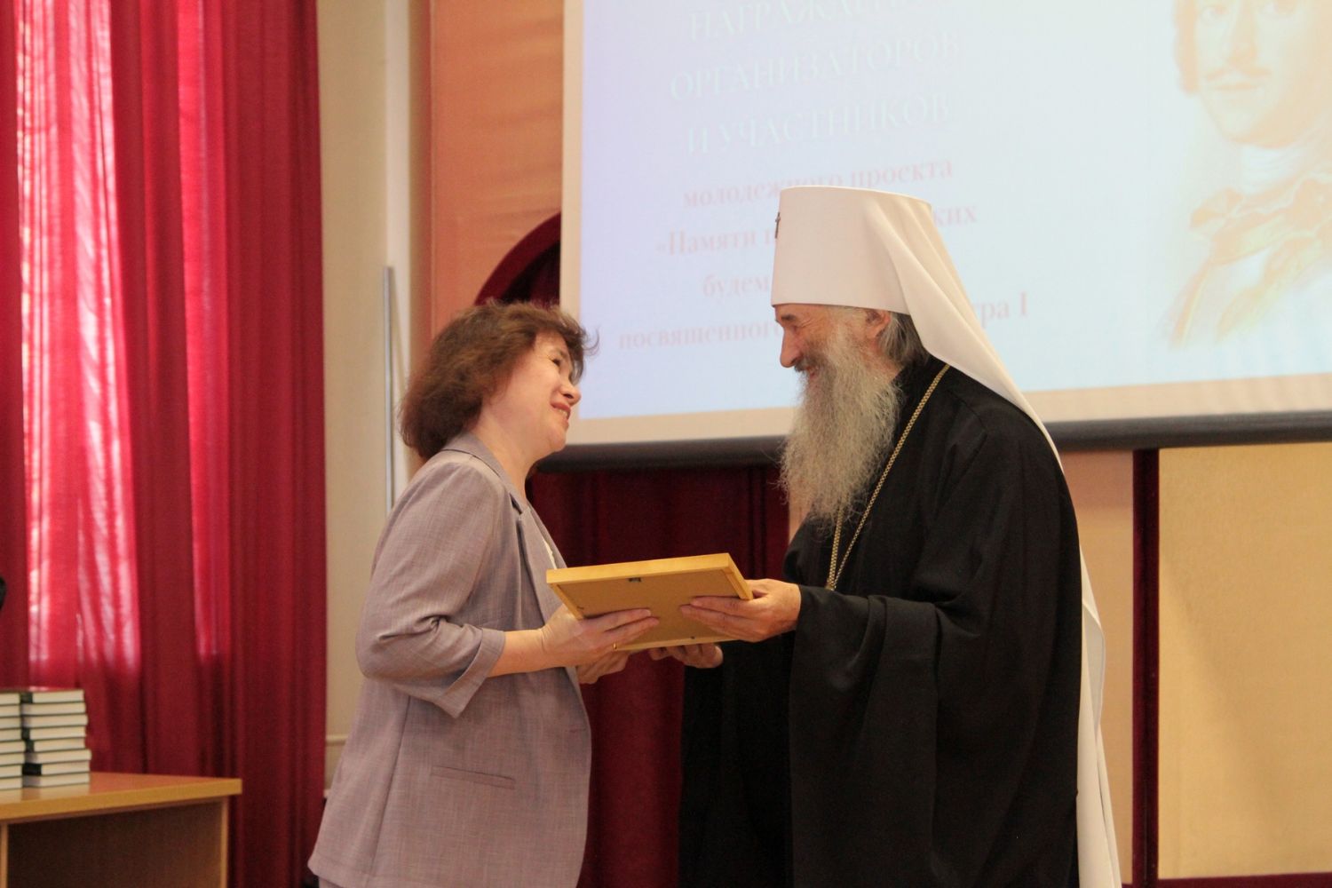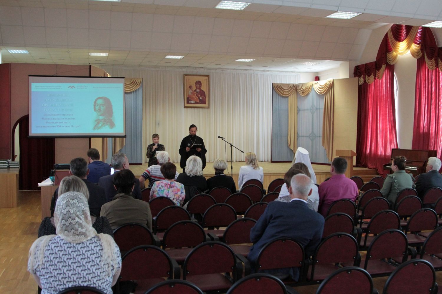 28 июня в Православном центре Йошкар-Олы прошла церемония награждения организаторов мероприятий и руководителей команд-победителей молодежного проекта «Памяти предков великих будем достойны!», посвященного 350-летию Петра I.