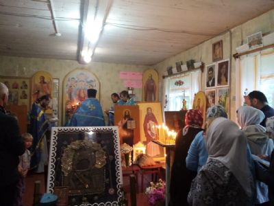 Богослужение проходило в здании сельской библиотеки, где временно установили престол и жертвенник. С этим событием совпало и принесение в деревню чудотворной иконы Божией Матери «Владимирская», крестный ход с которой сейчас шествует по приходам Килемарского района.