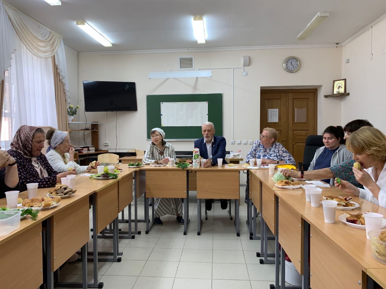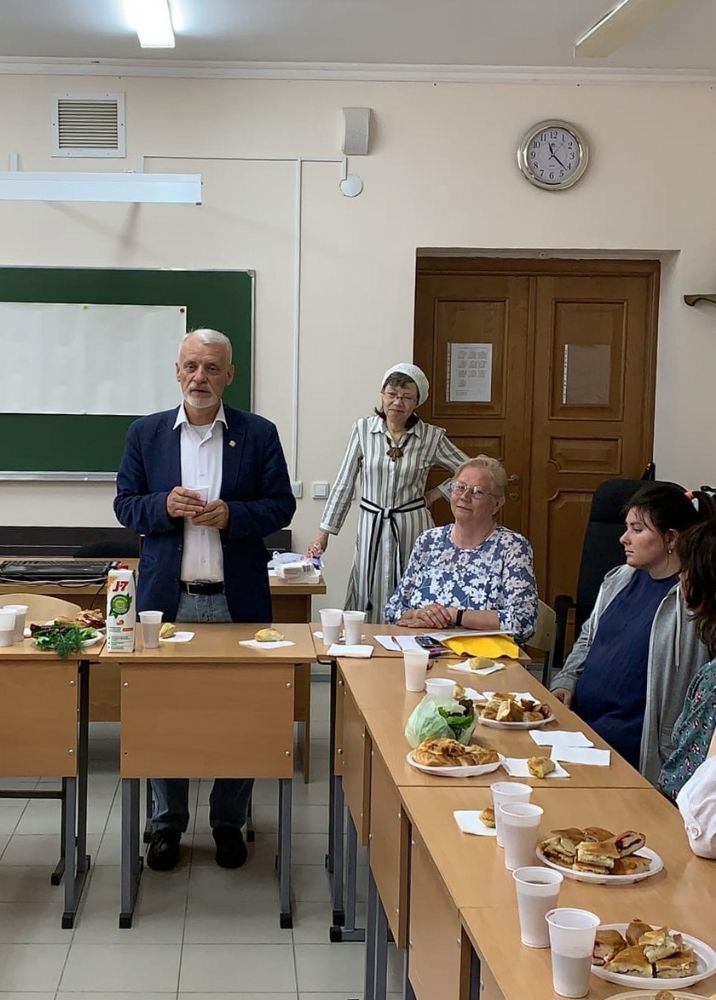 В Православном центре выпускников-педагогов радушно встретили руковолитель Образовательного центра Олег Генрихович Левенштейн и завуч Ольга Геннадьевна Разумова. За чайным столом тепло пообщались, вспомнили моменты учебы, экзаменационные волнения. Обменялись опытом работы в воскресных школах – служения Богу и ближним.