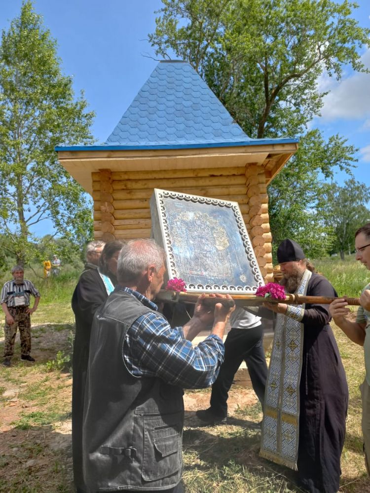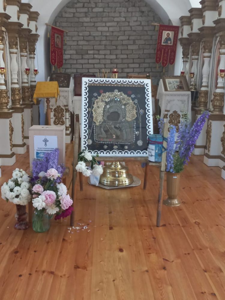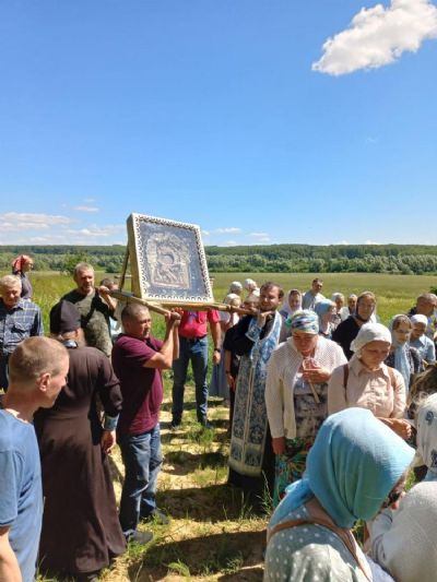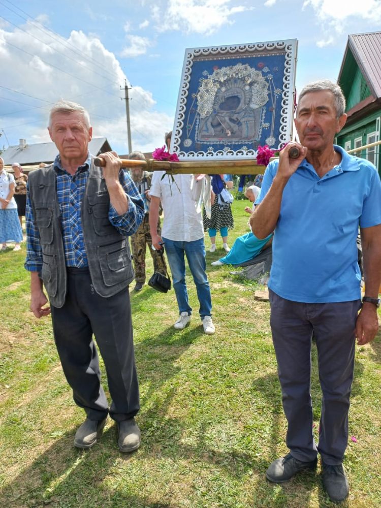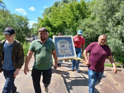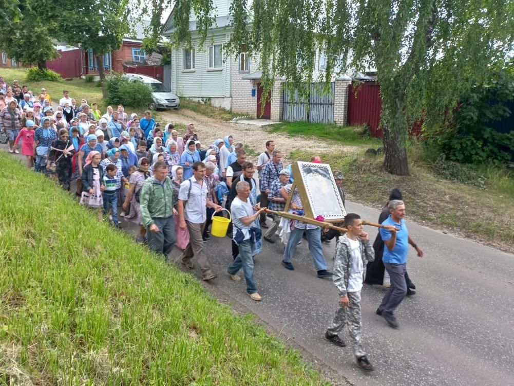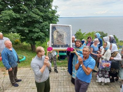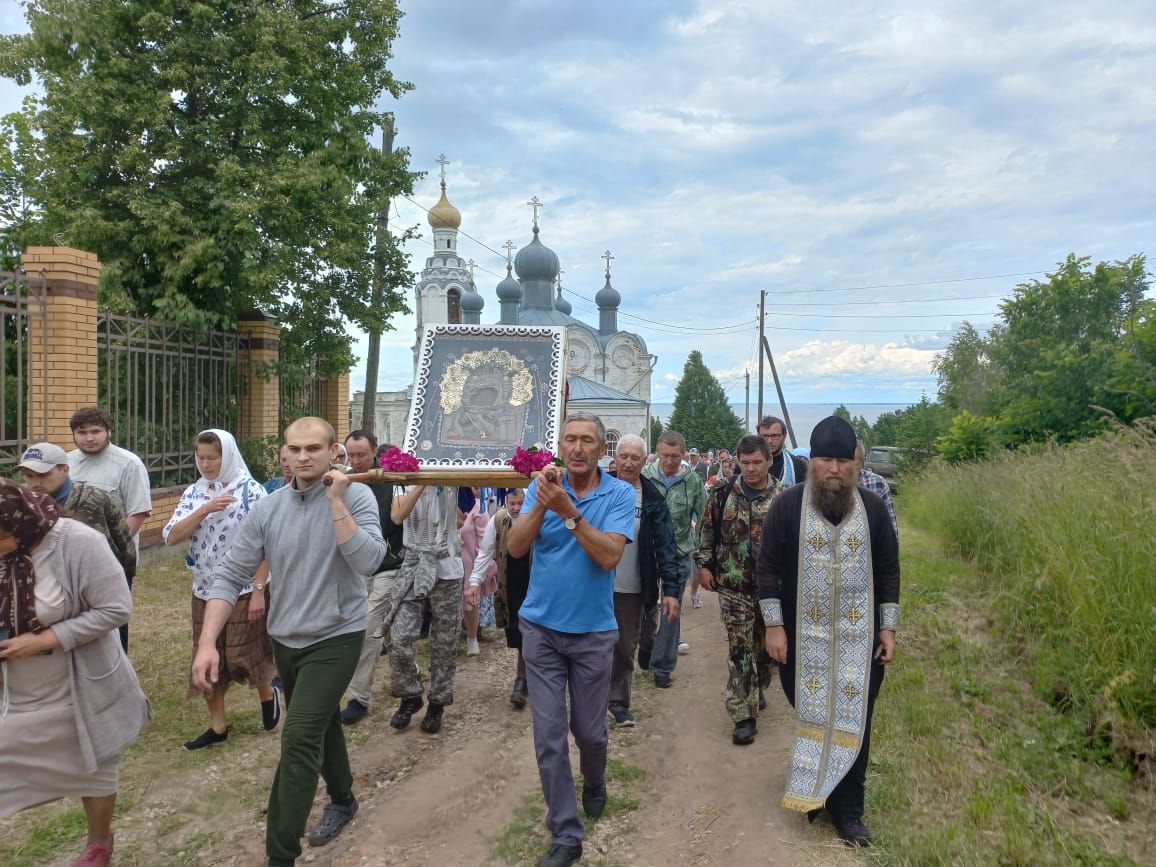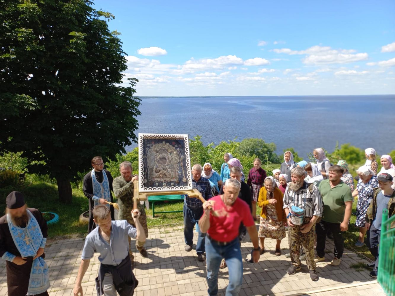 1 июля чудотворный образ был доставлен по Волге в село Покровское на катере в сопровождении иерея Алексия Васюткина и иерея Александра Сиситкина. На берегу их встречал протоиерей Виктор Соловьев с прихожанами. В Покровском храме отслужили молебен с акафистом, после трапезы – всенощное бдение, а наутро 2 июля – Божественную литургию. И верующие, обойдя крестным ходом вокруг храма с Владимирской иконой Божьей Матери, отправились в село Троицкий-Посад. По пути зашли на восстанавливающийся источник Покрову Божьей Матери, пропели тропарь, кондак и величание, вкусили прохладной воды и омыли лицо.