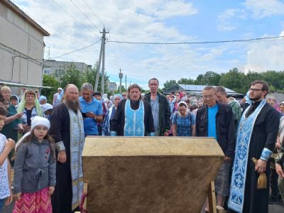 В Козьмодемьянске пришли в Смоленский Собор, где крестоходцев встречал настоятель протоиерей Алексей Евсеев с прихожанами.