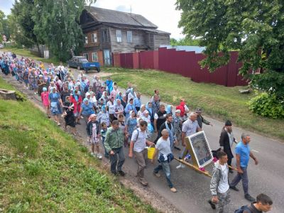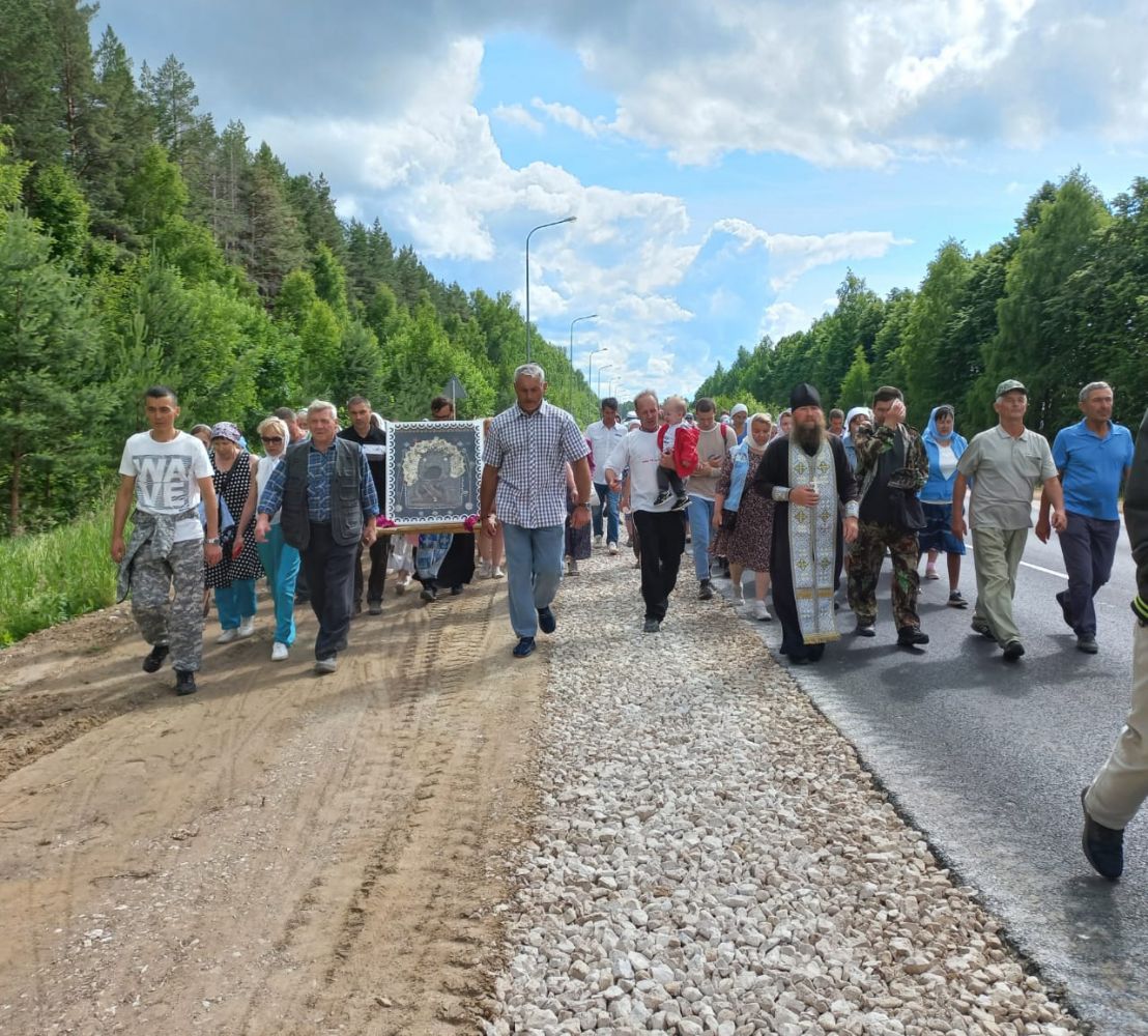 3 июля утром отец Виктор совершил Божественную литургию, песнопения исполнял хор храма. И двинулись в Козьмодемьянск. По пути к молитвенному шествию присоединились иереи Алексий Васюткин и Роман Соловьев, крестоходцы проходили через деревни Мумариха и Красногорка, где служились молебны. Также заходили на строящуюся часовню на месте бывшего Спасо-Юнгинского монастыря.