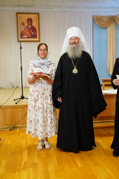 После молебна в актовом зале прошла торжественная часть – 15 выпускников получили из рук митрополита Иоанна свидетельства об окончании Курсов. Вместе со свидетельством каждому вручалось Святое Евангелие в знак того, что выпускники призваны нести свет Православия – в кругу семьи, среди коллег по работе, на приходах…