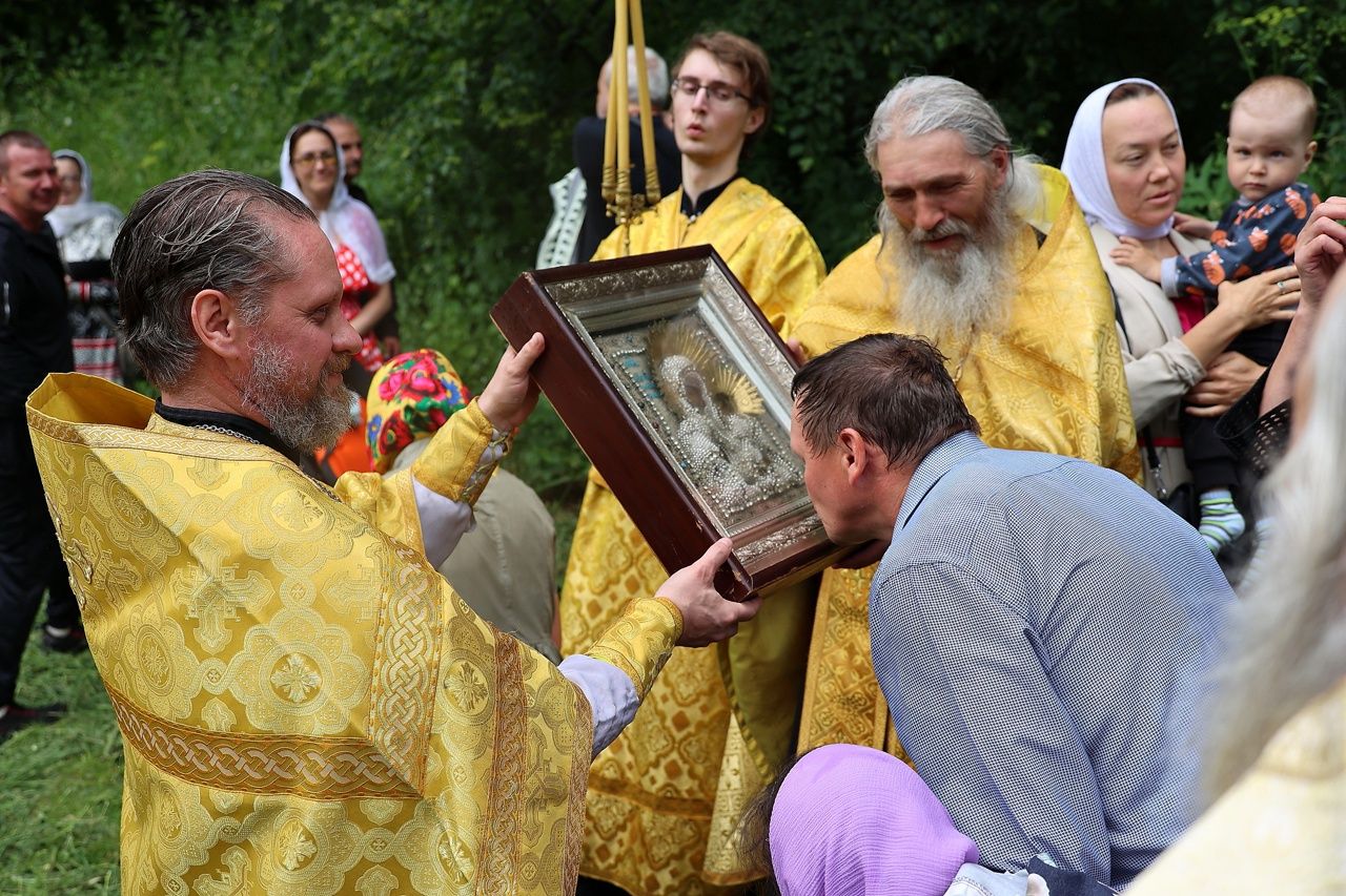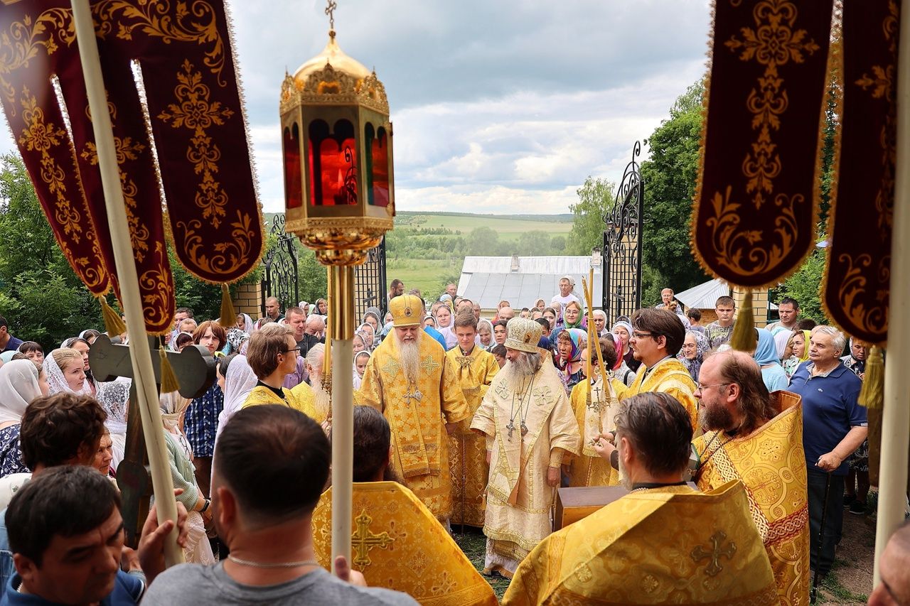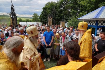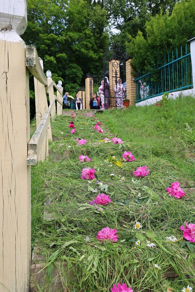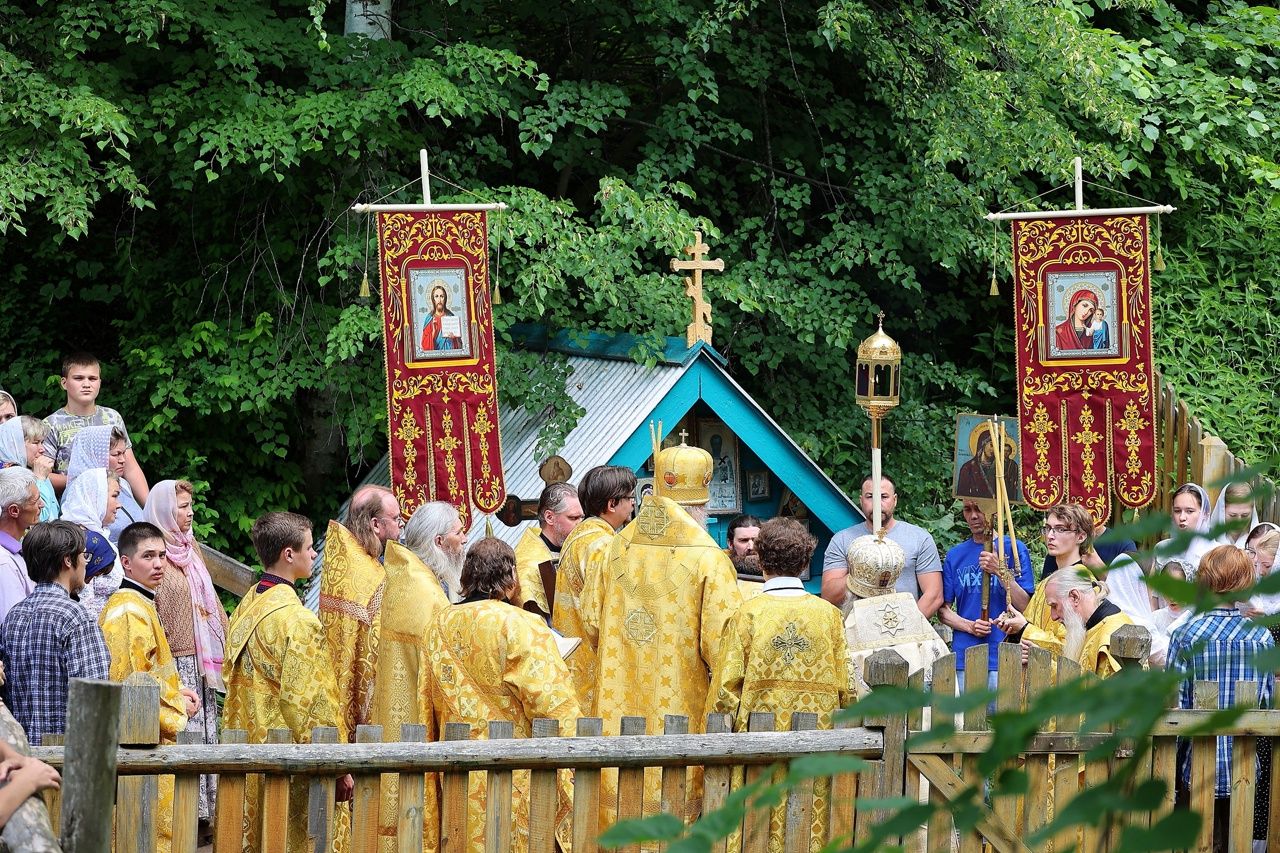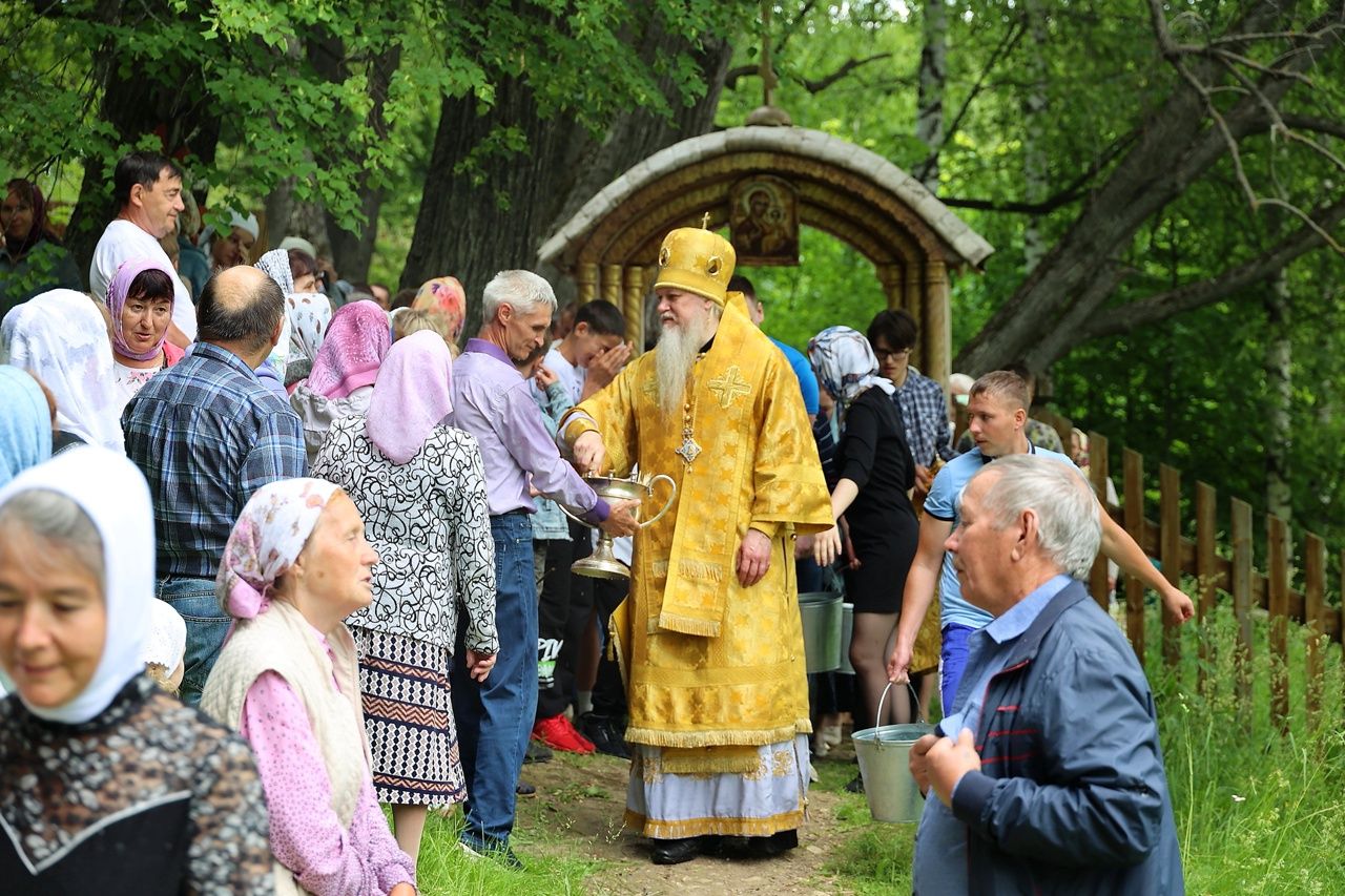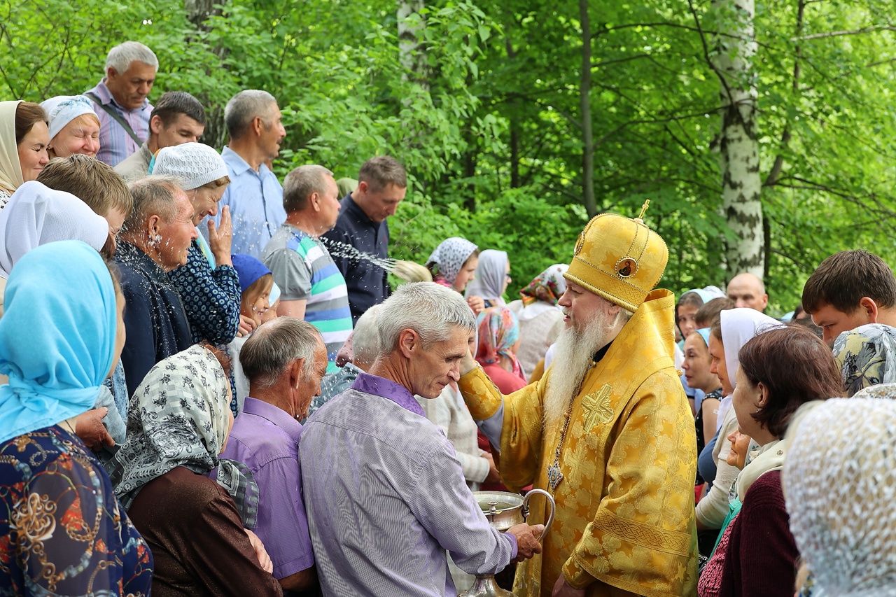 По окончании Литургии был совершен крестный ход с чудотворной иконой Божией Матери «Смоленская» («Седмиезерная») и иконой святителя Гурия Казанского до источника, освященного в честь Смоленской иконы Божией Матери, где был отслужен водосвятный молебен.