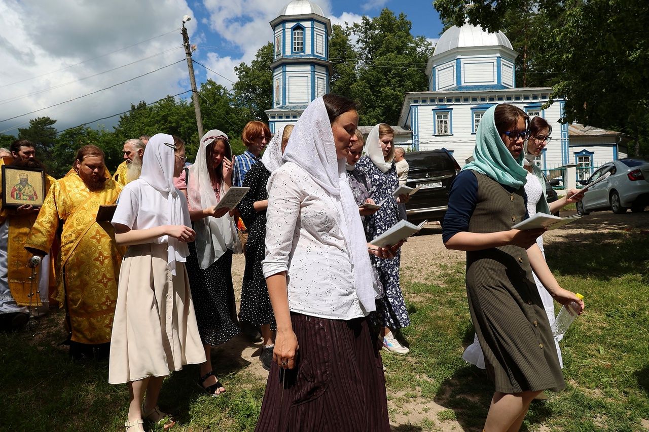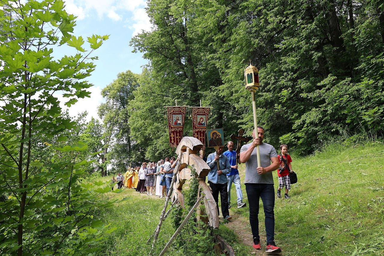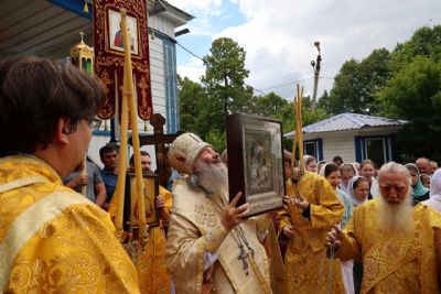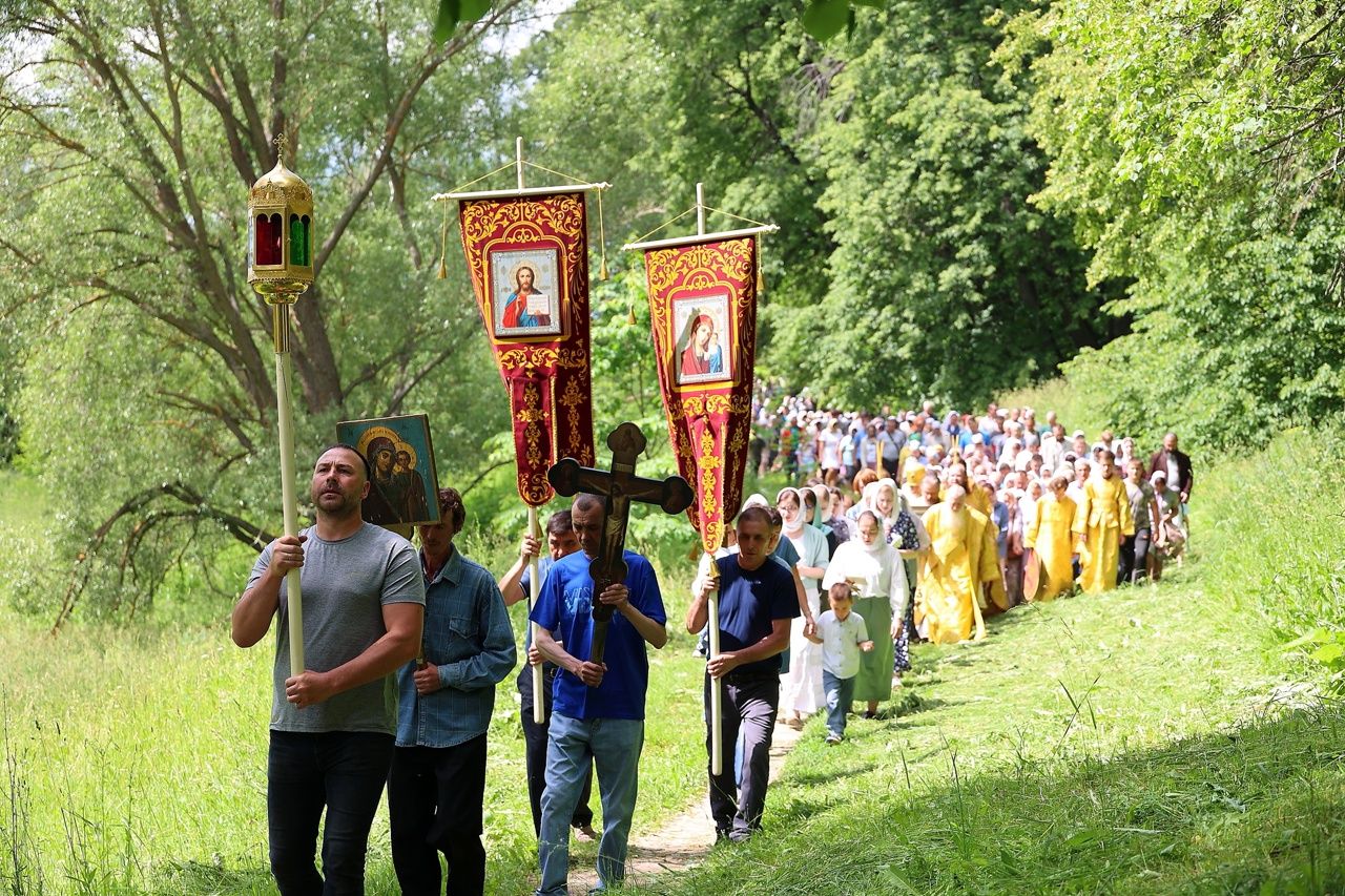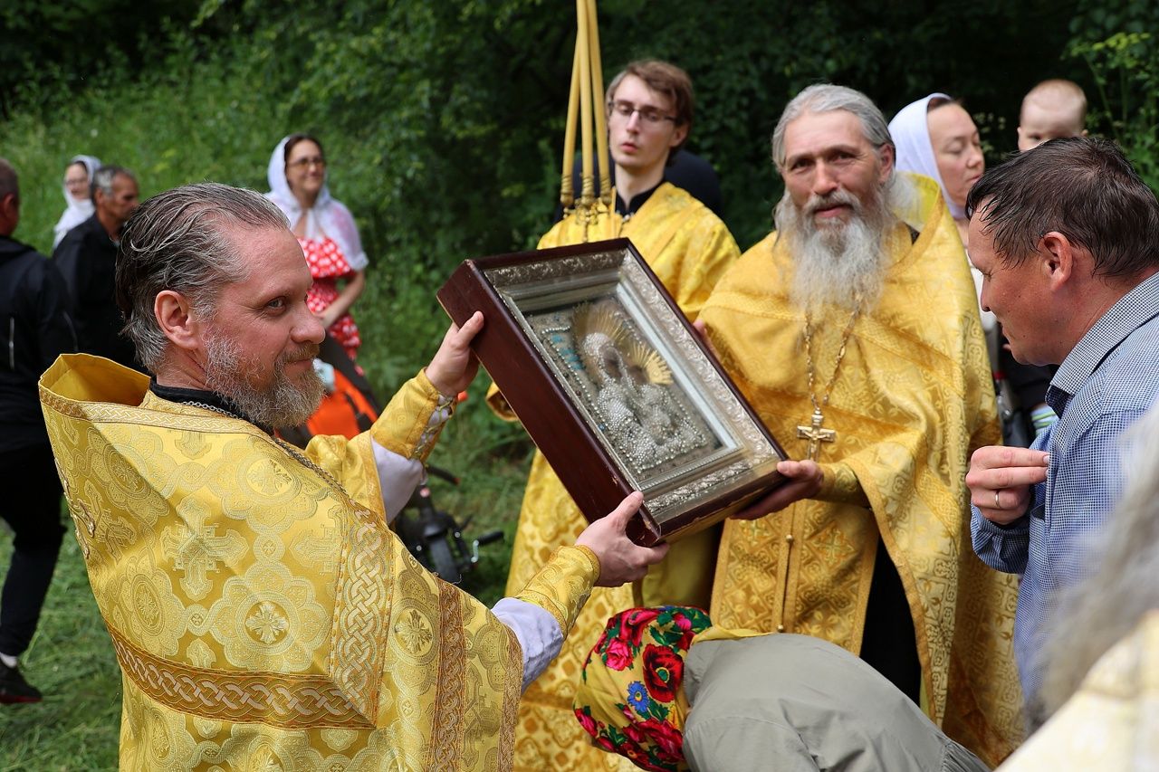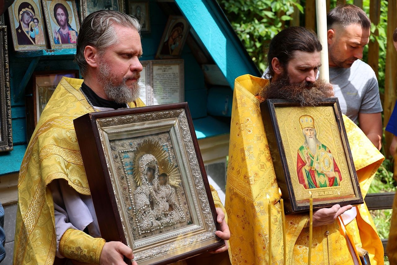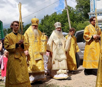 По окончании Литургии был совершен крестный ход с чудотворной иконой Божией Матери «Смоленская» («Седмиезерная») и иконой святителя Гурия Казанского до источника, освященного в честь Смоленской иконы Божией Матери, где был отслужен водосвятный молебен.