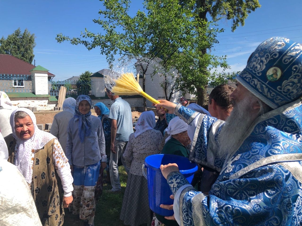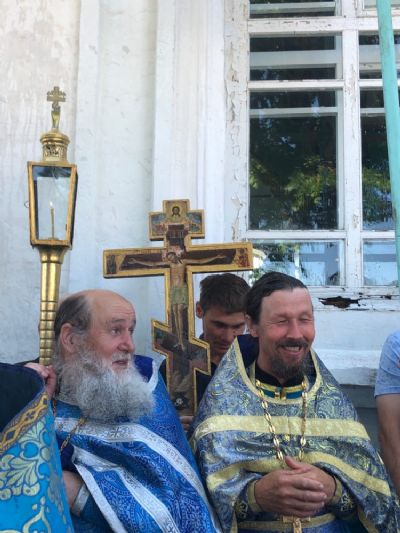 После Литургии верующие обошли вокруг храма крестным ходом со чтением Евангелия и кроплением святой водой.