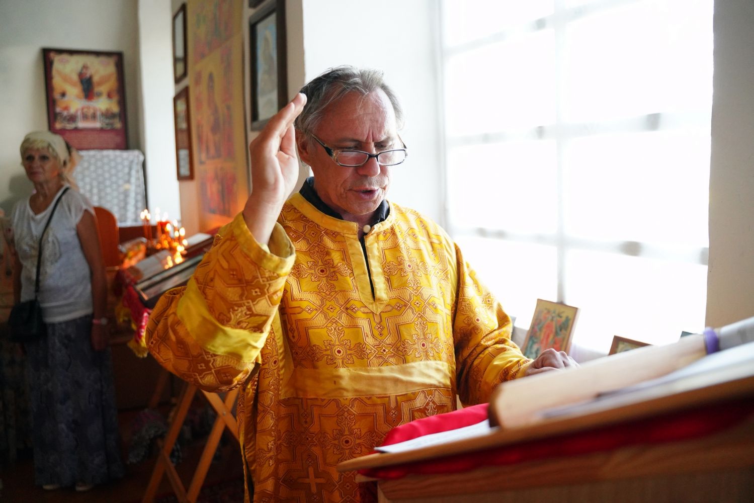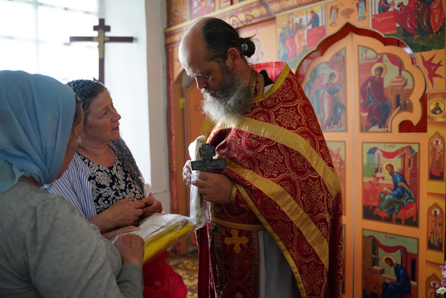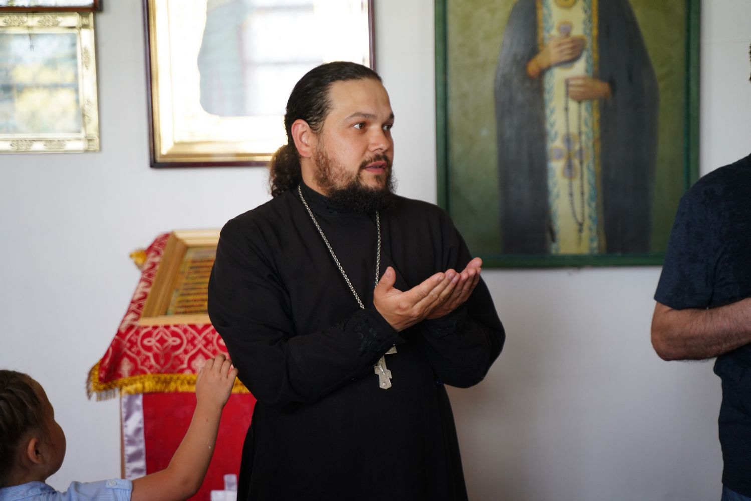 Отец Владимир произнес проповедь о величайшем из земнородных Пророке Иоанне Крестителе, которая также переводилась на жестовый язык. А члены общины глухих поздравили батюшку с престольным праздником, вручив изготовленные своими руками подарки для богослужебных нужд.
