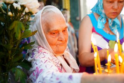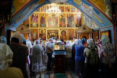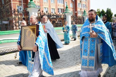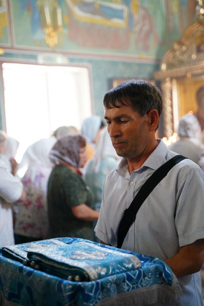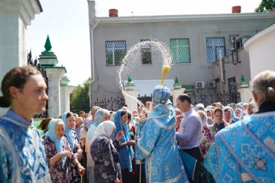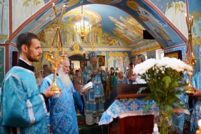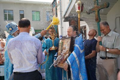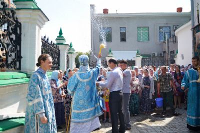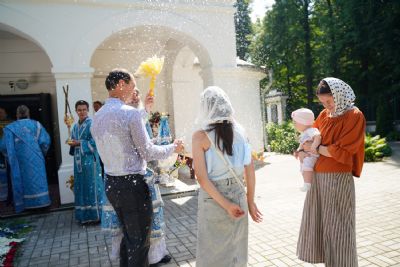После Божественной литургии в ознаменование престольного праздника вокруг храма был совершен крестный ход со чтением Евангелия и кроплением святой водой.