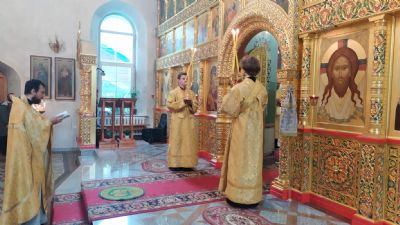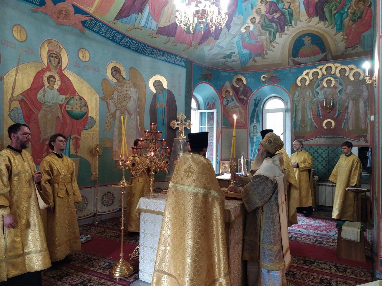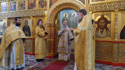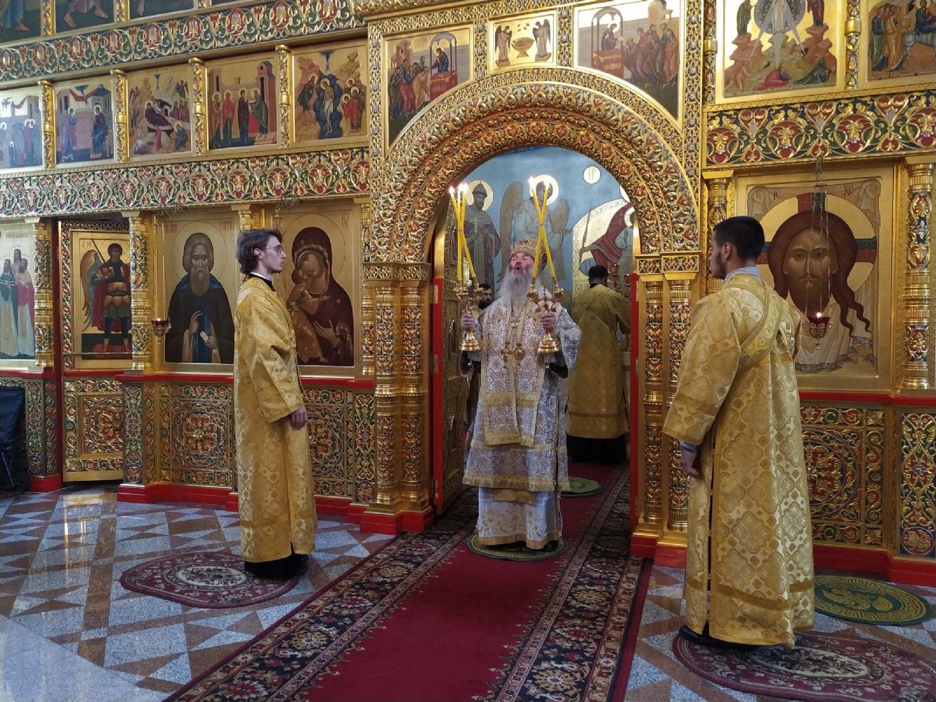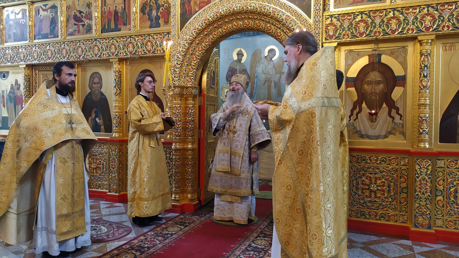 Владыке сослужили настоятель храма протоиерей Александр Бачурин, клирики храма иерей Николай Бабич и диакон Алексий Ершов, протодиакон Михаил Козловский.
