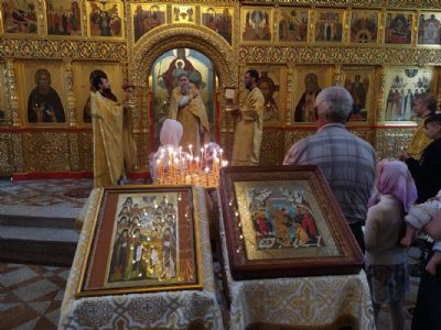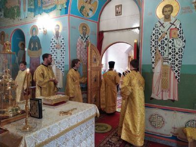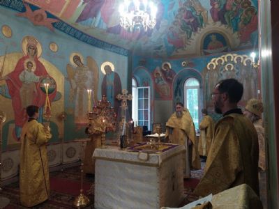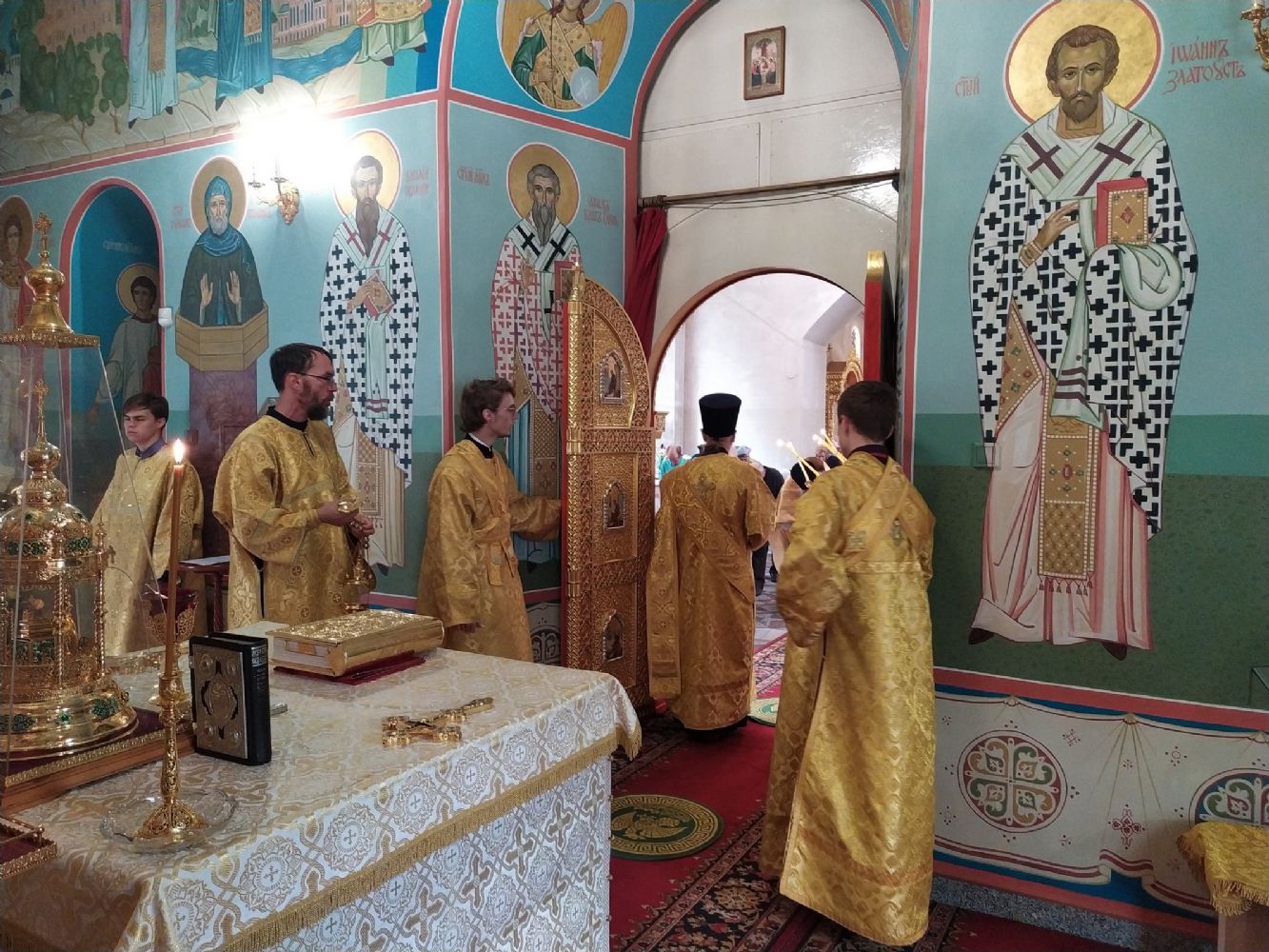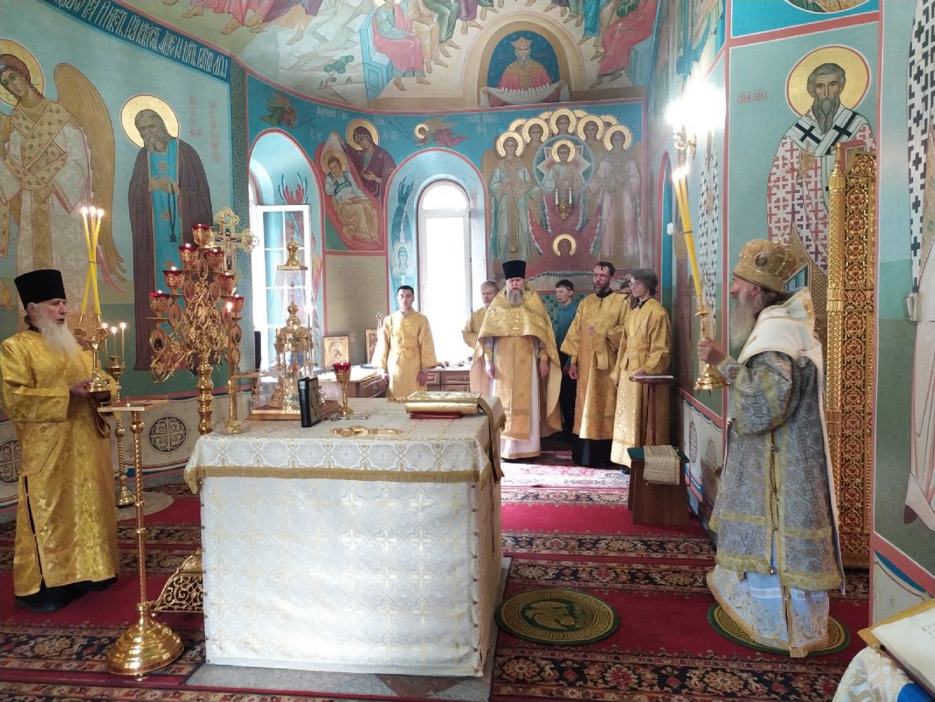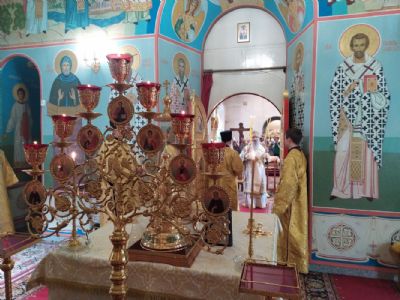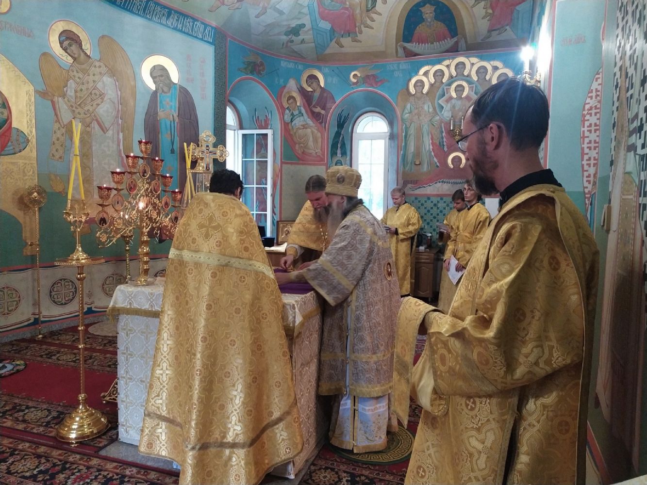 Владыке сослужили настоятель храма протоиерей Александр Бачурин, клирики храма иерей Николай Бабич и диакон Алексий Ершов, протодиакон Михаил Козловский.