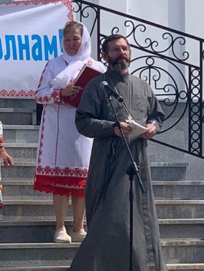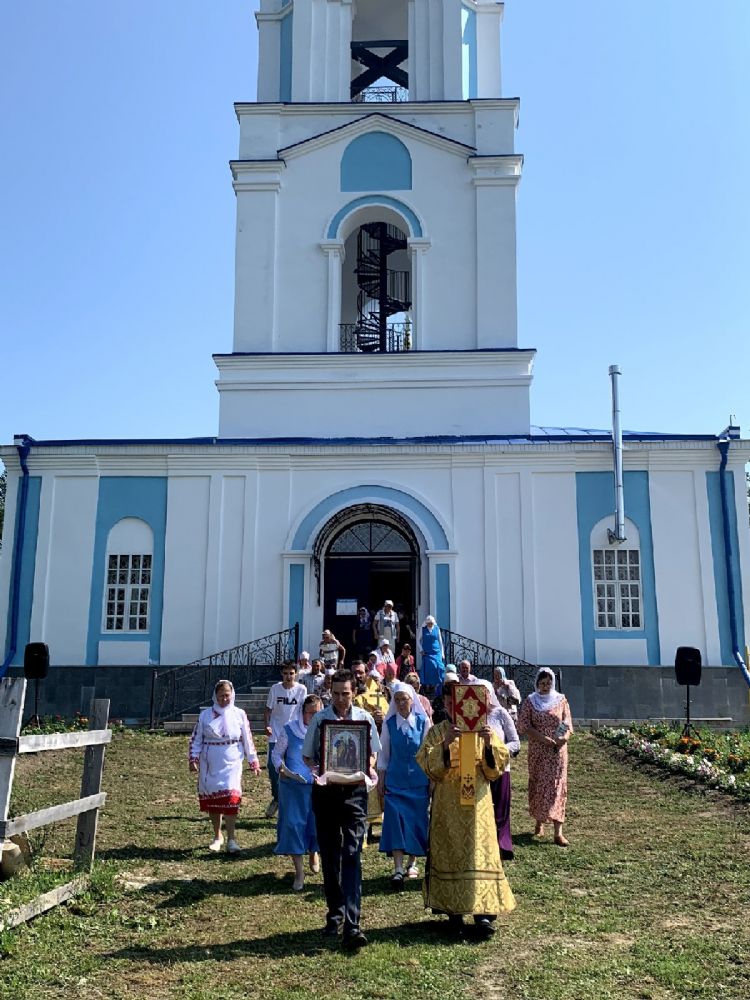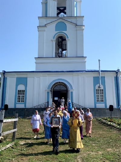 Служба продолжилась крестным ходом вокруг храма и совместной трапезой. Настоятель храма иерей Алексий Тарасов всех поздравил с праздником и поблагодарил тех, кто участвовал в возрождении храма. Затем праздник продолжился фестивалем национальной духовной поэзии «Юмо аралыже шочмо элнам!» («Храни, Господь, мой край родной!»).