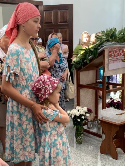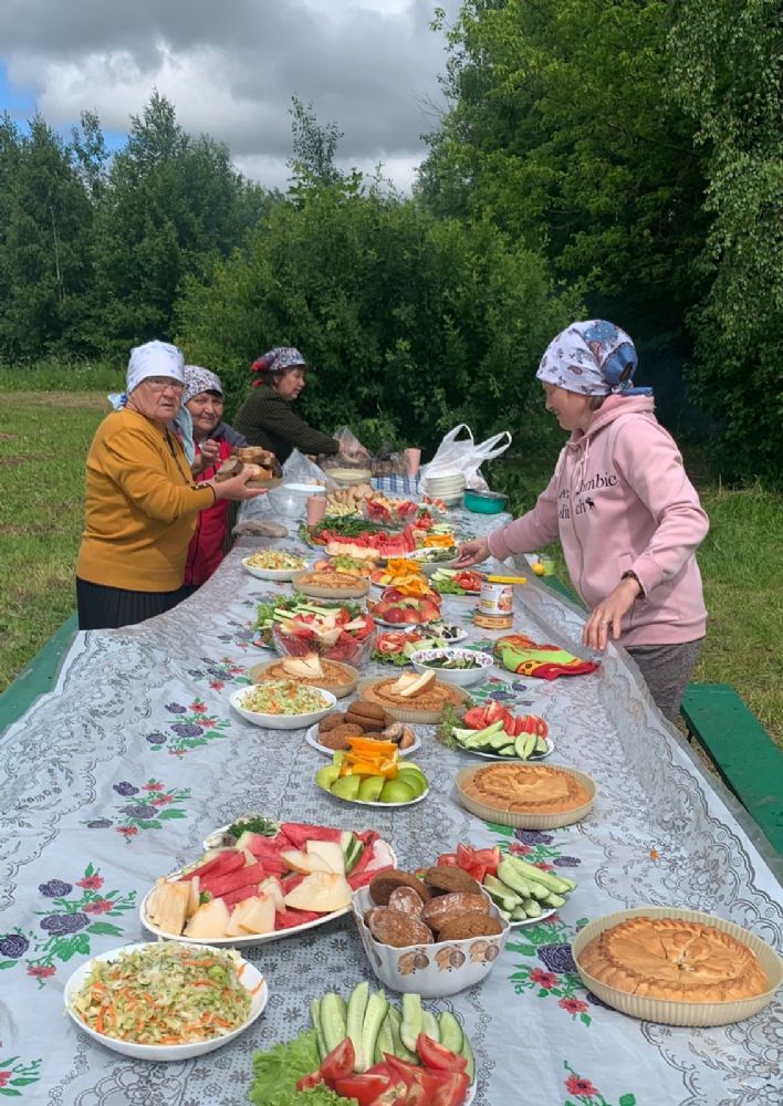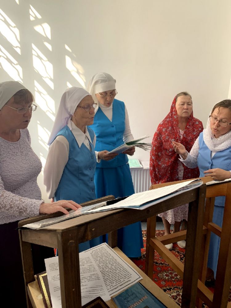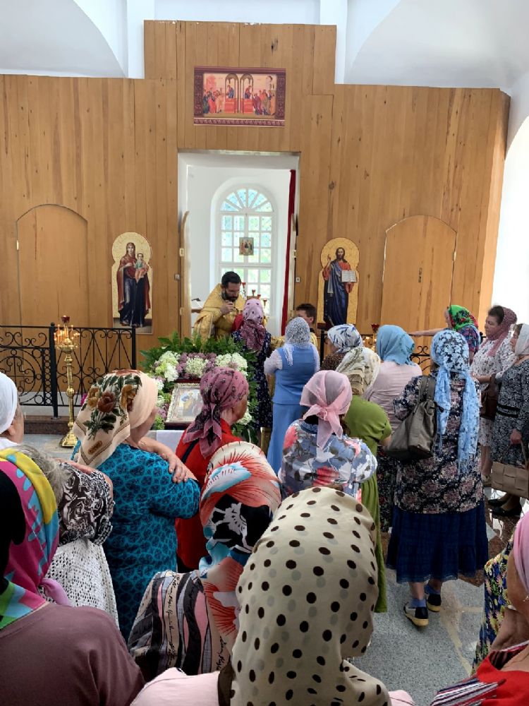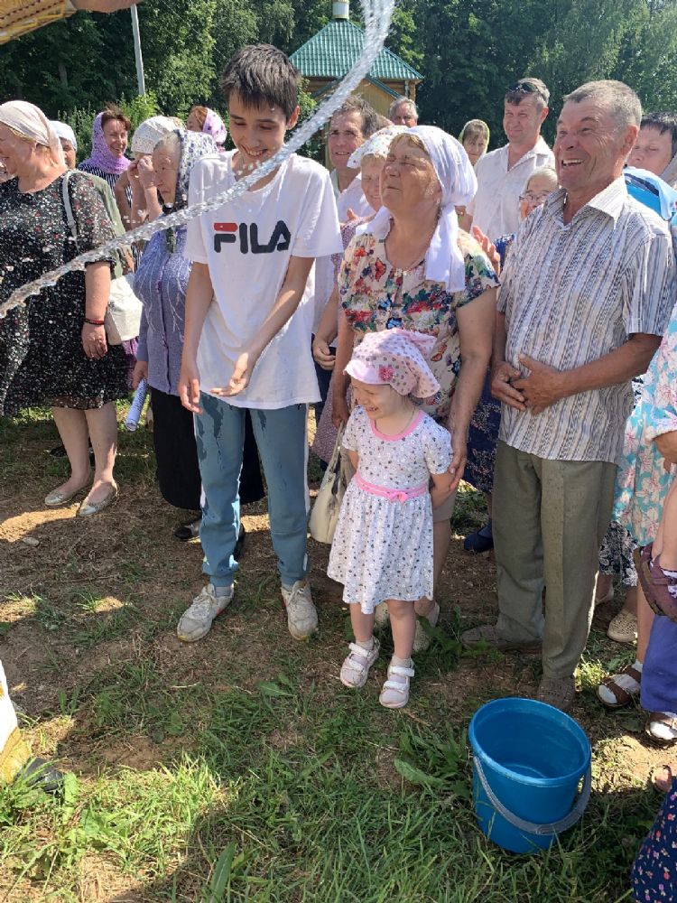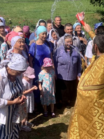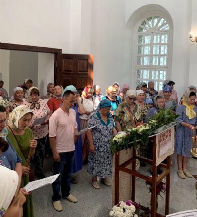 В этот день на Литургию пришли соборно помолиться более сотни селян и жителей ближайших деревень. Служба была особенна еще тем, что песнопения исполнялись на марийском языке – пел хор Йошкар-Олинского сестричества в честь преподобномученицы великой княгини Елисаветы Феодоровны под руководством регента Татьяны Михайловой. Со слезами на глазах прихожане молились на родном марийском языке. И соборно всем храмом пели «Символ веры», «Отче наш», «Царице моя Преблагая».