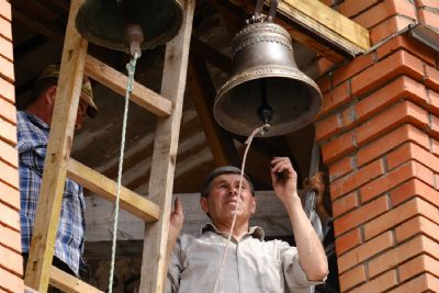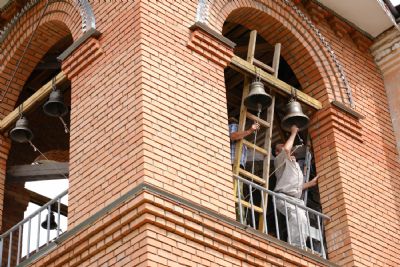 Пять колоколов были с молитвами окроплены святой водой и подняты на колокольню, которая была построена совсем недавно. Храм в Еласах был закрыт в 1939 году, а восстановление его идет с 2007 года.