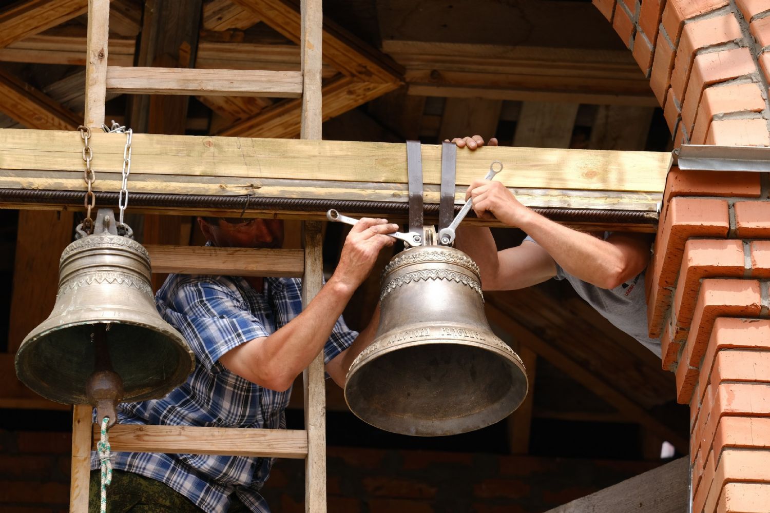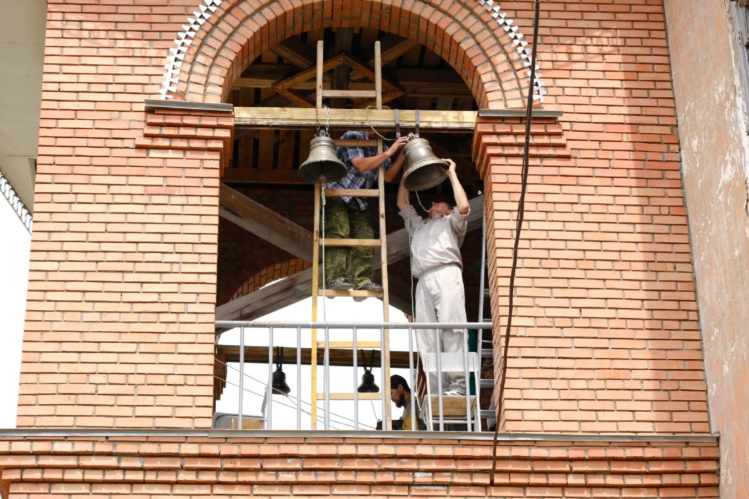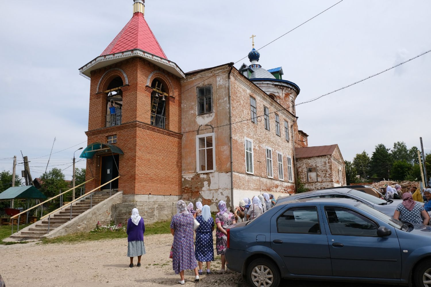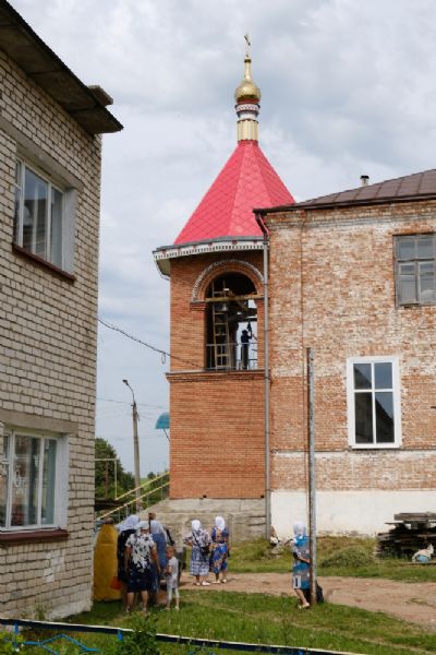После закрепления колоколов на звоннице настоятель храма отец Александр совершил первый благовест. Прихожане не скрывали слез радости – впервые после почти векового перерыва над селом поплыл колокольный звон! Далее подняться на колокольню и позвонить смогли все желающие.