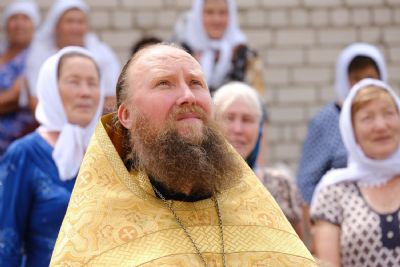 После праздничной Божественной литургии, совершили которую настоятель храма иерей Александр Сиситкин и приехавший на праздник настоятель храма села Владимирское иерей Алексий Васюткин, состоялся чин освящения колоколов.