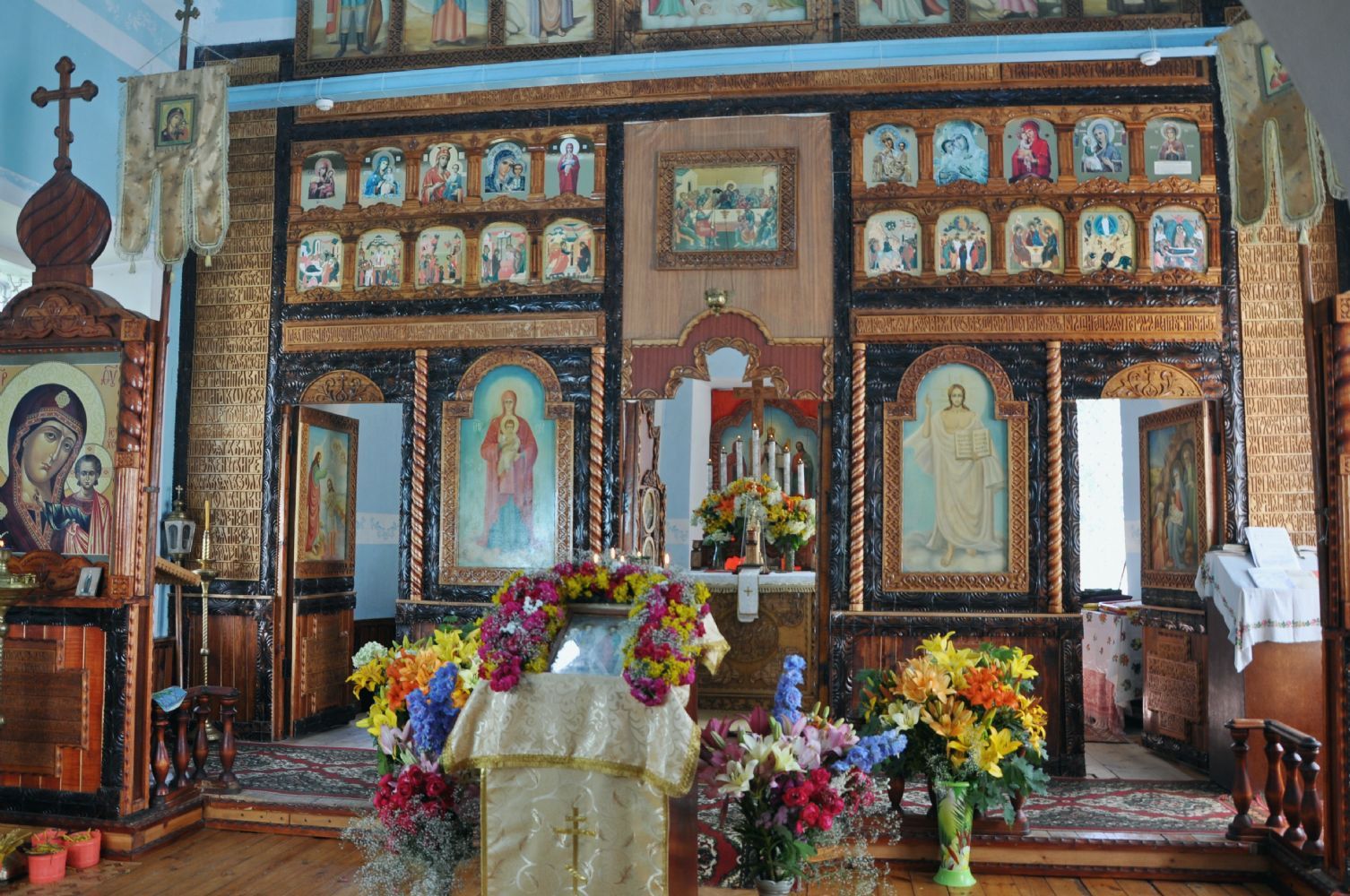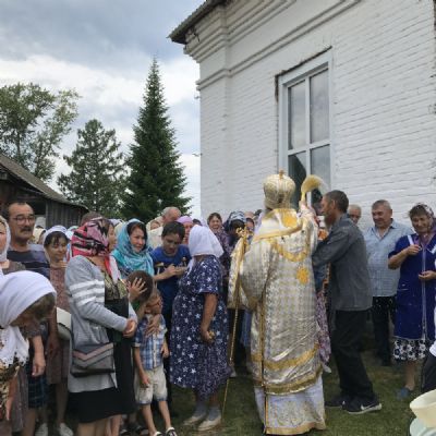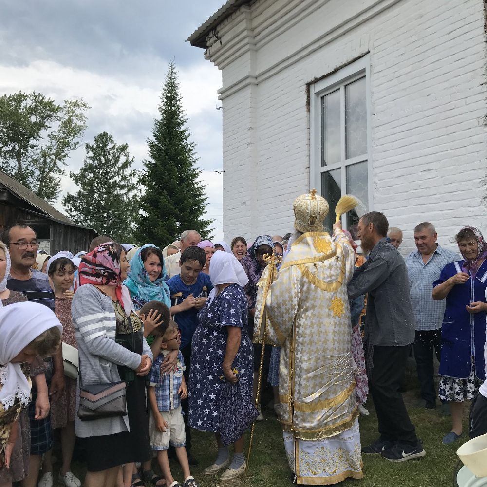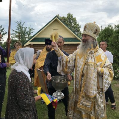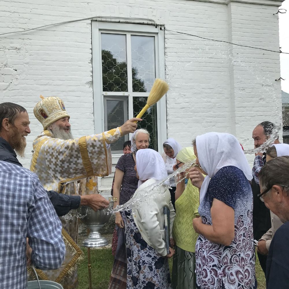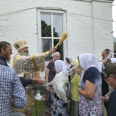 По традиции престольных праздников после Литургии прошел крестный ход вокруг храма, владыка щедро окропил всех святой водой.