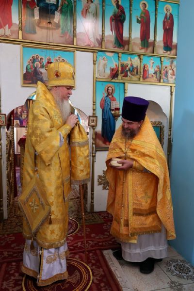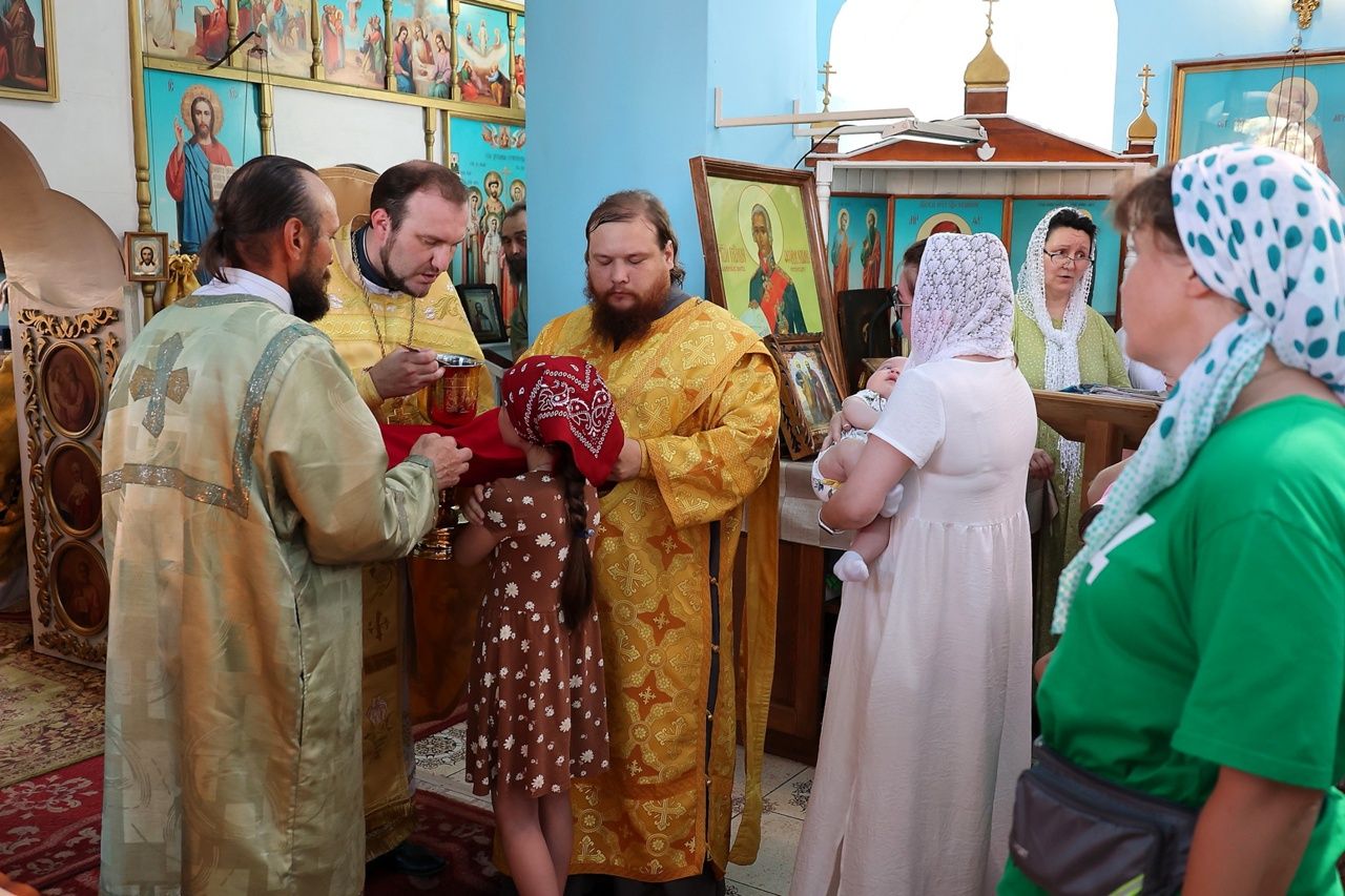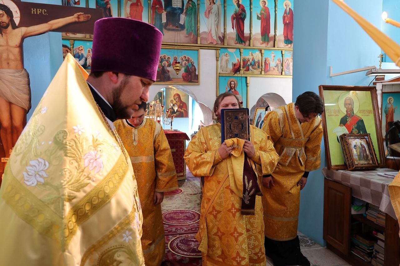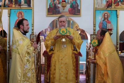 Праздничную совершил Божественную литургию возглавил епископ Волжский и Сернурский Феофан. Владыке сослужили настоятель храма протоиерей Николай Полежайкин, настоятель Покровского храма с. Илеть Параньгинского района иерей Виталий Ульянов и клирик Никольского кафедрального собора г. Волжска диакон Иоанн Захаров.