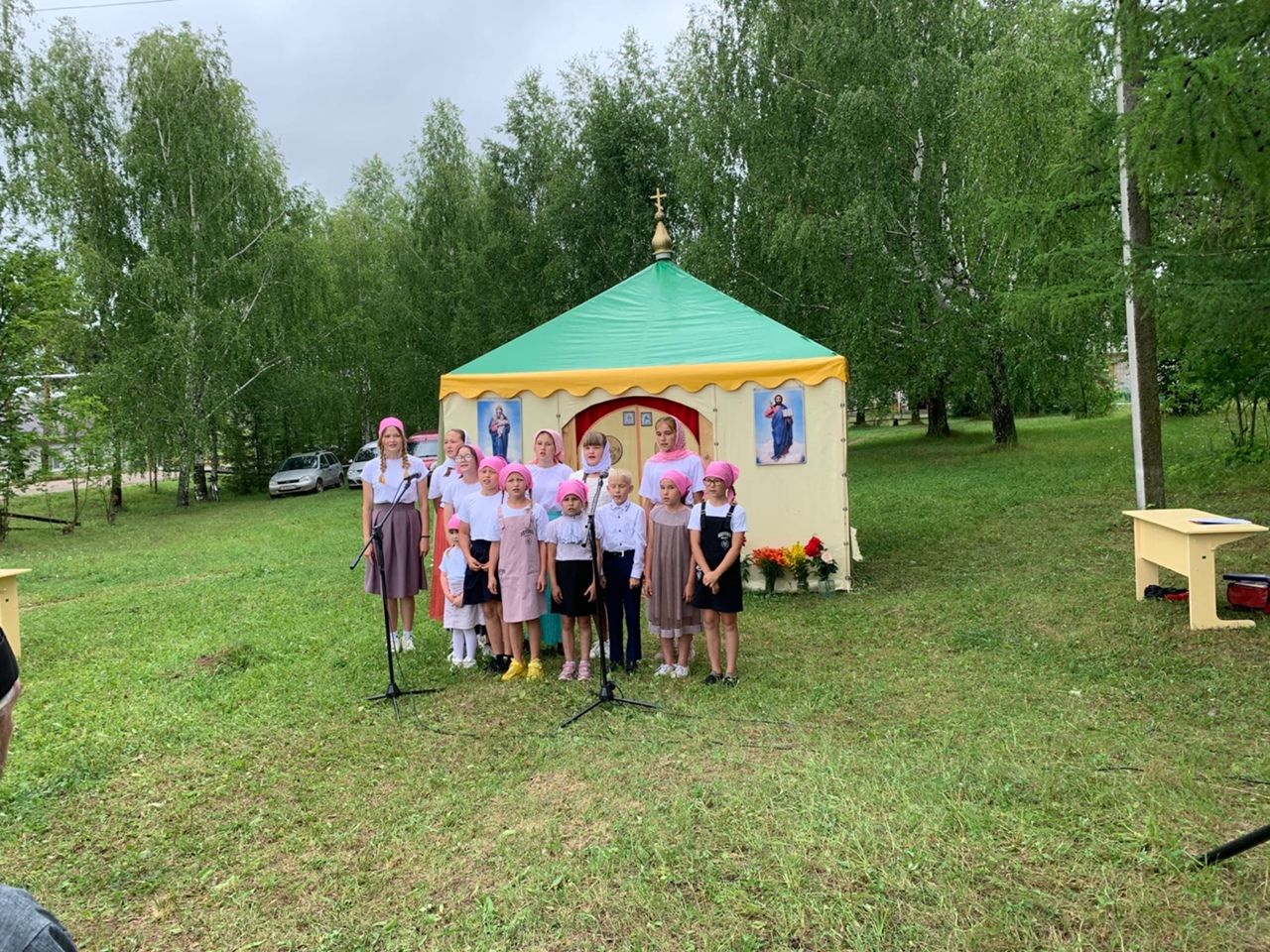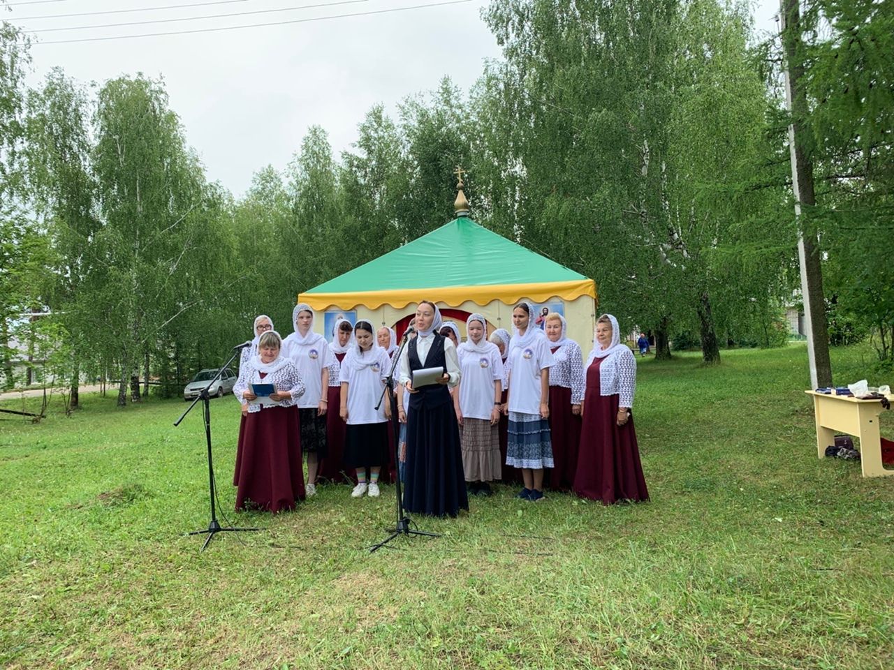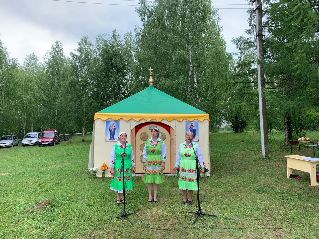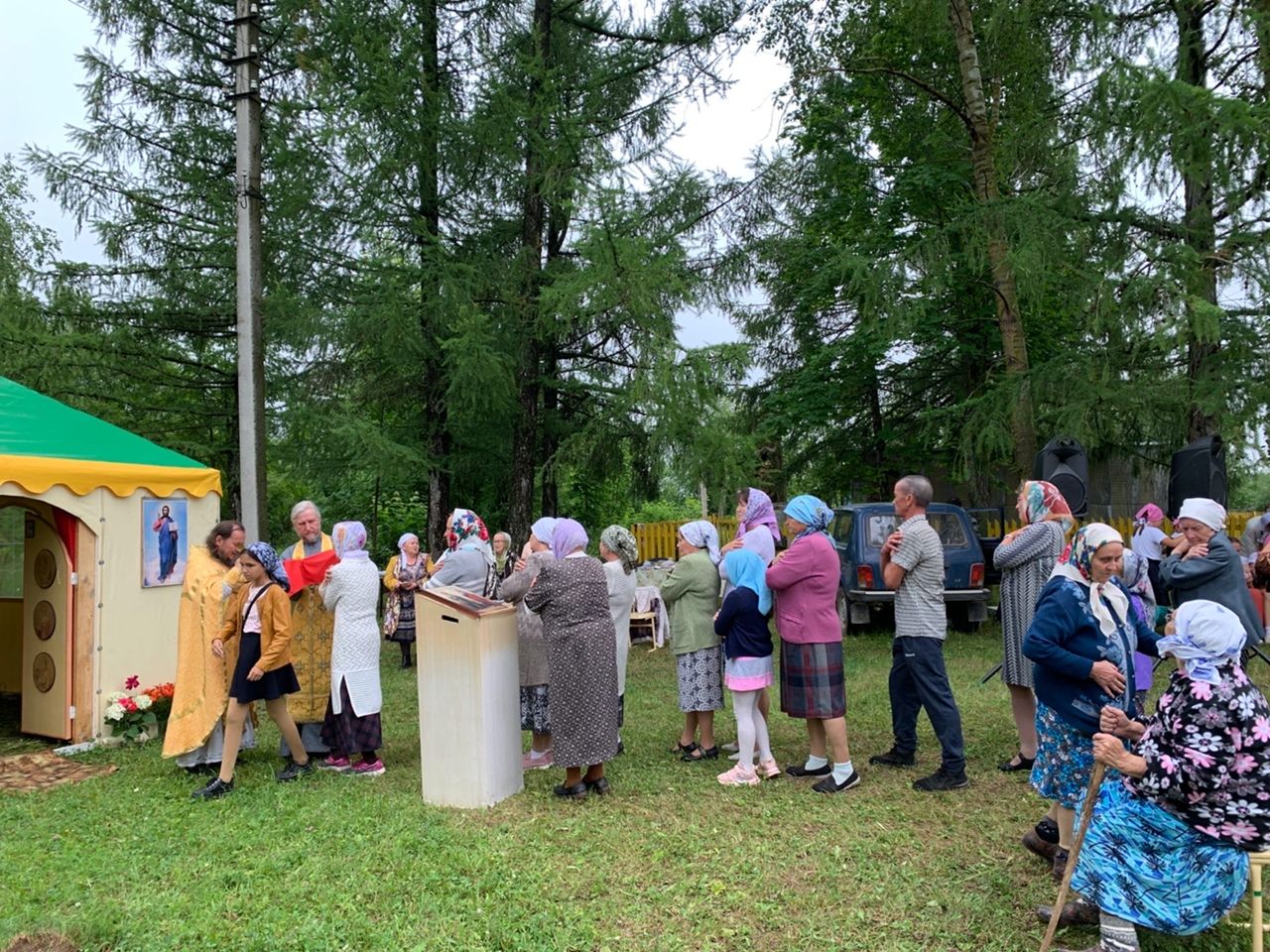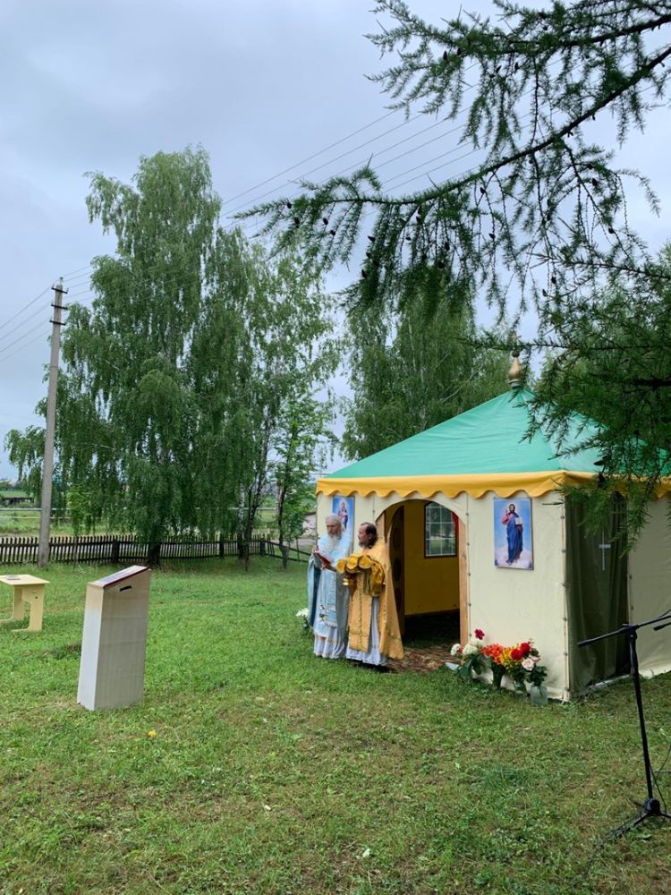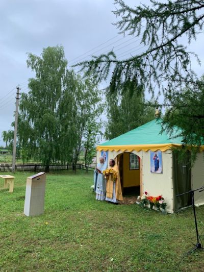Богослужение в палаточном храме совершили настоятель Богоявленского храма п. Морки протоиерей Леонтий Очетов, настоятель храма Рождества Христова с. Арино протоиерей Николай Чузаев и настоятель храма Казанской иконы Божией Матери с. Шиньша иерей Евгений Шамаев. Множество людей пришли разделить радость встречи с Самим Спасителем, соприкоснувшись с Ним в таинствах Исповеди и Святого Причастия.