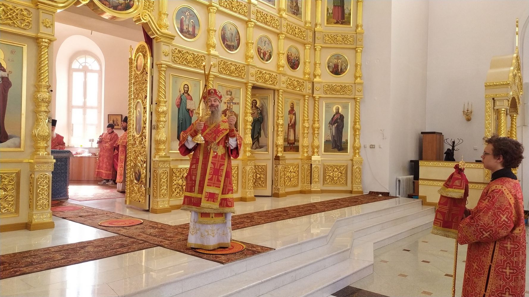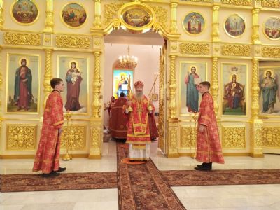 Владыке сослужили секретарь Йошкар-Олинского епархиального управления иеромонах Серафим (Пасанаев), настоятель храма протоиерей Алексий Михайлов, клирик храма иерей Сергий Пуртов и протодиакон Михаил Козловский. Песнопения исполнял хор храма под руководством регента Ольги Михайловой.