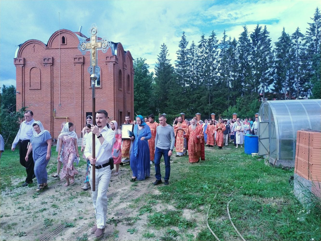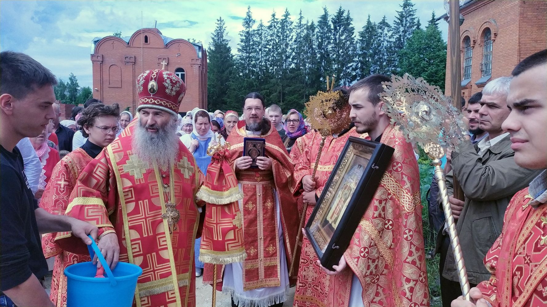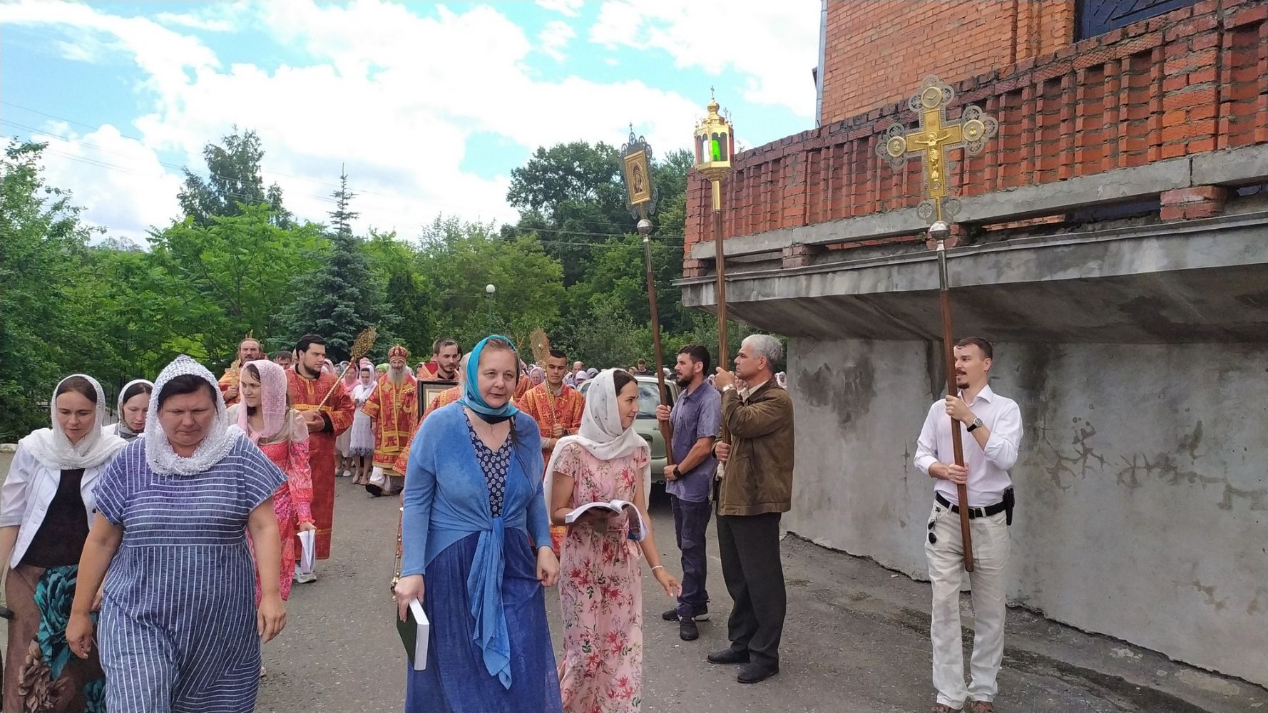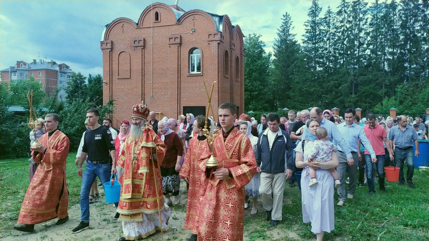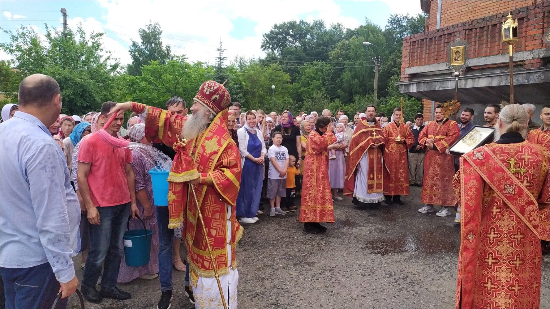После богослужения прошел крестный ход вокруг храма со чтением Евангелия и кроплением святой водой. Затем митрополит Иоанн обратился к собравшимся с архипастырским словом, отметив, что исторические духовные уроки Святой Руси наглядно свидетельствуют, как мы должны дорожить верой Православной и державой Российской. Владыка пожелал всем, чтобы всемилостивый и всещедрый Господь по молитвам святых Царственных страстотерпцев сохранил нашу страну от нестроений и расколов, а мы – чада Святой Руси – стремились жить в вере и любви между собой.