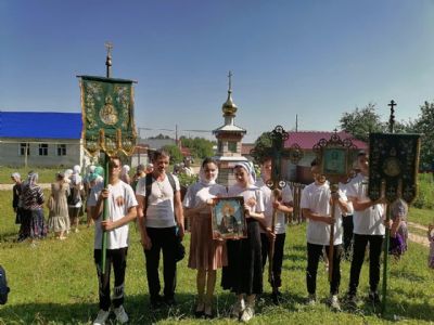 В праздничный день по благословению настоятеля храма святого великомученика Димитрия Солунского п. Новые Параты Волжского района протоиерея Евгения Бакутова состоялся традиционный школьный крестный ход на источник преподобного Сергия Радонежского, находящийся в д. Вахоткино.