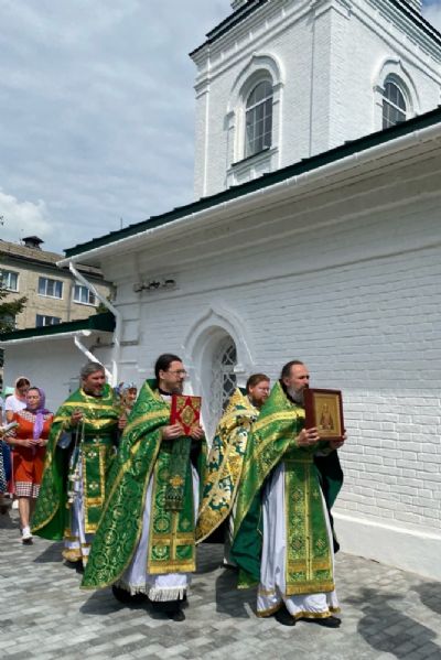 После Литургии вокруг храма прошел праздничный крестный ход со чтением Евангелия и кроплением святой водой. Всем присутствующим были вручены небольшие памятные подарки.