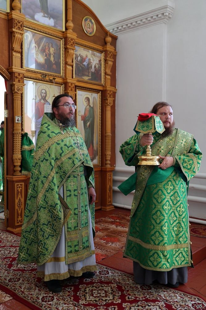 Владыке сослужили настоятель храма протоиерей Александр Милютин, духовенство Восточного и Северного церковных округов, а также клирик Благовещенского кафедрального собора г. Йошкар-Олы иерей Иоанн Милютин и клирик Никольского кафедрального собора г. Волжска диакон Иоанн Захаров.