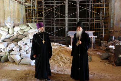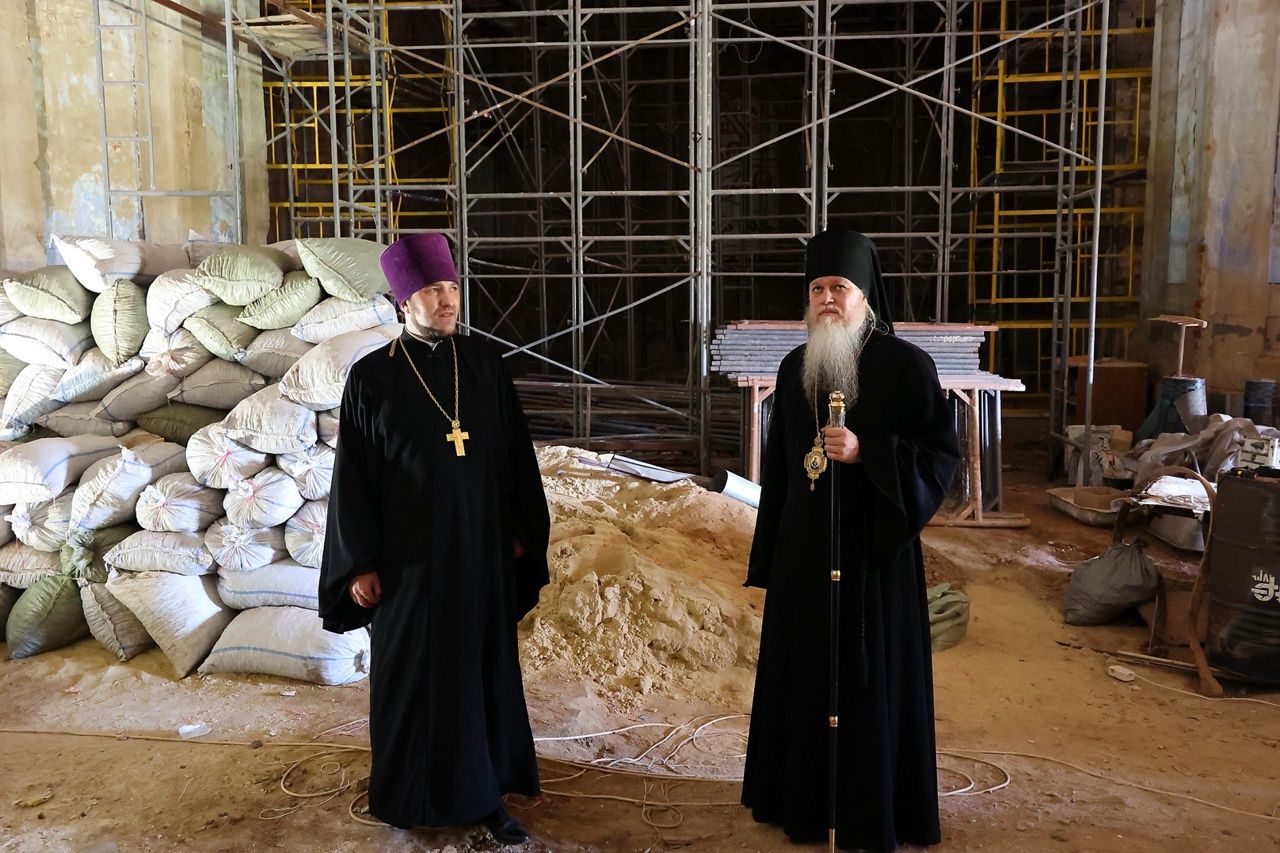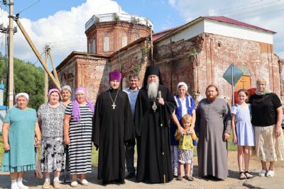 Возвращаясь в Волжск, епископ Феофан заехал в село Илеть Параньгинского района – настоятель Троицкого храма с. Илеть иерей Виталий Ульянов ознакомил владыку с ходом восстановительных работ.