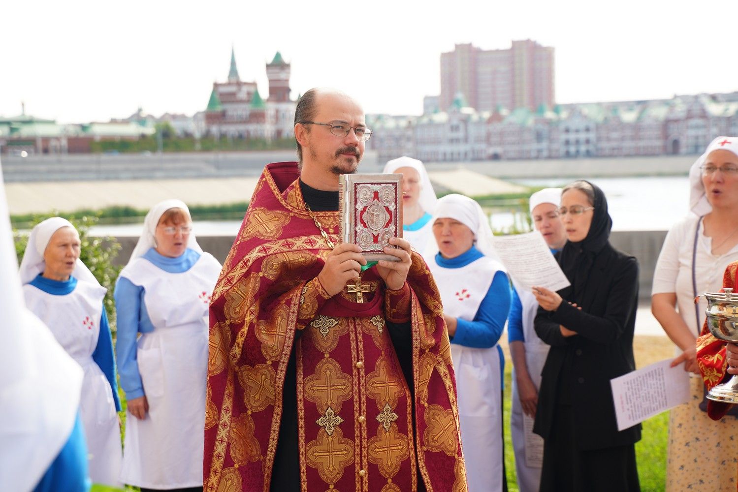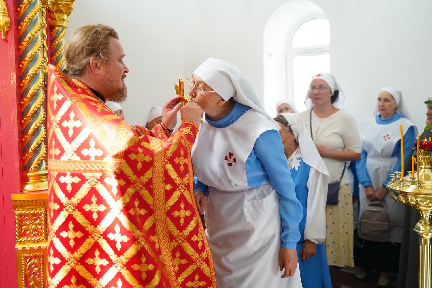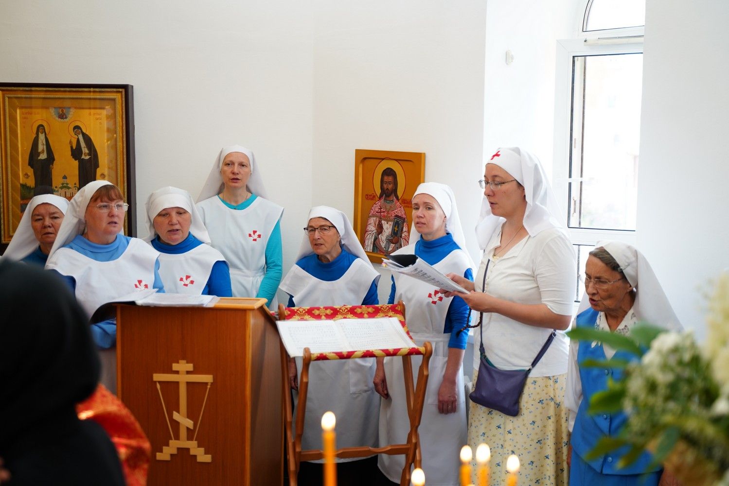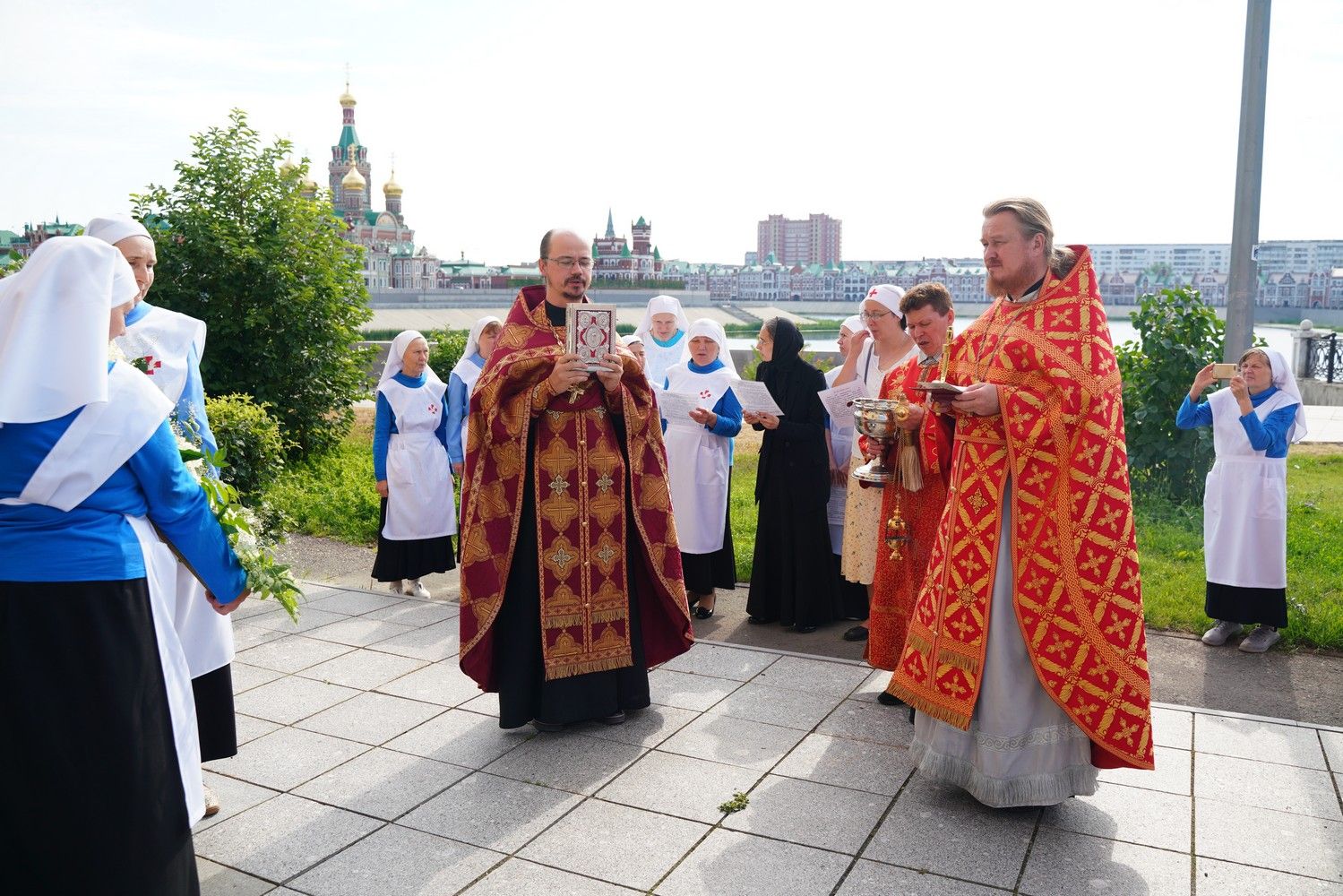 В праздничный день сестры дружно собрались на богослужение – накануне вечером было совершено всенощное бдение, а утром – Божественная литургия, возглавил которую настоятель храма, руководитель Православного центра протоиерей Сергий Поглазов. Ему сослужили руководитель отдела по социальному служению и церковной благотворительности Йошкар-Олинской епархии иерей Алексий Михеев и духовник сестричества иерей Константин Домрачев. Песнопения исполнял хор сестер милосердия под управлением регента Елены Яровиковой. Практически все сестры исповедовались и причастились Святых Христовых Таин.