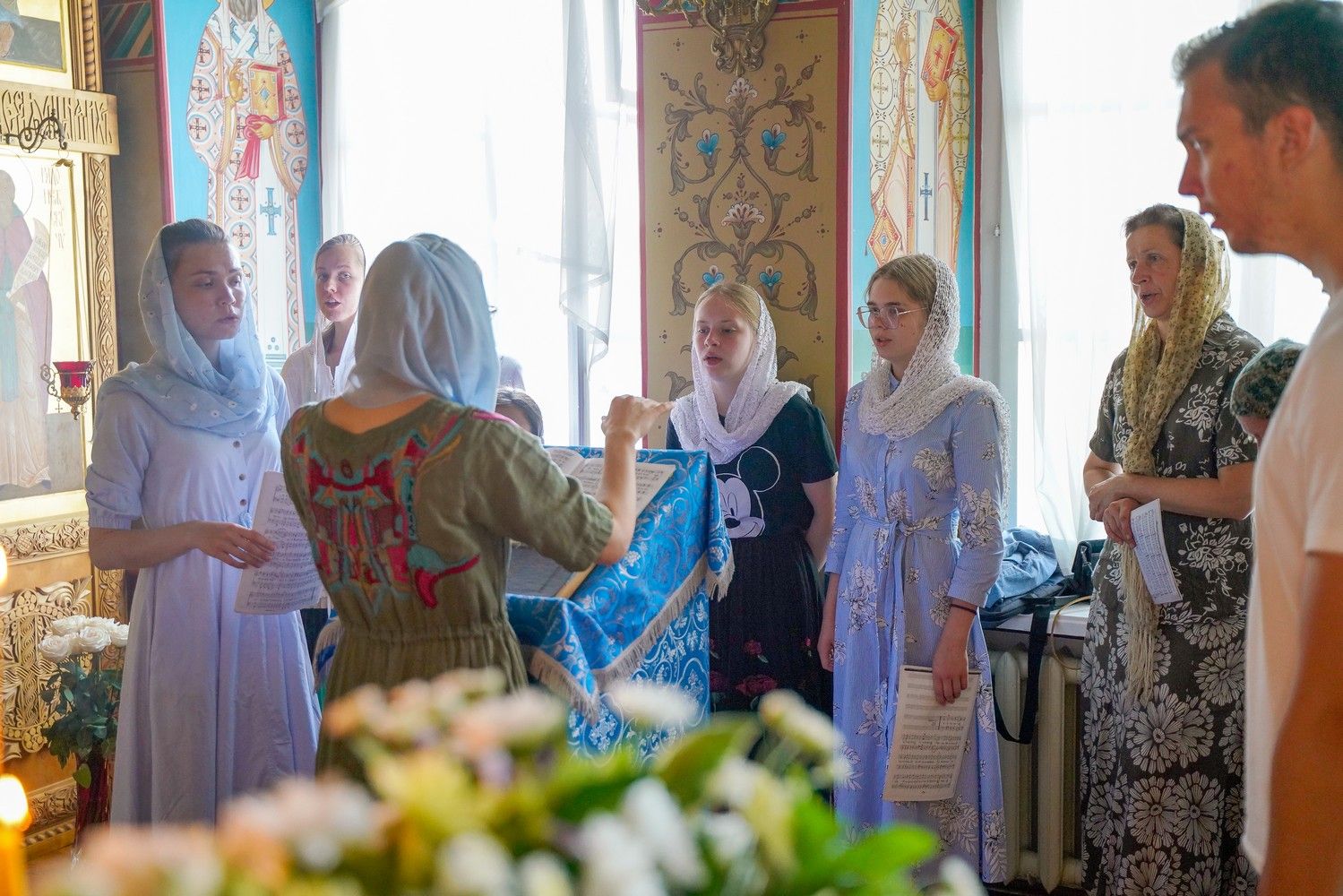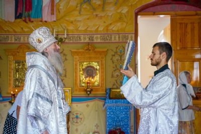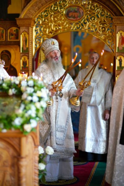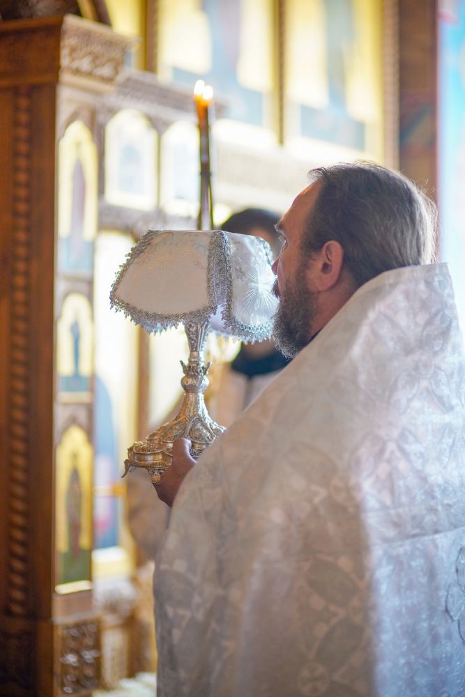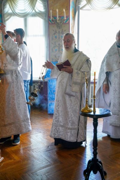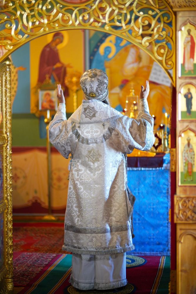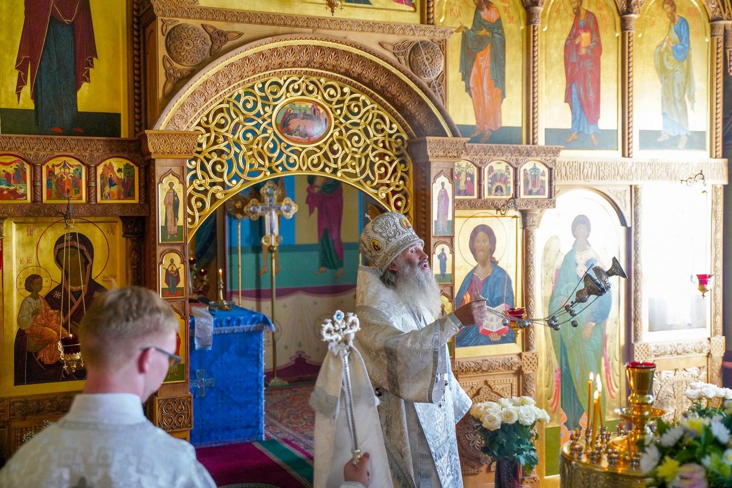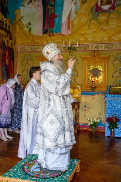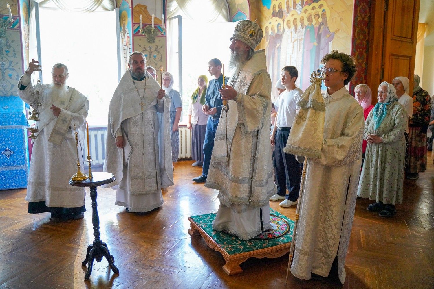 Владыке сослужили секретарь Йошкар-Олинского епархиального управления иеромонах Серафим (Пасанаев) и протодиакон Михаил Козловский. Песнопения исполнял детско-юношеский хор «Благовест» под управлением регента Татьяны Черновой.